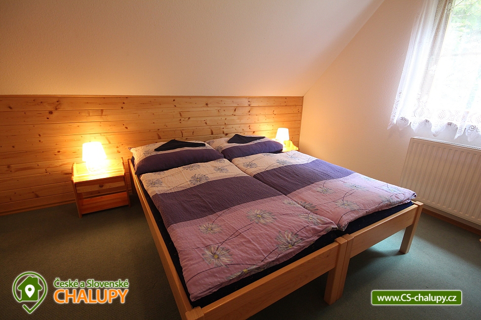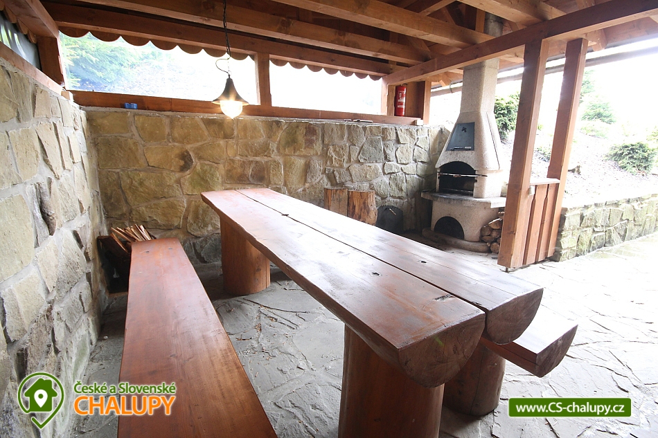 Chalupa vířivka a bazén u Razuly - Beskydy - Velké Karlovice. Ubytování v Beskydech - chalupa Valašsko. Horské ubytování Velké Karlovice. V přízemí vybavené srubové chalupy se nachází prostorný obývací pokoj s plně vybaveným kuchyňským koutem (sklokeramická varná deska, horkovzdušná trouba, mikrovlnná trouba, myčka, lednička, varná konvice), jídelní stůl, krbová kamna, sedací souprava, TV+SAT, WiFi a ložnice se 2 lůžky. Další 3 ložnice jsou v podkroví - v každé 3 lůžka. Sociální zařízení zahrnuje 2x koupelnu se sprchovým koutem a 2x WC. Vytápění je zajištěno elektrickým kotlem . U chalupy je zastřešená veranda, terasa s vířivkou, venkovní krb a posezení. Dále je zde nepřeberné množství vyžití pro děti i dospělé: elektronické šipky, stolní tenis, badminton, trampolína, houpačka a pískoviště. Ubytovací kapacitu lze navýšit o dalších 11 lůžek v 60 m vzdálené chalupě (M3-035) se kterou je ve společném využití trampolína, bazén, dětské hřiště, pískoviště, houpačka. Parkování možné přímo u objektu, v zimě doporučen příjezd se sněhovými řetězy. Ubytování je vhodné pro rodiny s dětmi. V létě grilování, turistika, cyklostezka vzdálená 100m, tenis, golf, koně, houbaření, dále u nás najdete masáže, vířivou vanu, altán s krbem, dětské hřiště, stolní tenis. V zimě - sjezdové a běžecké tratě, včetně půjčovny lyžařského vybavení 200 metrů od chalup - Skiareál Razula. Bowling, squash, wellness atd. v místě. V blízkosti: cyklostezka (10 m), tenis (500 m), koupaní v řece Bečva (10 m), přehrada Horní Bečva 2 km (půjčovna lodiček), značené turistické stezky (500 m), Valašské muzeum v přírodě (8 km), krytý bazén v Rožnově pod Radhoštěm, lanové centrum, turistický areál Pustevny, socha Radhošť (8 km).