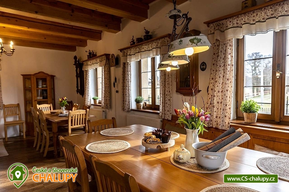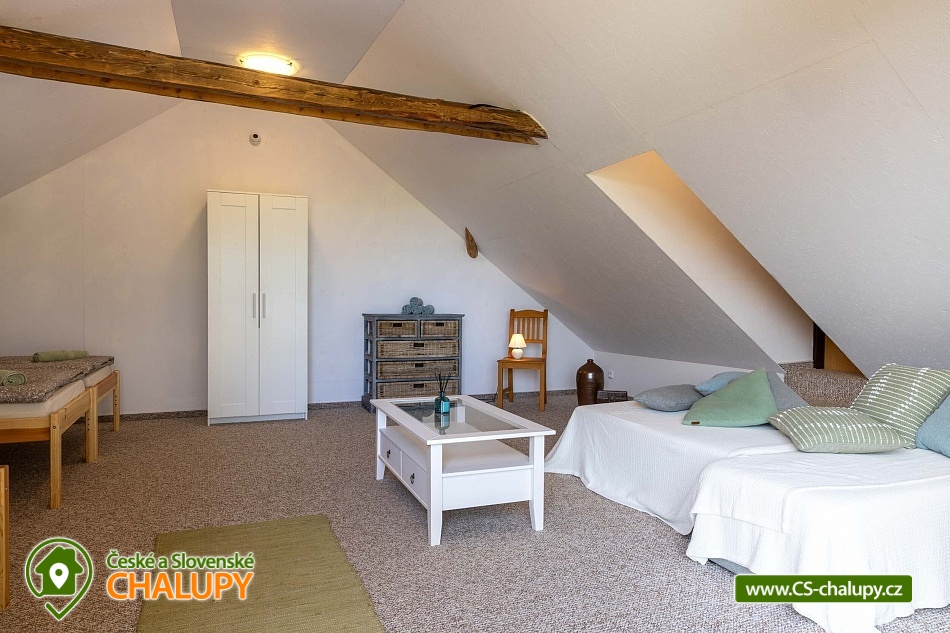 Chalupa Vysočina na samotě u Přírodní rezervace Prameniště Jankovského potoka, poloha u obce Opatov - Vyskytná a Pelhřimova. Celý objekt sestává ze stylově zrekonstruované chalupy a prostorné stodoly, venkovního sezení a vlastního rybníčku na rozlehlém prostranství. Chalupa je ideální pro ty, kteří si chtějí užít klidu, relaxu a krásné přírody. Zároveň je to skvělé místo s vlastním wellness (finská sauna + vířivka), kde se můžete bavit do ranních hodin a nemusíte se bát narušení sousedských vztahů, pokud přetáhnete večerku. Chalupa nabízí ubytování pro až 18 osob v 5 ložnicích. Chalupa se skládá ze 2 budov: Obytná budova 290 m2, stylová společenská místnost s kachlovými kamny, smart LED TV, internet a WiFi, jídelní stůl pro 12 osob a krb. Plně vybavená kuchyňská linka (sklokeramická deska, trouba, mikrovlnná trouba, rychlovarná konvice, nádobí a myčka. Spíž s lednicí a mrazákem. Dále pračka, sušička, šatny, finská sauna a vířivka. Stodola 250 m2 (taneční parket, rohový krb, elektrický a plynový gril, možnost chlazení, nádobí, elektronické šipky). POPIS chalupy: V patře 2x dvojlůžkový pokoj (manželské postele), 1x trojlůžkový pokoj (3 samostatná lůžka), 1x čtyřlůžkový pokoj + přistýlka (1 manželská postel, 1 samostatná postel, postel + přistýlka) a 1x čtyřlůžkový pokoj se samostatným vchodem. V přízemí: rozkládací sedačka (2 místa ve společenské místnosti), obývák s kuchyní a velkými kachlovými kamny. Plně vybavená kuchyně: lednice, myčka, mikrovlnka, trouba, varná konvice, kávovar na zrnkovou kávu DeLonghi, kávovar - kapslový a toustovač. Venkovní gril. Sociální zařízení: 3 x koupelna, 3 x záchod. V přízemí: 1 x koupelna s vanou a WC, 1 x koupelna se sprchovým koutem, WC a bidetem. V patře: koupelna se sprchovým koutem, WC a bidetem. Vytápění: kotel na dřevo a kachlová kamna. V okolí: Koupaliště Žabák Humpolec, lanové centrum Pavouk Humpolec, pivovar Bernard Humpolec, Muzeum rekordů a kuriozit Pelhřimov, zřícenina hradu Orlík, vodní nádrž Trnávka, bazén a aquapark Jihlava, ZOO Jihlava, Jihlavské podzemí, premonstrátský klášter Želiv, hrad Lipnice nad Sázavou, lipnické lomy, lyžařský areál Křemešník, lanové centrum a rozhledna Křemešník. Dále přírodní koupaliště Vyskytná, přírodní park a skiareál Čeřínek, hrad Roštejn, Velký pařezitý rybník, Javořice, Míchova skála a Telč (UNESCO). Těšíme se na Vás u nás.