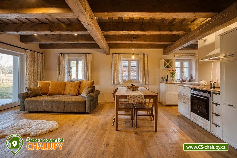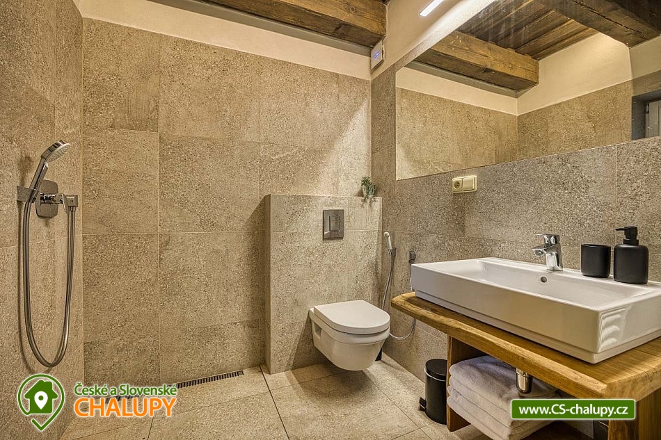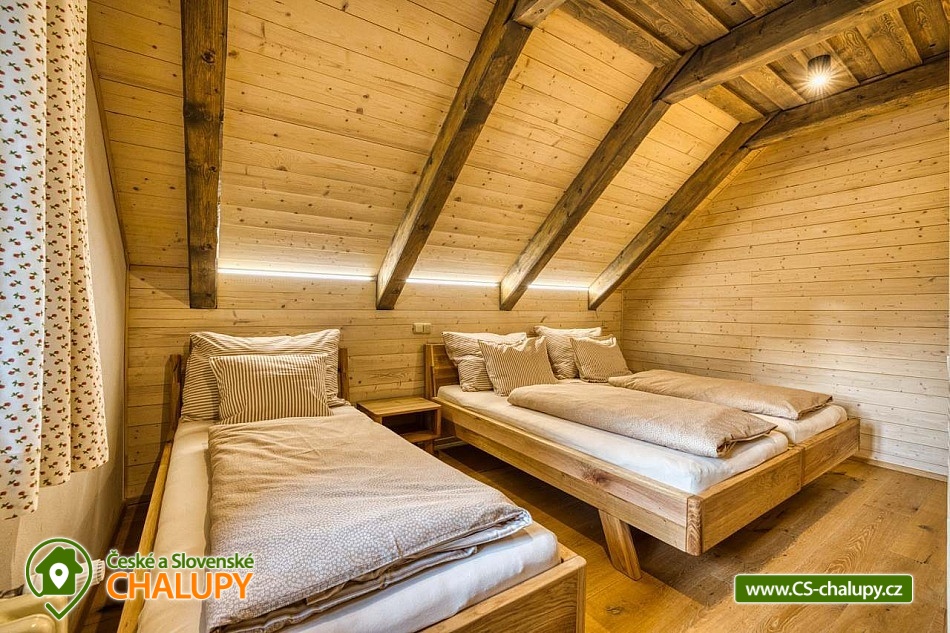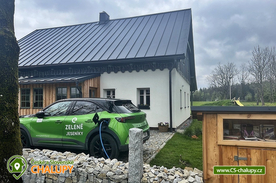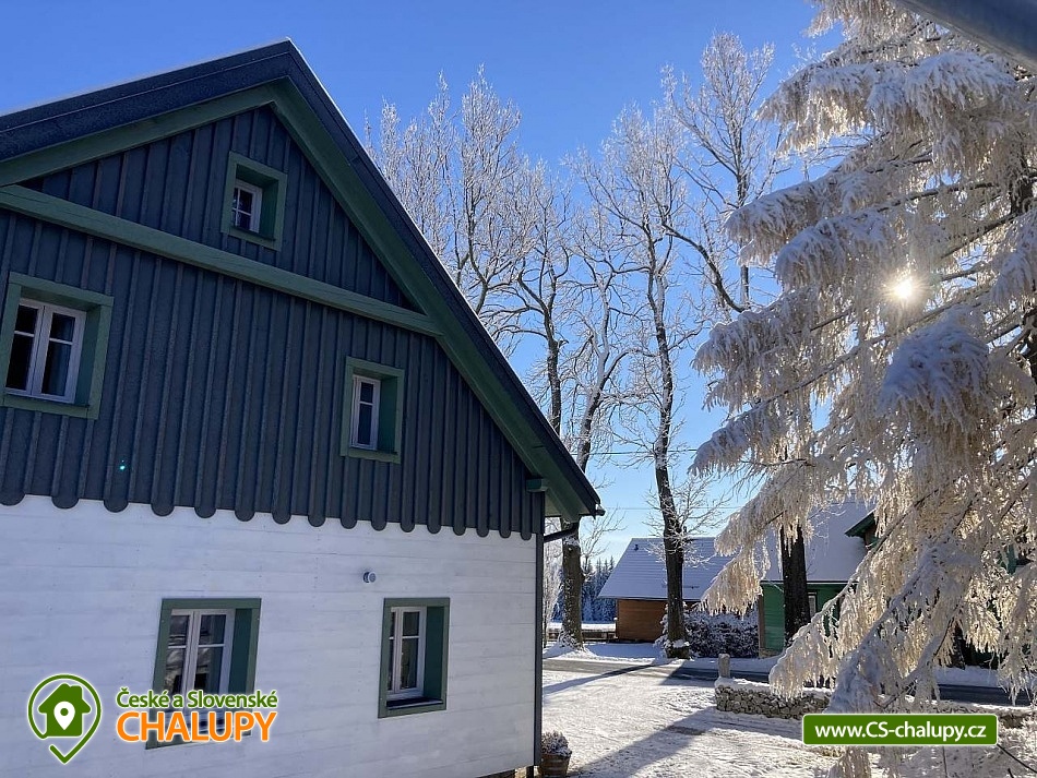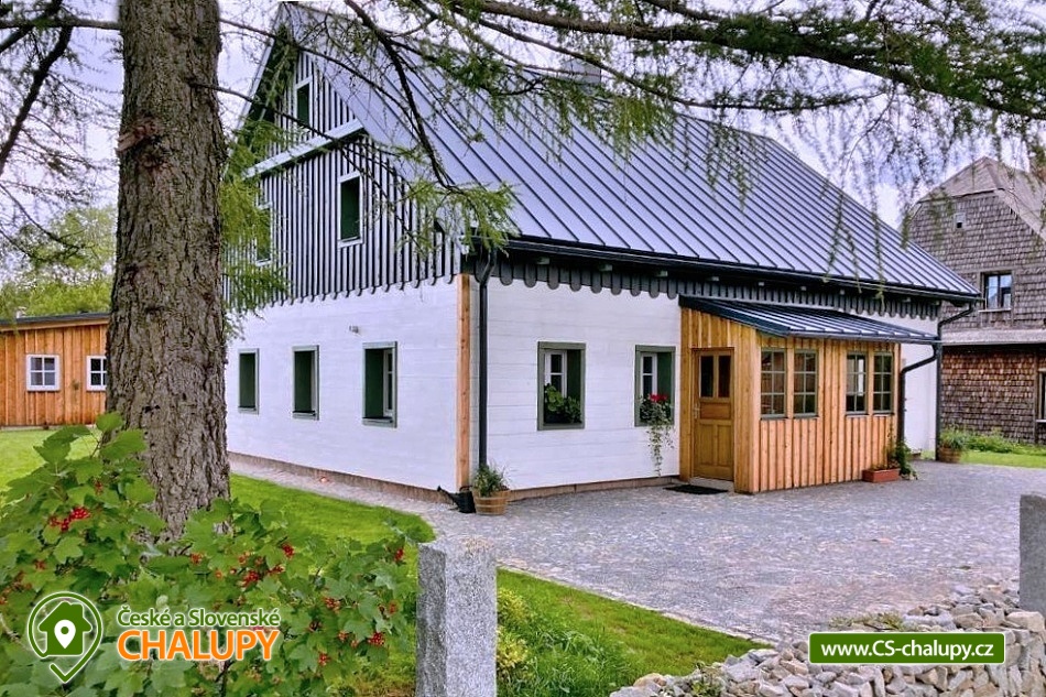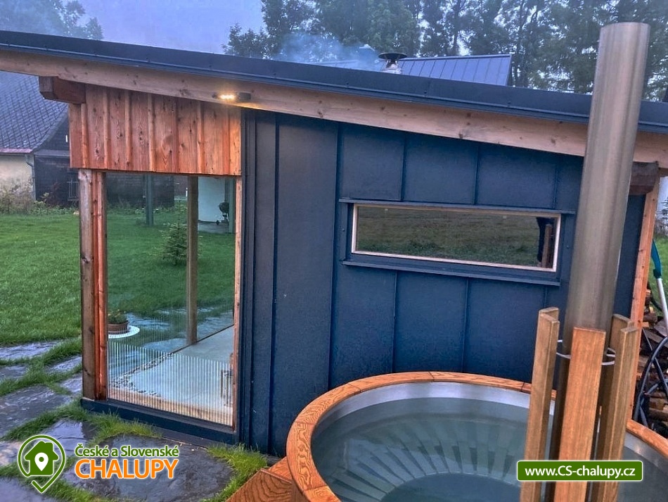 Stylish mountain cottage with wellness (Finnish sauna and hot tub) offers accommodation in two separate apartments. Accommodation in the center of the Rejvíz - Jeseníky nature reserve. The cottage offers accommodation for up to 10 people (5 + 5 people). Each apartment is for max. 5 people and has a separate entrance. DESCRIPTION: Each apartment has a spacious living room with a fully equipped kitchen on the ground floor. The room has a tiled stove and access to a spacious covered terrace. On the first floor there are two bedrooms and a toilet. Bedroom 1 - large double bed. Bedroom 2 - three solid oak beds. You can change your shoes in the apartments, please bring suitable shoes with you. Smoking and the use of open fire are prohibited throughout the property. Both apartments have a fully equipped kitchen (dishwasher, fridge with freezer, hob, Nespresso coffee machine, multifunction oven, all dishes). The living room has a multimedia smart TV with internet connection with the ability to watch YouTube and Netflix. There is an HDMI cable for connecting to a laptop. Sanitary facilities: Each apartment has its own bathroom with toilet on the ground floor and a separate toilet by the bedrooms on the first floor. The toilets are equipped with a bidet shower. Heating: Central heating - cast iron radiators combined with underfloor heating. There is also a heating ladder in the bathroom and toilet. Each apartment has a reserved parking space. Charging of electric cars and hybrids directly at the apartment. In the above-standard furnished apartments you will enjoy your family vacation to the fullest. There are cycling routes, ski resorts and other attractive tourist destinations nearby. The cottage is located in the center of the Rejvíz National Nature Reserve. In the surroundings there are wonderful walks or more demanding hikes through the beautiful nature, the largest forest complex of the Jeseníky Mountains, for example to Praděd, Červenohorské sedlo or Švýcárna. Summer trips: Trips - Praděd, Dlouhé Stráně pumped storage power plant, Karlova Studánka, Rychlebské trails, Bílá Opava valley, Lesní Bar Lipová, Fauna park and Velké Losiny handmade paper mill. In winter: Cross-country skiing circuits directly on Rejvíz lead past the cottage, or. Petříkov - Paprsek, Červenohorské sedlo and Praděd. Ski resorts - Červenohorské sedlo, Lázeňský vrch, Ramzová, Filipovice, Dolní Údolí, Ramzová and Kouty. We look forward to seeing you at our place.