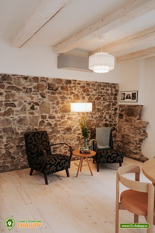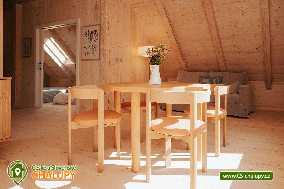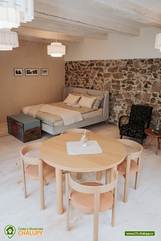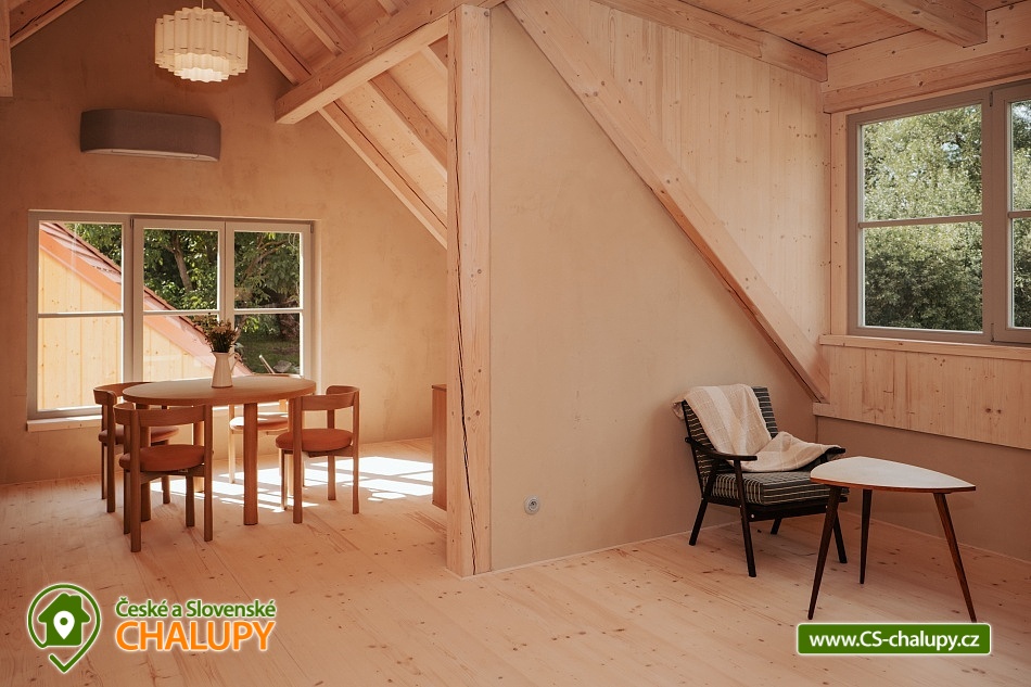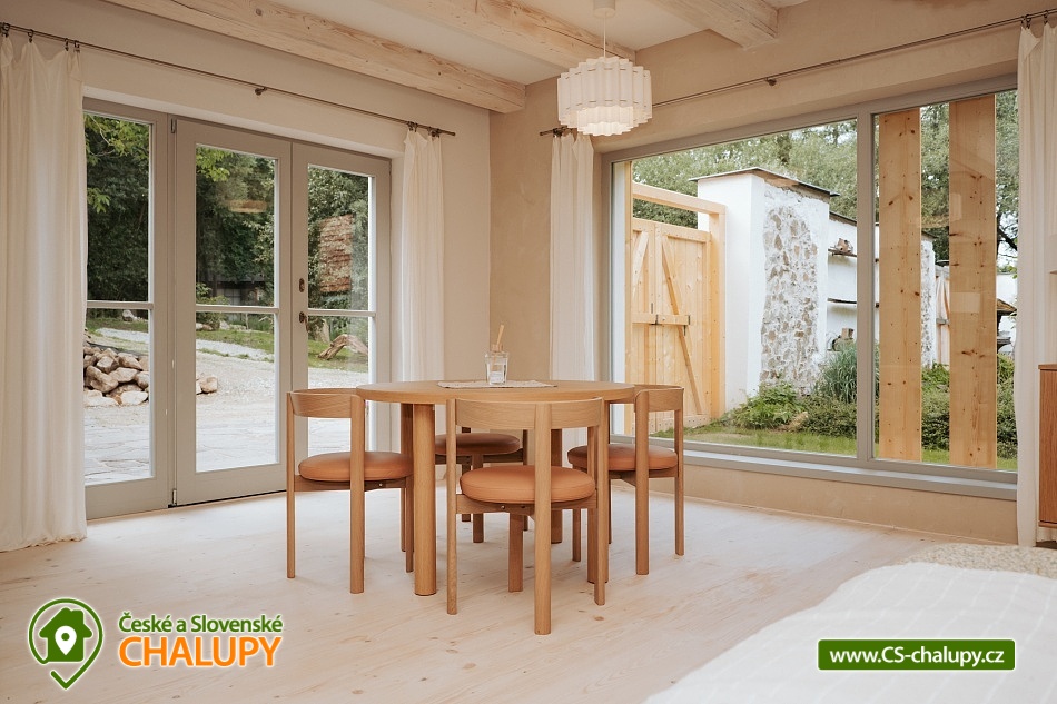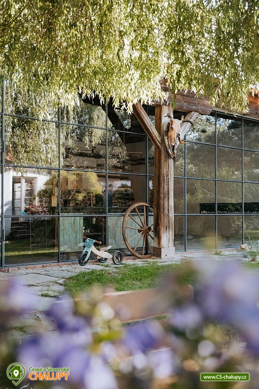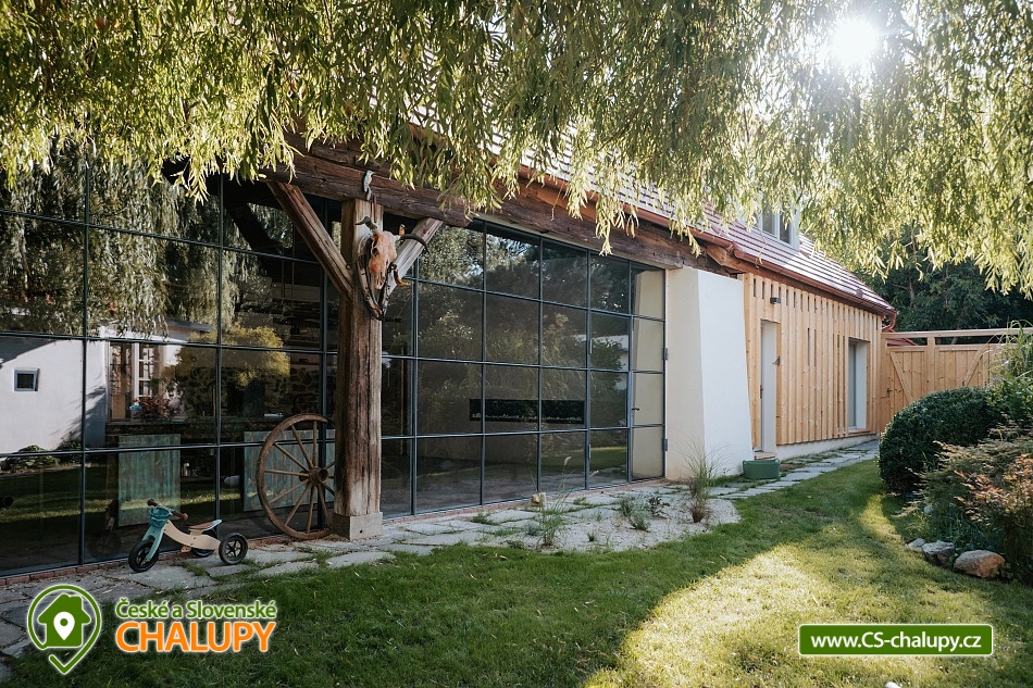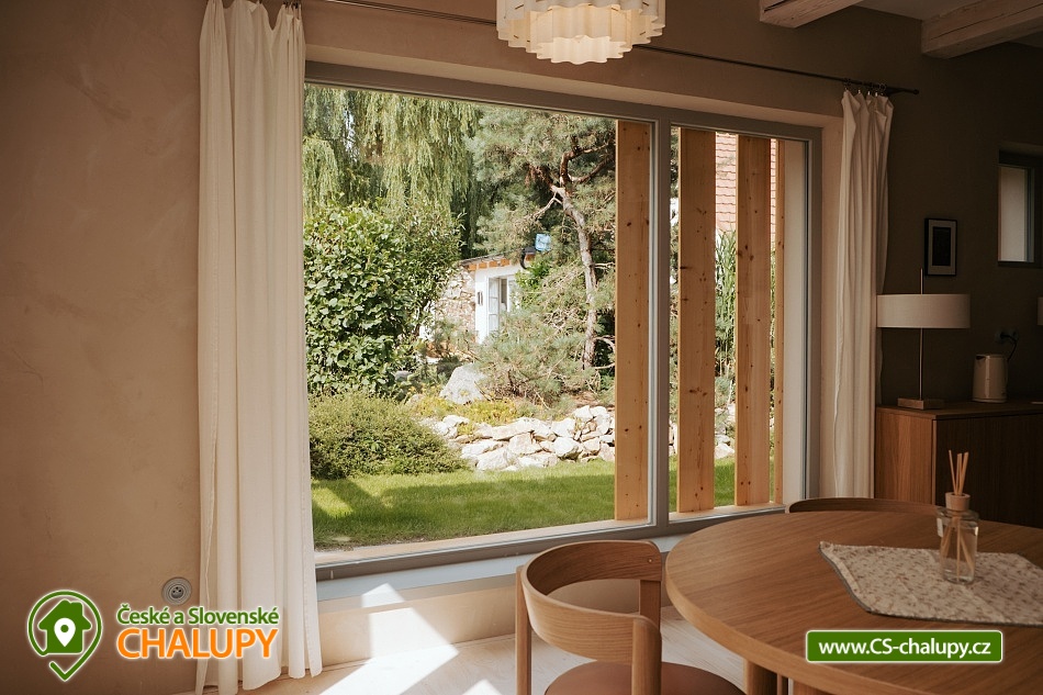 Chalupa Wellness & Spa Boutique ubytování - Česká Kanada. Vítejte v usedlosti, ve které najde jedinečné ubytování až 8 osob. Můžete se ocitnout jako na konci světa a prožít jedinečný zážitek uprostřed přírody s možností využití celoročně vyhřívaného bazénu, vířivky a tradiční finské sauny. Nacházíme se na okraji malebného regionu Česká Kanada u řeky Moravská Dyje, která teče přímo na naší zahradě. Pro Vaše pohodlí nabízíme čtyři apartmány: přízemní apartmán "Strakapoud" a "Brhlík" a podkrovní apartmány "Žluva" a "Sýkora". Nacházejí v samostatném a odděleném křídle s prostornou společenskou místností a kuchyní, kde najdete veškeré vybavení pro příjemnou rekreaci a odpočinek. Usedlost je obklopena rozsáhlým oploceným pozemkem a hraničící řekou, ideální pro rybaření nebo po ni jen tak můžete plout na kánoi. Chalupa má velký uzavřený dvůr, kde každý host najde své místo pro společné aktivity nebo klid. Můžete si vychutnat krásu Japonské zahrady s čajovým altánem a jezírkem. Pro sportovní nadšence je k dispozici mnoho sportovního náčiní, které můžete využít pro aktivní vyžití. Uprostřed nádherného krajinného ráje se rozkládají rybníky a lesy, které jen čekají na vaše procházky. Vydejte se na výlety k nedalekým rybníkům a objevujte jejich klidné břehy a bohatý život vodních tvorů. Lesy zase nabízejí skvělé možnosti pro houbaření. Oblast České Kanady a sousedícího regionu Podyjí je rajským místem pro celodenní výlety, kdy můžete objevovat historické a přírodní památky. Navštivte fascinující města jako Slavonice, Maříž, Dačice, Telč, která vás okouzlí svým architektonickým dědictvím a bohatou historií. Nedaleko odtud se nachází i město Znojmo s jeho významnými památkami a Vranovská přehrada, která láká na relaxaci u vody a vodní sporty. Milovníci cyklistiky si také přijdou na své. Region je propletený nekonečnými cyklotrasami, které vás provedou malebnými krajinami. Můžete se vydat na příjemnou jízdu přímo z našeho místa a objevovat krásy okolí. A nezapomeňte, že cyklistický ráj sahá až do nedalekého Rakouska, které nabízí další úchvatné trasy a scenérie.