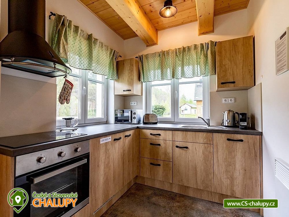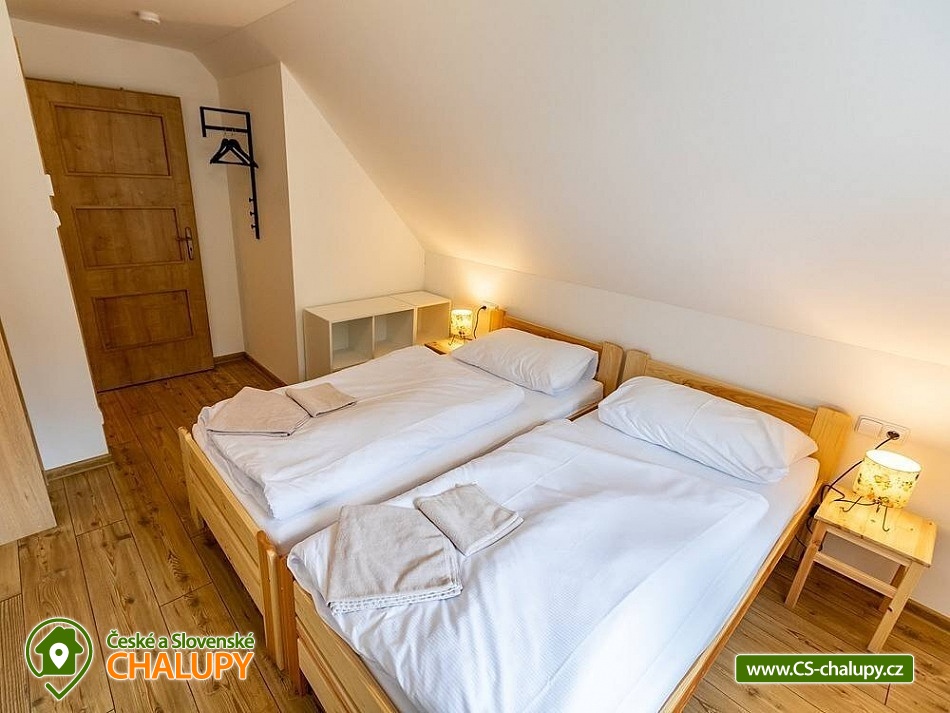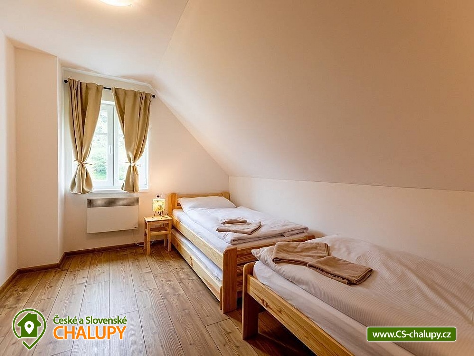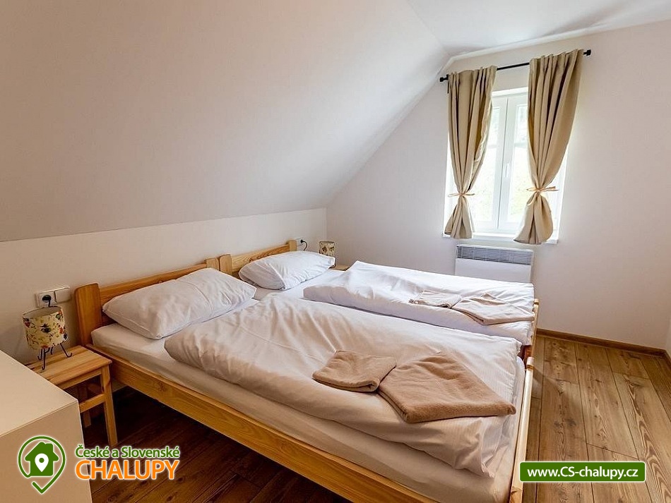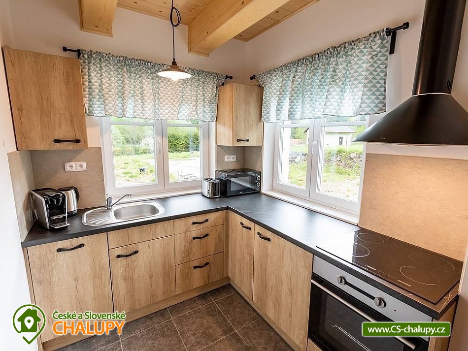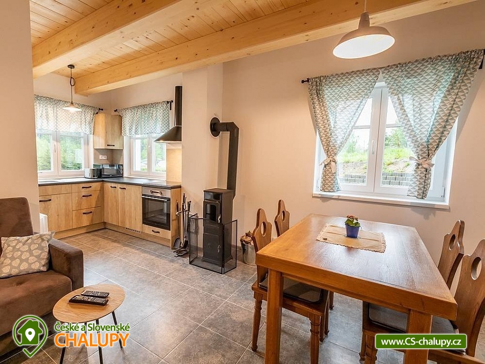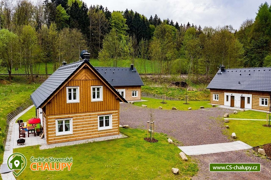 Chalupy Adršpašsko Teplické skály se nachází u skalního města s nádherným jezerem, pískovnou s průzračně čistou vodou a vyjížďkou na lodičkách - CHKO Broumovsko. Chalupy nabízí ubytování pro až 15 osob ve 3 samostatných apartmánech, každý s rozložením 4 lůžka a 1 přistýlka. V první a druhé chalupě najdete dvě samostatné ložnice: dvoulůžkovou ložnici (1x manželská postel) a třílůžkovou ložnici (2x jednolůžko, 1x přistýlka formou vysouvacího lůžka). Ve třetí chalupě je k dispozici jedna pětilůžková ložnice (1x manželská postel, 2x jednolůžko a 1x přistýlka formou vysouvacího lůžka). Možné je i zapůjčení dětské postýlky a židličky. Dále se v každé chalupě nachází obývací pokoj s TV se satelitem, společenskými hry, pohovkou a krbem. K dispozici je také plně vybavený kuchyňský kout (indukční varná deska, elektrická trouba, myčka nádobí, mikrovlnná trouba, lednice s mrazákem, kávovar, topinkovač, rychlovarná konvice a nádobí). Sociální zařízení v každé bytové jednotce zahrnuje koupelnu se sprchovým koutem a toaletou, doplněné o samostatnou toaletu. Vytápění jednotlivých chalup je řešeno elektrickým topením a krby. V objektech možnost zdarma WI-FI připojení na internet. Chalupy obklopuje zahrada s možností parkování přímo u objektů (max. 6 aut). Součástí zahrady je terasa s venkovním posezením, gril a ohniště. Děti jistě ocení hřiště s pískovištěm, houpačkou, prolézačkami a skluzavkou. V okolí objektu možnost turistiky, cykloturistiky, koupání, lyžování, běžkování, rybaření či houbaření. Mezi možnosti koupání patří např.: koupaliště Teplice nad Metují, koupaliště Petříkovice, jezero Kuprovka, rybník Buchťák nebo koupaliště Malé Svatoňovice. V zimě jsou výhodou blízká lyžařská střediska např.: Skiareál Kamenec - Teplice nad Metují, Skiareál Radvanice a Skiareál Petříkovice. K výletům v okolí láká: Adršpašsko-teplické skály, Hrad a zámek Adršpach, Křížový vrch, Rozhledna Čáp nebo Muzeum bratří Čapků. Těšíme se na Vás u nás.