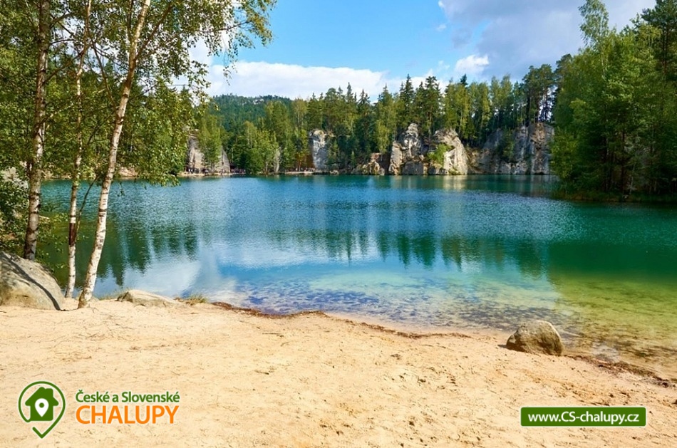 Chata na okraji CHKO Broumovsko nedaleko Babiččina údolí a skalního města Ostaš nedaleko Adršpašsko-teplických skal. Chata se nachází v pěkném prostředí na okraji lesa u břehu rybníka v klidné lokalitě u města Červený Kostelec. Kuchyňská linka v chatě je plně vybavena: sklokeramický vařič, lednice s mrazákem, mikrovlnná trouba, rychlovarná konvice a jídelní stůl. Dále je v chatě obývací pokoj s rozkládací pohovkou, TV, ložnice se dvěma velkými manželskými postelemi, koupelna se sprchovým koutem a WC. Vytápění je zajištěno elektrickým přímotopem. U chaty je terasa se zahradním nábytkem, gril a oplocená zahrada. Parkování je možné přímo u objektu. Na společné zahradě jsou 3 další identické chaty (8C-154, 8C-155 a 8C-156) a je možné využít jejich celkovou kapacitu až 20 lůžek. Půvabný kraj v okolí je plný památek a přírodních krás, který inspiruje ke spoustě výletů spojených s příběhy Boženy Němcové, Karla Čapka a Aloise Jiráska. Nejbližší možnost koupání je rekreační rybník Brodský 300 m (pláž, koupání, super rybaření - povolenka za poplatek na místě), koupaliště v Náchodě 12 km, aquapark Kudowa-Zdroj (Polsko) je vzdálený 15 km. Krásné turistické a cykloturistické výlety v CHKO Broumovsko, skály a skalní města - Adršpašsko-teplické skály, Broumovské stěny, Ostaš, Hvězda, Gory stolowe - PL. Doporučujeme navštívit Babiččino údolí a zámek Ratibořice (10 km), zámek Kuks (25 km), zámek Náchod (10 km), Nové Město nad Metují (20 km), zříceninu hradu Vízmburk (3 km), rozhlednu a pevnost Dobrošov (15 km), podzemní chodby v pevnosti Josefov (25 km), ZOO Dvůr Králové n.L. a další.