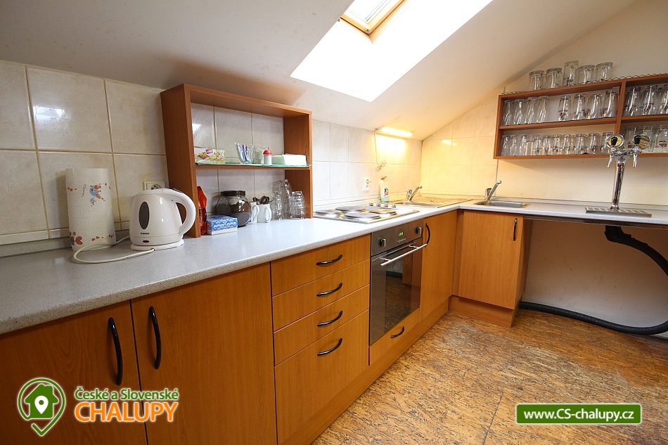 Rent a cottage TJ Sokol Bozkov. Chalet Podkrkonoší, Jizera Mountains. Accommodation in Eastern Bohemia, Semily. On the ground floor of the cottage there is a common room with table tennis and sanitary facilities (showers and sink). Upstairs you will find sleeping areas, there are two 3-bed (bunk and single bed) and two 4-bed bedrooms (one bunk and 2 single beds, the other 2 bunk beds) with the possibility of 6 extra beds, which are arranged with a fold-out bed standard mattress (2 extra beds can be placed in each 4-bed bedroom and in the common room or in another separate room measuring 7 x 3.5 m). The property is suitable for summer and winter accommodation for friendly families with children or larger groups of people. In the spacious common room there is an equipped kitchen and a tap with cooling (beer can be provided by agreement before starting the stay). In the outdoor area there is a multi-purpose playground with an artificial surface, which is available to guests in the price of the stay (complete playground equipment is available, including nets). The location of the building is suitable for tourists, cyclists and fans of collective ball games (football, volleyball). The location of the cottage is ideal for trips to the Jizera Mountains and Giant Mountains. We recommend visiting the local Bozkovsk dolomite caves, which will delight you with their beautiful stalactites. Another trip can lead to the stone lookout U Borovice, from which you can enjoy a beautiful view of the surroundings. It is also interesting to take a walk around Jizerka - the highest settlement in the Jizera Mountains, known as a deposit of precious stones. Maloskalsko will offer you a lot of beautiful places. These are mainly rock formations and castle ruins. Among the interesting places in the Giant Mountains, we recommend visiting the tourist centers of Rokytnice nad Jizerou or Harrachov with its nearby Mumlav waterfall. Renting a cottage TJ Bozkov.
