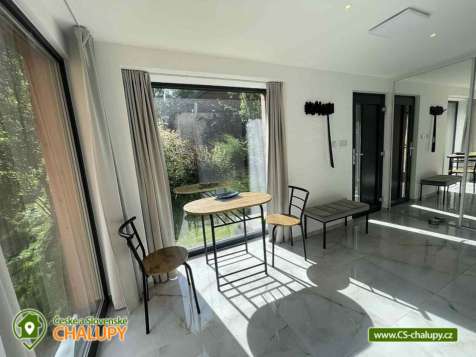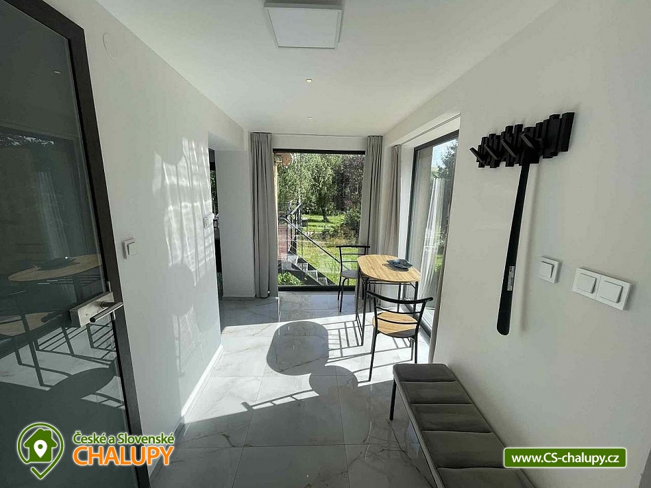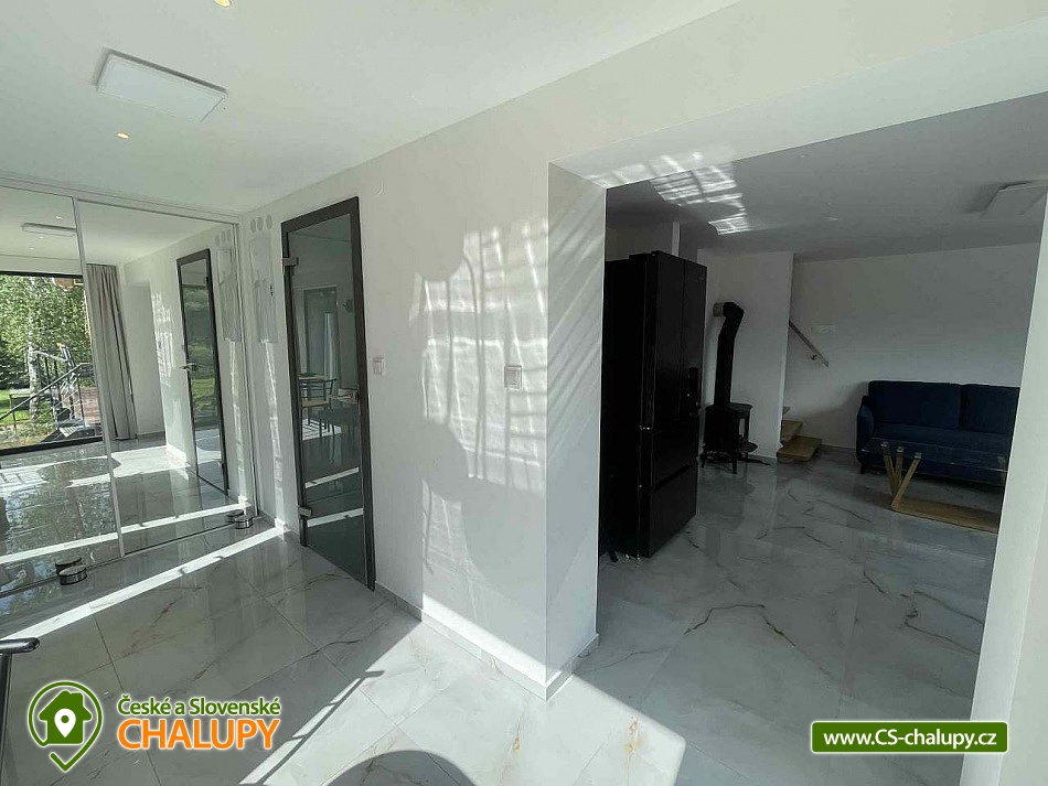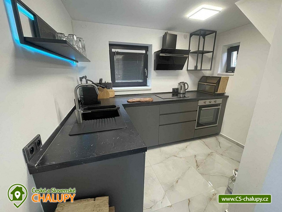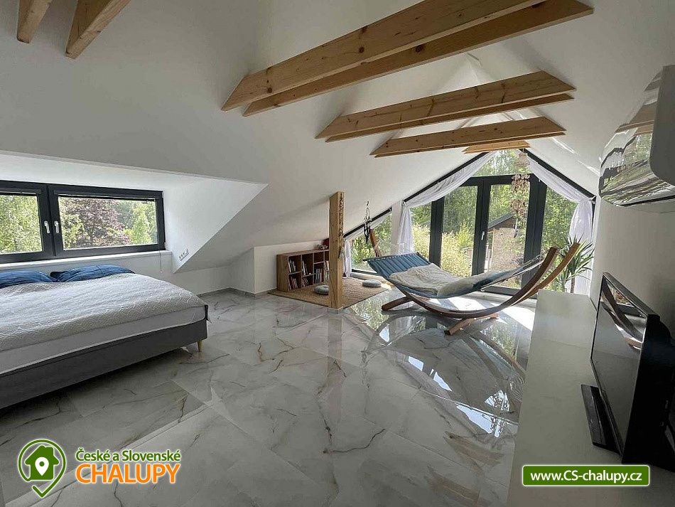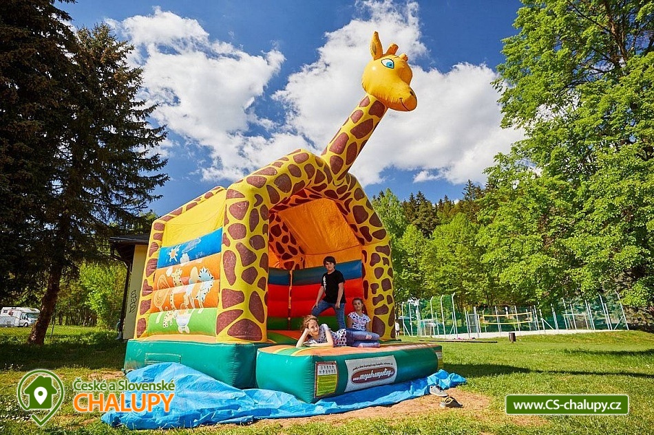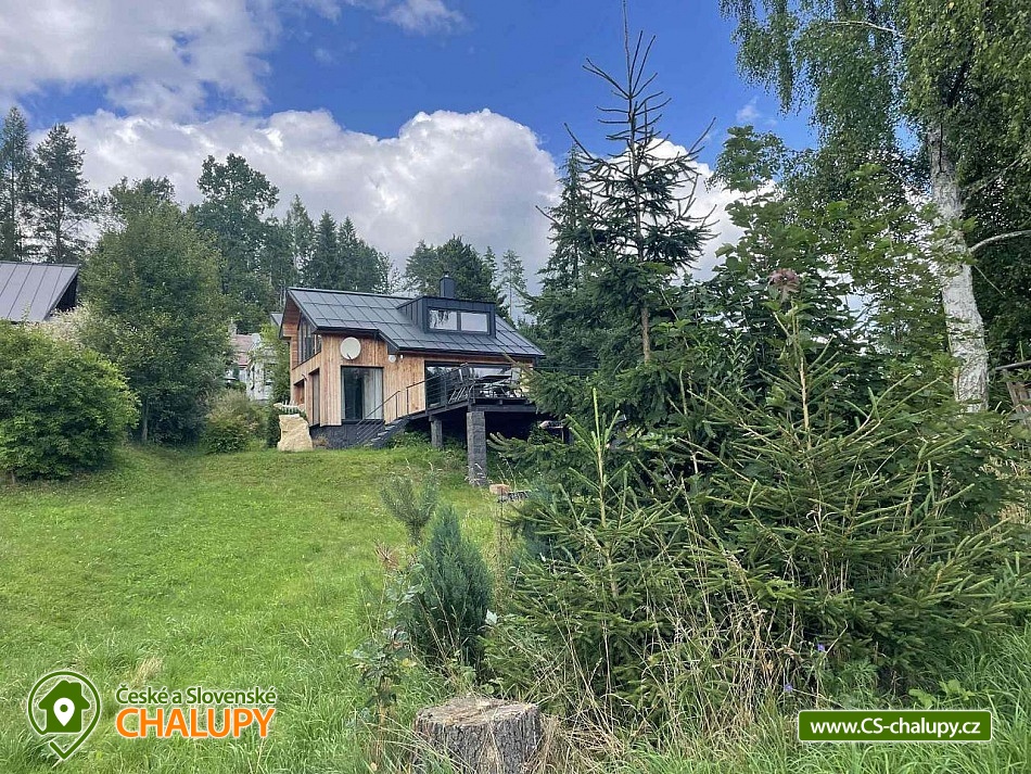 Comfortable holiday cottage with a terrace by a swimming pond in the Dolce - Krkonoše holiday area, located near Černá hora and Janské Lázně in the Trutnov region. In Dolce there is a grassy beach and a pier, there is also the possibility of sports activities (tennis courts, minigolf, children's playground, water slide, boat and paddleboard rental). The cottage offers accommodation for up to 5 people and has 1 separate bedroom. Ground floor: Entrance hall, dining room, kitchen connected to the living room with a sofa bed (double bed), outdoor terrace, toilet + shower. On the upper floor there is a bedroom (double bed) + the possibility of adding a mattress as an extra bed. Sanitary facilities: toilet + shower. Heating: Electric boiler - underfloor heating, fireplace, heat pump - air conditioning. Parking on the own land directly at the cottage for two cars. Also available: spacious terrace with a view, outdoor furniture, grill, TV, wifi, satellite, stove, oven, coffee maker, kettle, cot. Trips: Sněžka, Janské Lázně Ski Resorts, Treetop Trail and cable car to Černá hora, Pec pod Sněžkou, Stachelberg Fortress, many bunkers, Kuks, Dvůr Králové nad Labem Zoo, Ratibořice, Grandma's Valley, Náchod - chateau, Dobrošov fortress, Adršpach region - Teplice rocks, Jaroměř - railway museum and Josefov fortress. In the area near the cottage 2 km along the cycle path Dolce Recreation Area (restaurant, kiosk, playground, aquazorbing, pedal boat rental, tennis, table tennis, football, volleyball, beach volleyball, minigolf). Within 5 km there is a city swimming pool, cinema, theatre, bowling, fitness, wellness, sauna, summer bobsled track, golf Grunt resort and horse riding. We look forward to seeing you at our place.