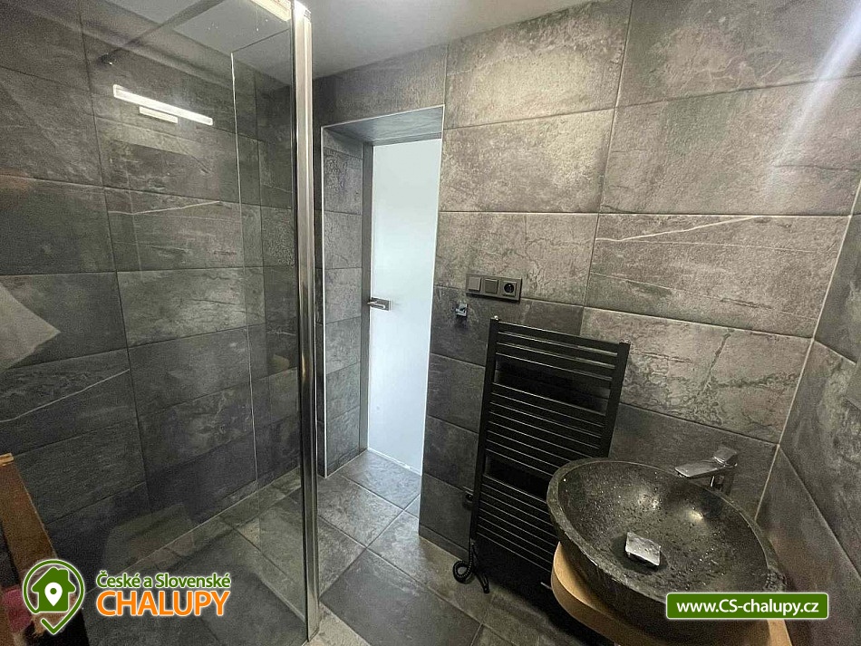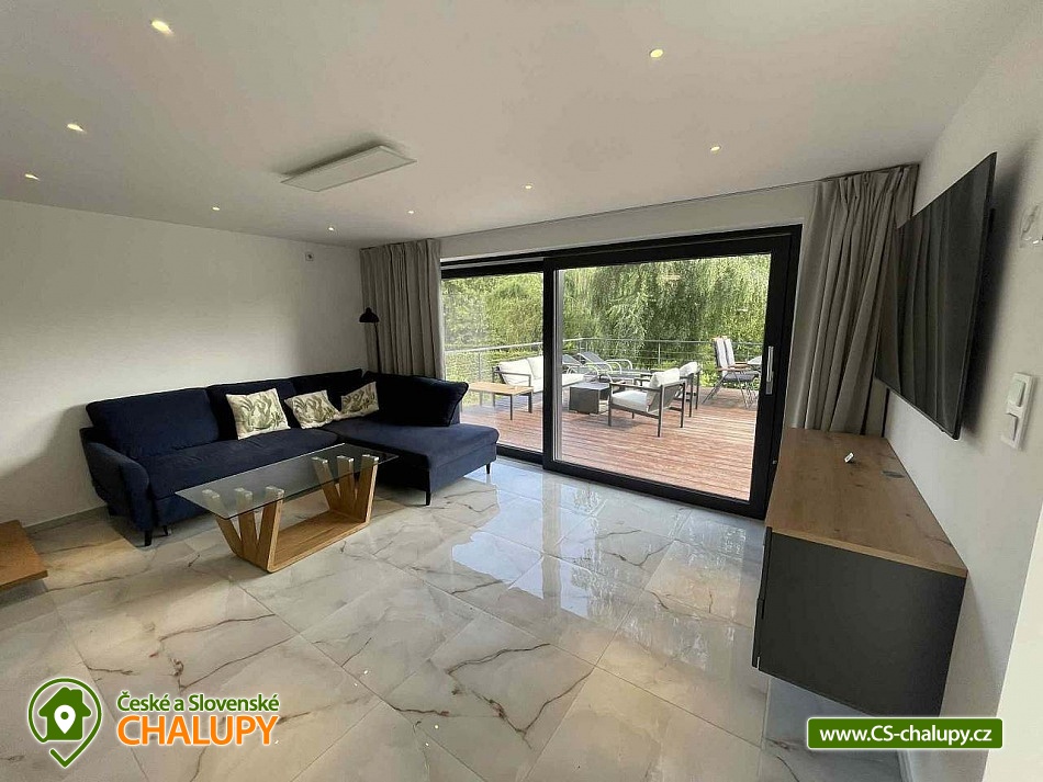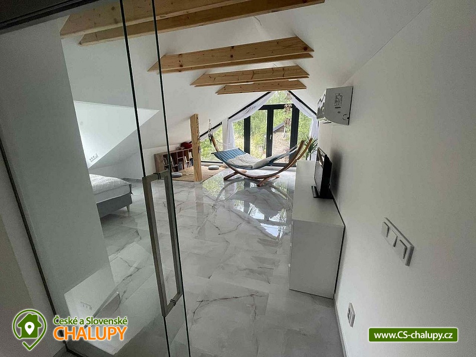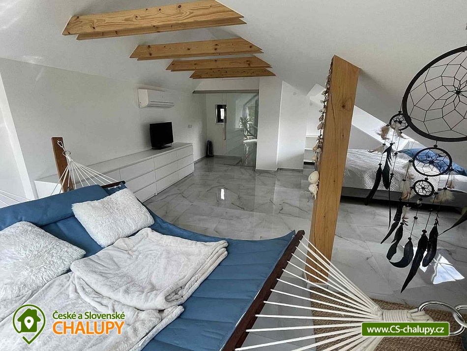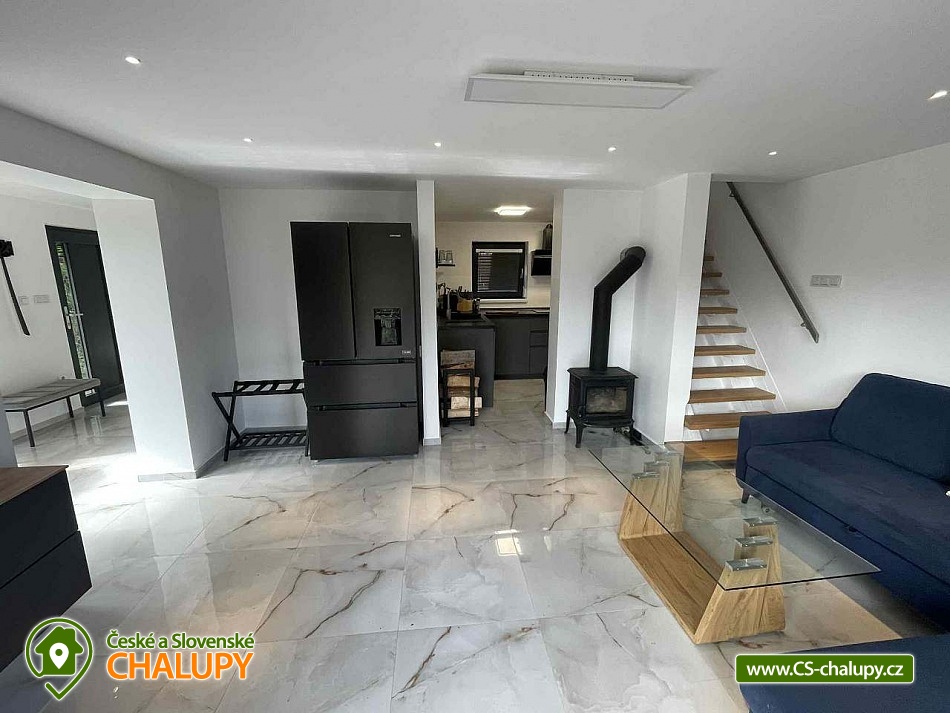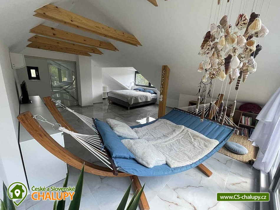Comfortable holiday cottage with a terrace by a swimming pond in the Dolce - Krkonoše holiday area, located near Černá hora and Janské Lázně in the Trutnov region. In Dolce there is a grassy beach and a pier, there is also the possibility of sports activities (tennis courts, minigolf, children's playground, water slide, boat and paddleboard rental). The cottage offers accommodation for up to 5 people and has 1 separate bedroom. Ground floor: Entrance hall, dining room, kitchen connected to the living room with a sofa bed (double bed), outdoor terrace, toilet + shower. On the upper floor there is a bedroom (double bed) + the possibility of adding a mattress as an extra bed. Sanitary facilities: toilet + shower. Heating: Electric boiler - underfloor heating, fireplace, heat pump - air conditioning. Parking on the own land directly at the cottage for two cars. Also available: spacious terrace with a view, outdoor furniture, grill, TV, wifi, satellite, stove, oven, coffee maker, kettle, cot. Trips: Sněžka, Janské Lázně Ski Resorts, Treetop Trail and cable car to Černá hora, Pec pod Sněžkou, Stachelberg Fortress, many bunkers, Kuks, Dvůr Králové nad Labem Zoo, Ratibořice, Grandma's Valley, Náchod - chateau, Dobrošov fortress, Adršpach region - Teplice rocks, Jaroměř - railway museum and Josefov fortress. In the area near the cottage 2 km along the cycle path Dolce Recreation Area (restaurant, kiosk, playground, aquazorbing, pedal boat rental, tennis, table tennis, football, volleyball, beach volleyball, minigolf). Within 5 km there is a city swimming pool, cinema, theatre, bowling, fitness, wellness, sauna, summer bobsled track, golf Grunt resort and horse riding. We look forward to seeing you at our place.