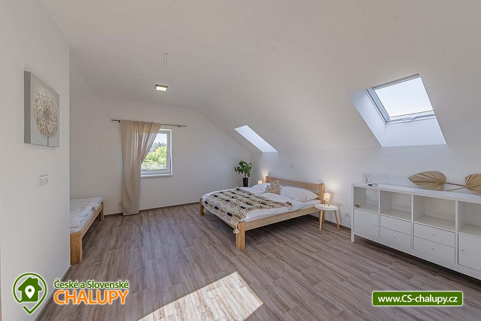 Rekreační chata s vinným sklípkem nabízí ubytování u přehrady Nové Mlýny, rekreační oblast Pálava, poloha v obci Brod nad Dyjí na jižní Moravě. Chata k pronájmu poskytuje ubytování pro až 12 osob ve 4 ložnicích. Pohodlné postele, kvalitní ložní prádlo a moderní vybavení zaručují příjemný spánek a odpočinek po náročném dni plném objevování této malebné oblasti. Naše největší tajemství se skrývá pod zemí – náš vinný sklep. Volný přístup do sklepa k téměř bezedným zásobám vína formou samoobsluhy. Možnost zajištění řízené degustace se zabijačkovým rautem v našem sklepě - doporučujeme! Chata k pronájmu poskytuje ubytování pro až 12 osob ve 4 ložnicích. Ubytování ve stylových a komfortních pokojích: dvě dvoulůžkové ložnice, dvě čtyřlůžkové ložnice, 3x klimatizace, včetně bavlněného povlečení, sítě proti hmyzu. K dispozici je velká jídelna pro 12 osob + plně vybavená kuchyň (včetně myčky, kávovaru nespresso, mikrovlnné trouby, topinkovače, varné konvice, velké lednice s mrazákem, horkovzdušné trouby a indukční desky). Dále: 4 koupelny se sprchovým koutem a toaletou ke každému pokoji (včetně toaletního papíru, ručníků, fénu na vlasy) + 1 samostatná toaleta v přízemí. Společenské hry a knížky, vybavení pro děti (židlička, 1 postýlka). Neomezené WiFi připojení a televize. Venkovní vybavení: Terasa s posezením, Venkovní gril, Ohniště , Parkoviště pro 3 vozy, Úschovna kol a Přístup do vinného sklípku. V okolí: nedaleko je Aqualand Moravia, rozsáhlý vodní park, kde si můžete užít osvěžující den plný vodních atrakcí a relaxace. Přijďte a užijte si atmosféru, která je klidná a plynulá jako tok řeky Dyje v našem milovaném Brodu nad Dyjí. Těšíme se na Vás u nás.