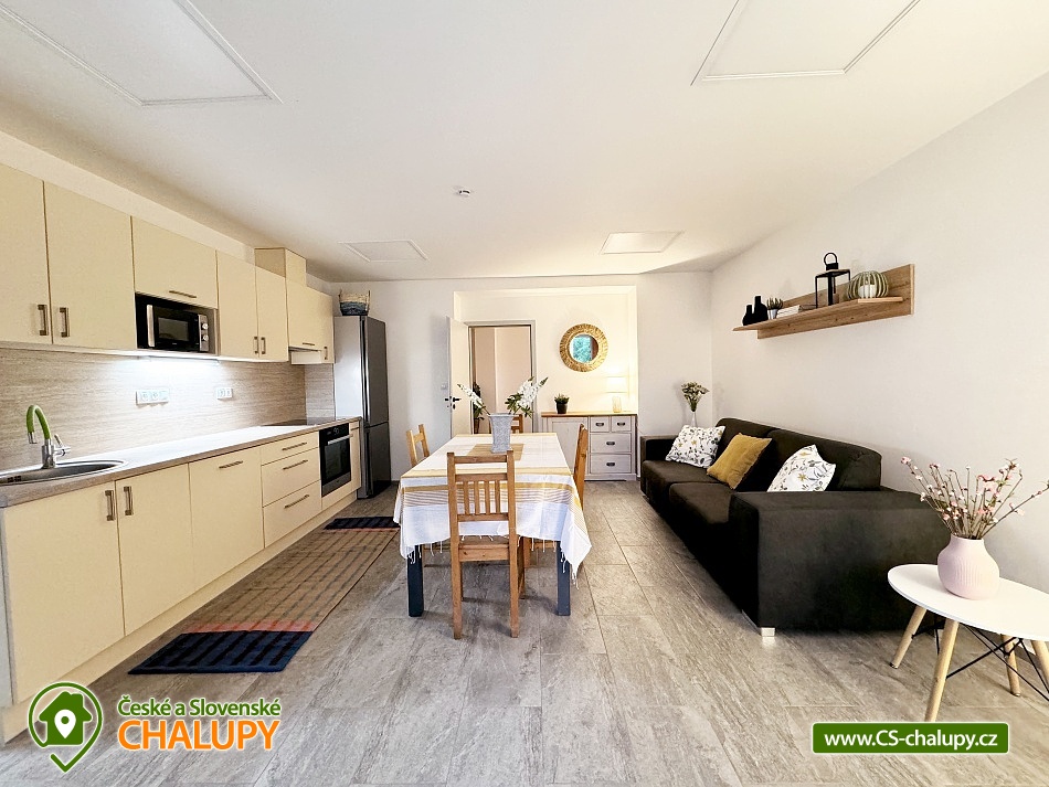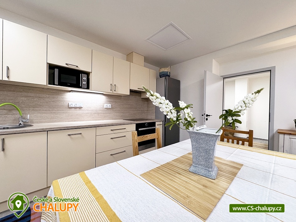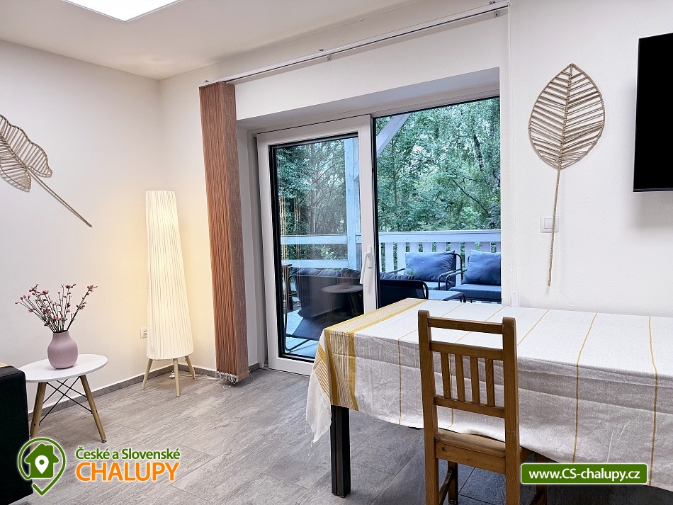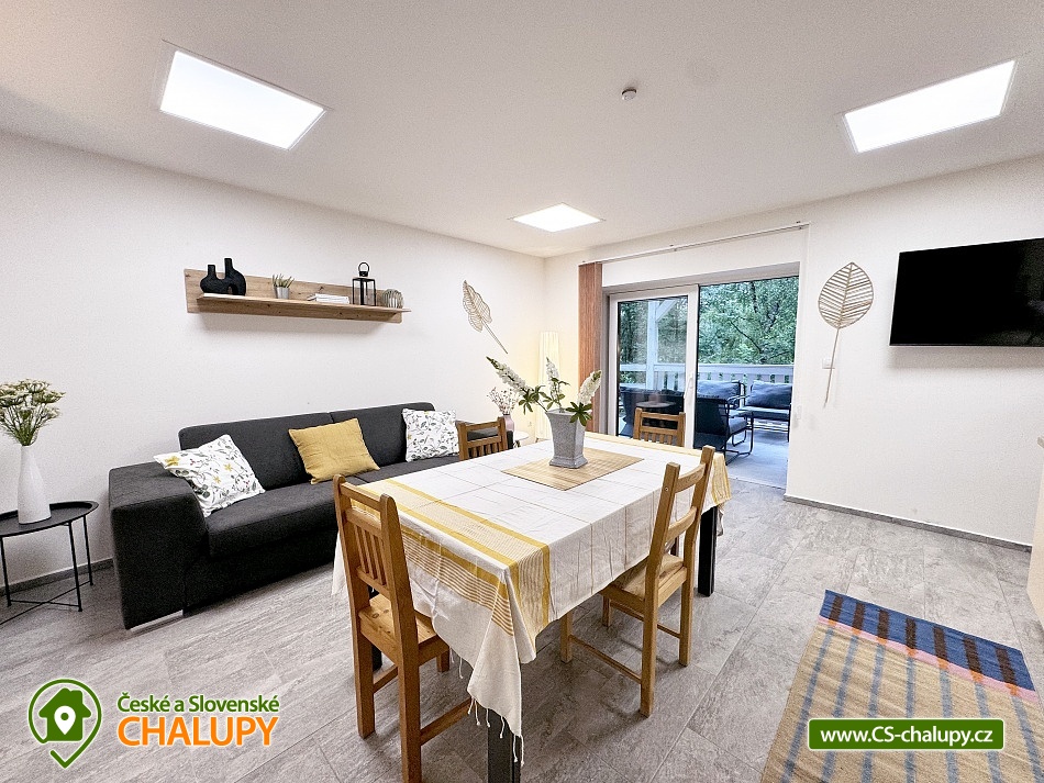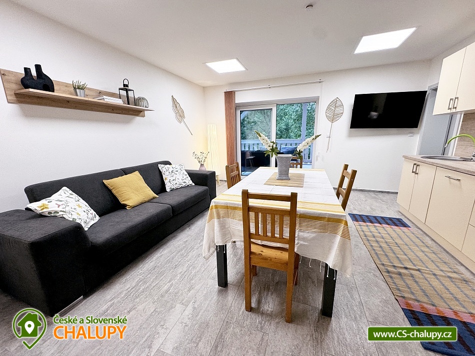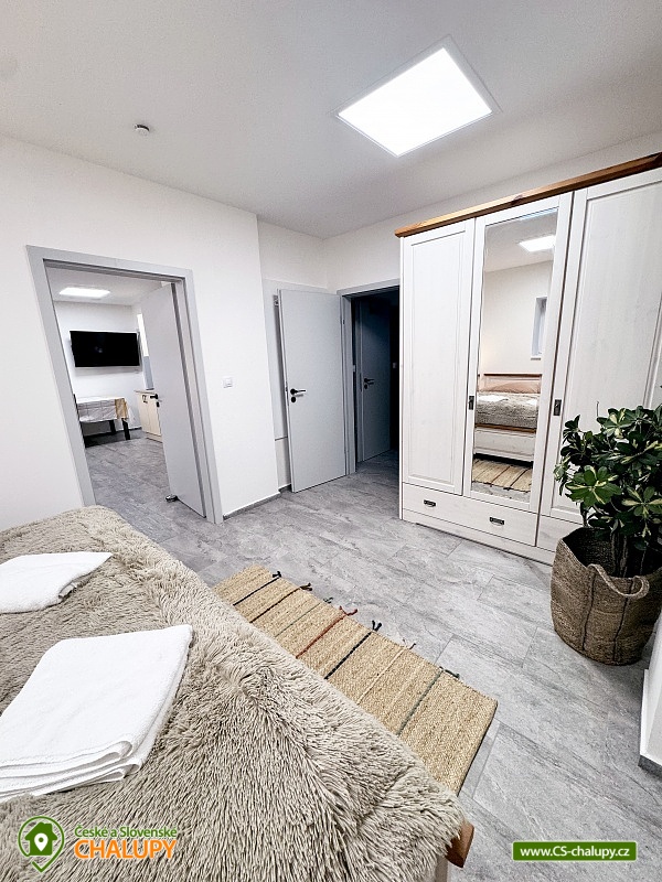 Chata Pasečná se nachází v obci Přední Výtoň u jezera Lipno a nedaleko měst Vyšší Brod a Český Krumlov. Nabízí luxusní soukromí uprostřed šumavské přírody v areálu Resortu Pasečná s možností využití wellness. Stylově zařízený chalet se nachází jen pár minut od Lipna a malebného Frymburku a nabízí komfortní ubytování až pro 14 osob ve čtyřech samostatných ložnicích (2x čtyřlůžková ložnice, 2x dvoulůžková ložnice a rozkládací pohovka pro 2 osoby v obývacím prostoru). Ideální pro rodiny, přátele i menší firemní skupiny. Chata je rozdělena na dva apartmány. Apartmán I: Stylový apartmán v přízemí nabízí pohodlné ubytování až pro 4 osoby. Disponuje útulnou ložnicí s manželskou postelí a vlastní koupelnou (sprchový kout, umyvadlo, WC), prostorným obývacím prostorem s plně vybavenou kuchyní (nádobí, lednice, mrazák, rychlovarná konvice, varná deska, trouba, mikrovlnná trouba a kávovar) a pohodlnou rozkládací pohovkou pro dvě osoby. Součástí apartmánu je také terasa s posezením, ideální pro ranní kávu nebo večerní relaxaci. APARTMÁN II: Rodinný apartmán se 3 ložnicemi v podkroví Chaletu nabízí komfortní ubytování pro větší rodinu nebo skupinu přátel s celkovou kapacitou až 10 osob. Dispozice apartmánu zahrnuje tři samostatné ložnice: Dvoulůžkový pokoj s oddělenými postelemi, vhodný například pro děti nebo přátele. Prostorný pokoj s manželskou postelí, rozkládací pohovkou a balkonem, ideální až pro 4 osoby. Další prostorný pokoj s manželskou postelí, rozkládací pohovkou a přímým vstupem na velkou terasu, která nabízí příjemné posezení s výhledem do okolní přírody - také vhodný až pro 4 osoby. Všechny pokoje v patře sdílejí společnou koupelnu se sprchovým koutem a WC. Hosté tohoto apartmánu mají navíc k dispozici společenskou místnost v přízemí chaletu, která je vybavena plně zařízenou kuchyní (nádobí, lednice, mrazák, rychlovarná konvice, varná deska, trouba, mikrovlnná trouba a kávovar), velkým jídelním stolem, pohodlným posezením a vstupem na venkovní terasu. Součástí přízemí je také druhá koupelna (se sprchovým koutem a WC), což výrazně zvyšuje komfort při pobytu více osob. Tento prostorný rodinný apartmán je skvělou volbou pro ty, kteří hledají pohodlí, soukromí a dostatek prostoru v klidném prostředí přírody. K dispozici Wi-fi, Smart TV, parkování přímo u objektu a okamžitý přístup na turistické trasy a cyklotrasy. Všichni ubytovaní mohou využívat zázemí Resortu: stylová restaurace, wellness zóna s koupacím sudem, dětské hřiště a lesopark, půjčovna sportovního vybavení - kola, elektrokola, běžky. V okolí doporučujeme navštívit: Stezku korunami stromů, hrad Vítkův kámen, přívoz ve Frymburku a Akvárium - Svět pod hladinou nebo cisterciácký klášter ve Vyšším Brodě. Možnosti koupání: vodní nádrž Lipno, aquapark Frymburk, aquapark Lipno, rybník Olšina. Blízká lyžařská střediska: Frymburk, Lipno. Těšíme se na Vás u nás.
