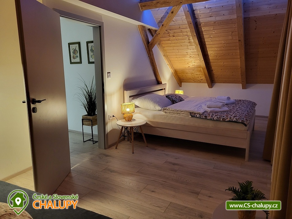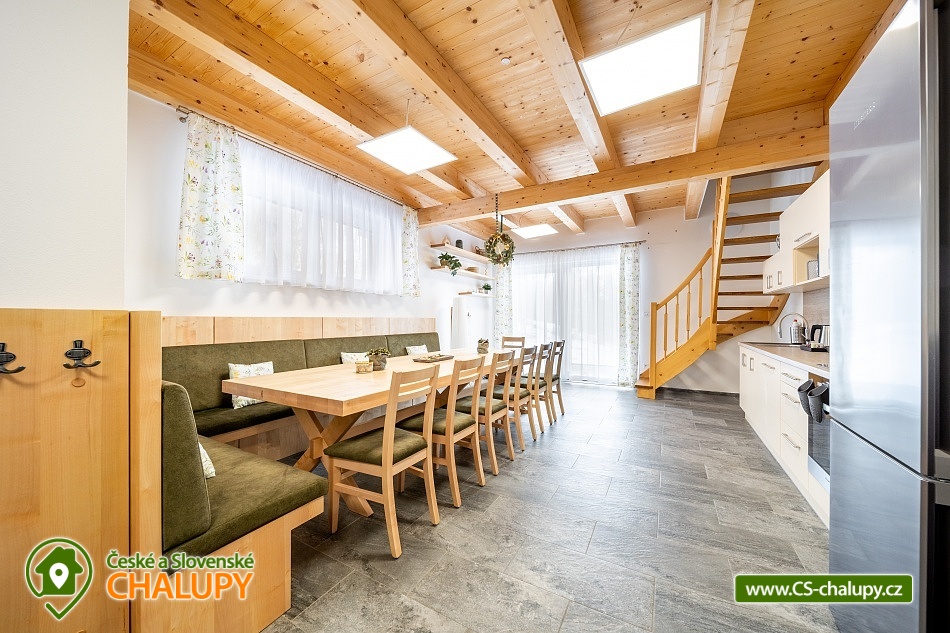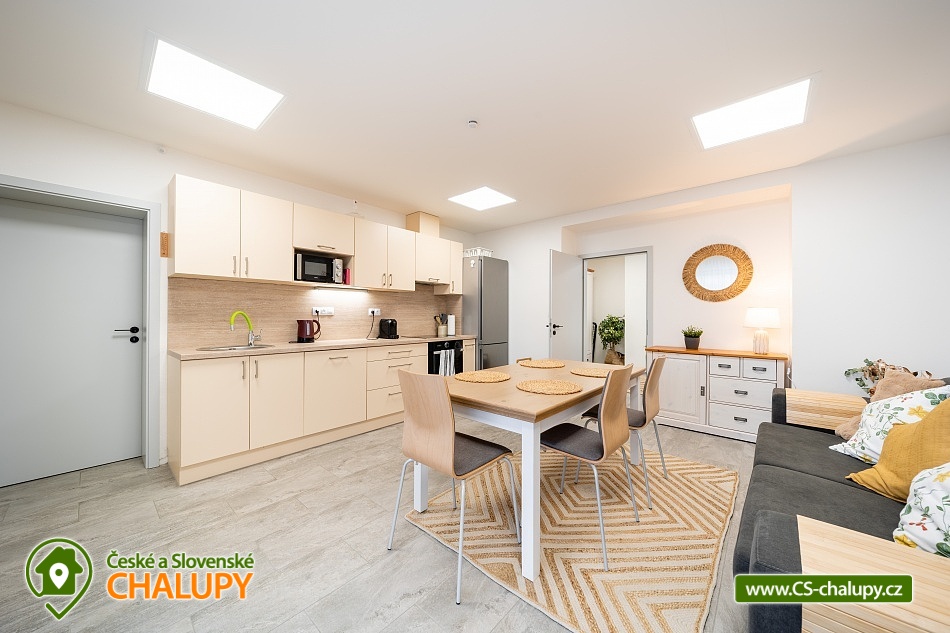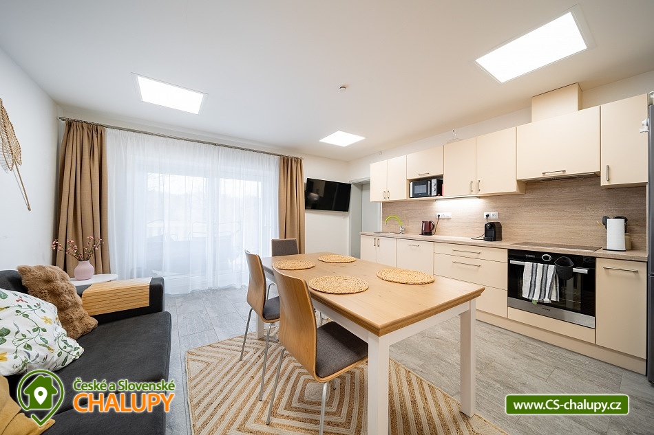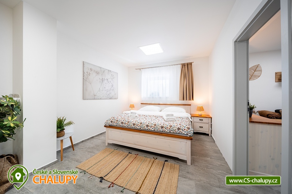 Chata Pasečná se nachází v obci Přední Výtoň u jezera Lipno a nedaleko měst Vyšší Brod a Český Krumlov. Nabízí luxusní soukromí uprostřed šumavské přírody v areálu Resortu Pasečná s možností využití wellness včetně 2 hodin privátního pronájmu sauny v ceně pobytu. Stylově zařízený chalet se nachází jen pár minut od Lipna a malebného Frymburku a nabízí komfortní ubytování až pro 14 osob ve čtyřech samostatných ložnicích (2x čtyřlůžková ložnice, 2x dvoulůžková ložnice a rozkládací pohovka pro 2 osoby v obývacím prostoru). Ideální pro rodiny, přátele i menší firemní skupiny. Chata je rozdělena na dva apartmány. Apartmán I: Stylový apartmán v přízemí nabízí pohodlné ubytování až pro 4 osoby. Disponuje útulnou ložnicí s manželskou postelí a vlastní koupelnou (sprchový kout, umyvadlo, WC), prostorným obývacím prostorem s plně vybavenou kuchyní (nádobí, lednice, mrazák, rychlovarná konvice, varná deska, trouba, mikrovlnná trouba a kávovar) a pohodlnou rozkládací pohovkou pro dvě osoby. Součástí apartmánu je také terasa s posezením, ideální pro ranní kávu nebo večerní relaxaci. APARTMÁN II: Rodinný apartmán se 3 ložnicemi v podkroví Chaletu nabízí komfortní ubytování pro větší rodinu nebo skupinu přátel s celkovou kapacitou až 10 osob. Dispozice apartmánu zahrnuje tři samostatné ložnice: Dvoulůžkový pokoj s oddělenými postelemi, vhodný například pro děti nebo přátele. Prostorný pokoj s manželskou postelí, rozkládací pohovkou a balkonem, ideální až pro 4 osoby. Další prostorný pokoj s manželskou postelí, rozkládací pohovkou a přímým vstupem na velkou terasu, která nabízí příjemné posezení s výhledem do okolní přírody - také vhodný až pro 4 osoby. Všechny pokoje v patře sdílejí společnou koupelnu se sprchovým koutem a WC. Hosté tohoto apartmánu mají navíc k dispozici společenskou místnost v přízemí chaletu, která je vybavena plně zařízenou kuchyní (nádobí, lednice, mrazák, rychlovarná konvice, varná deska, trouba, mikrovlnná trouba a kávovar), velkým jídelním stolem, pohodlným posezením a vstupem na venkovní terasu. Součástí přízemí je také druhá koupelna (se sprchovým koutem a WC), což výrazně zvyšuje komfort při pobytu více osob. Tento prostorný rodinný apartmán je skvělou volbou pro ty, kteří hledají pohodlí, soukromí a dostatek prostoru v klidném prostředí přírody. K dispozici Wi-fi, Smart TV, parkování přímo u objektu a okamžitý přístup na turistické trasy a cyklotrasy. Všichni ubytovaní mohou využívat zázemí Resortu: stylová restaurace, wellness zóna s koupacím sudem, dětské hřiště a lesopark, půjčovna sportovního vybavení - kola, elektrokola, běžky. V okolí doporučujeme navštívit: Stezku korunami stromů, hrad Vítkův kámen, přívoz ve Frymburku a Akvárium - Svět pod hladinou nebo cisterciácký klášter ve Vyšším Brodě. Možnosti koupání: vodní nádrž Lipno, aquapark Frymburk, aquapark Lipno, rybník Olšina. Blízká lyžařská střediska: Frymburk, Lipno. Těšíme se na Vás u nás.