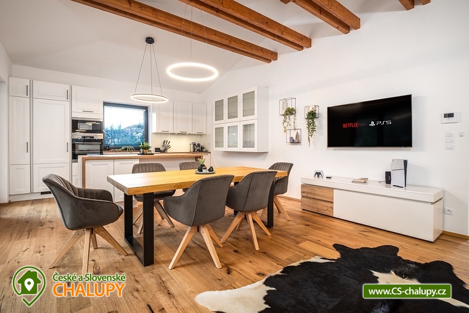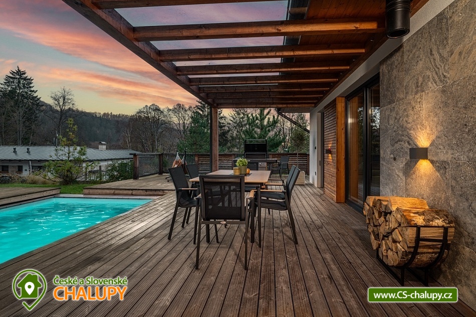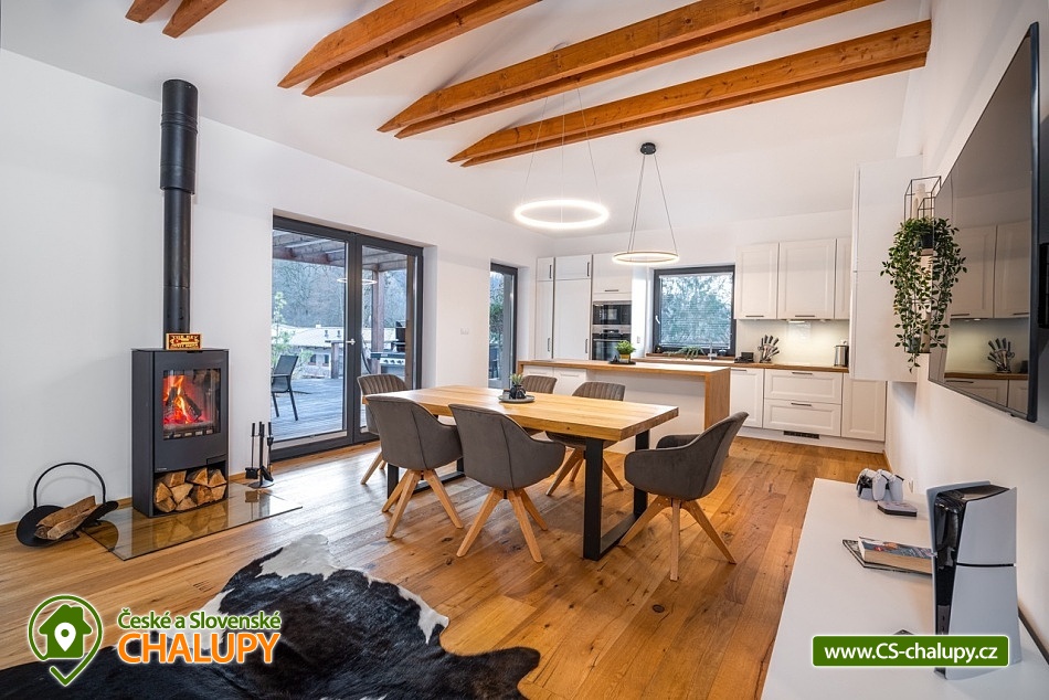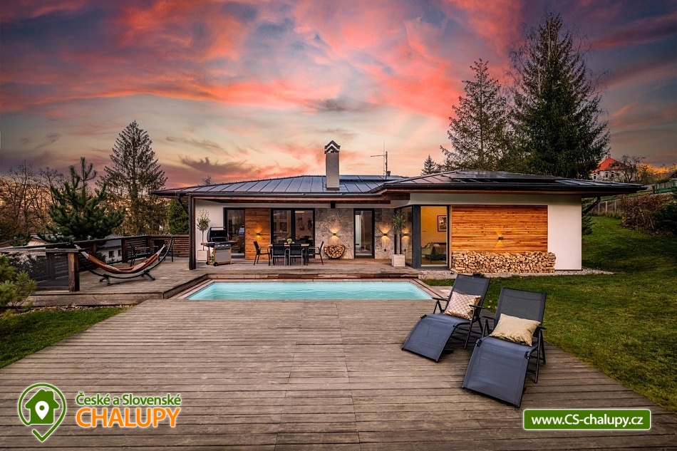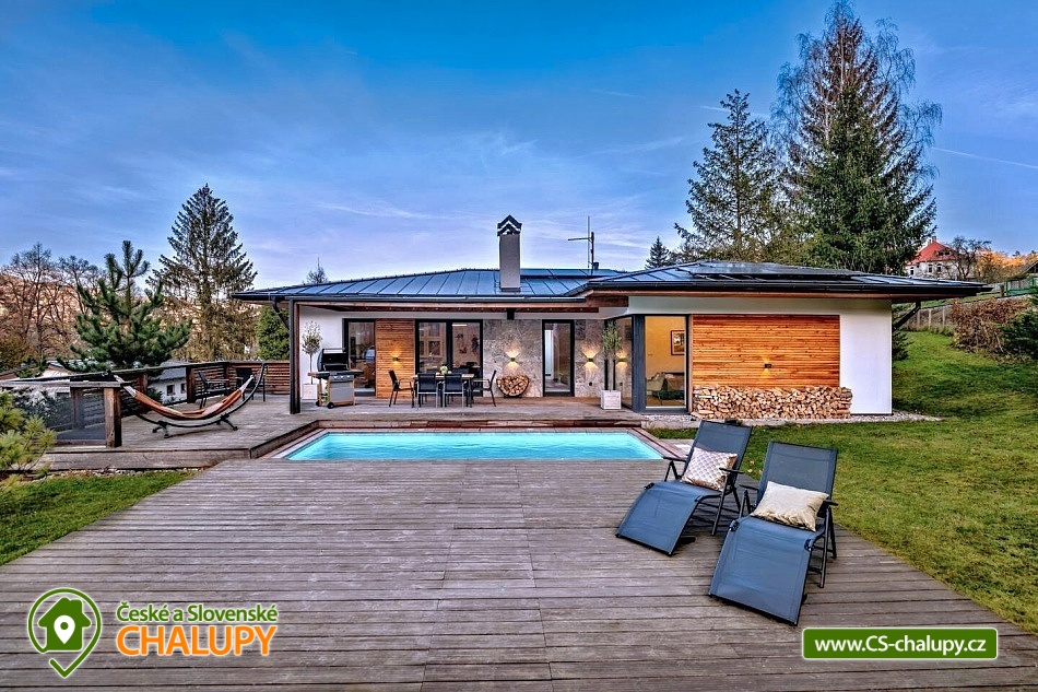 Comfortable holiday home with swimming pool - Sázava town, Benešov district, Central Bohemian region. Sázava is a hidden gem surrounded by lush forests and the calm Sázava River. The house can accommodate up to 7 people in 3 bedrooms. The house is located in a unique location overlooking the greenery, near the Sázava River. We created it to provide people with the opportunity to escape to beautiful nature, enjoy a romantic getaway or a heated pool during the season, while remaining within driving distance of the capital city of Prague. The main advantages of the house: Heated pool with counter-current (seasonal use), Romantic fireplace, Parking for two cars, Electric car charger, TV with Netflix and PS5, Fully equipped kitchen, Grill, Air conditioning, Games and books. Terrace and garden: Grill with equipment for the perfect barbecue (butcher shop with exceptional meat from local farms is in the neighboring village). Sun loungers and hammock, dining table. Heated pool with counter-current (available only in the summer season - unavailable in the winter). The pool is covered and located under a terrace that can be controlled remotely. Fireplace with seating for grilling sausages or cozy evenings by the fire. Outdoor toys for children to keep the little ones entertained. Living room: Comfortable sofa bed, 55” TV with PlayStation 5 and Netflix, Board games, poker set and chess, Quality guitar for cozy evenings, Selection of books to read, Large dining table, Wood-burning fireplace with prepared fuel, View of the terrace and surrounding greenery, Portable speaker for music. Kitchen: Fully equipped for demanding cooking, Nespresso coffee machine with milk frother, Quality pans, pots and knives, Selection of spices available, Possibility of dining inside and on the outdoor terrace. Master bedroom / dressing room and bathroom: Comfortable queen-size bed (180 cm) with quality mattress and pillows, Chest of drawers for personal belongings and clothes, Work desk, TV for watching movies directly from bed, Air conditioning for ideal temperature, Blackout blinds for a peaceful sleep, Spacious dressing room, Access to the master bathroom with spacious shower, Direct access to the garden from the bathroom. Second bedroom: Comfortable queen-size bed (180 cm) with quality mattress and pillows, Chest of drawers for personal belongings and clothes, Air conditioning for ideal temperature, Blackout blinds for a peaceful sleep, En-suite bathroom with bathtub. Third bedroom / children's playroom: Comfortable sofa bed, Air conditioning for ideal temperature, Blackout blinds for a peaceful sleep, Access to the garden and terrace, Plenty of toys for children, Work desk. For children: Toys in a smaller bedroom/game room, Board games, PlayStation 5 with games, Inflatable pool toys and Sandbox. Tips for a trip around the area: Konopiště Chateau, Sázava Monastery, Kutná Hora. For children: nearby farm park and aqua park in Kutná Hora and also in Prague Čestlice. We look forward to seeing you.