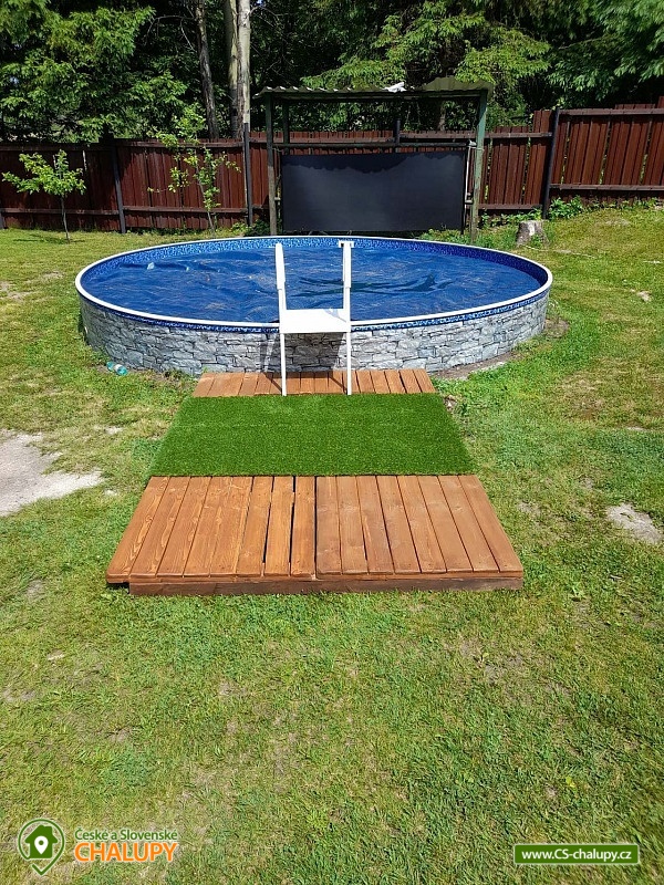 Chalet on the lookout with an outdoor pool is located in a quiet part of the small village of Okounov on the border of the Doupovské and Ore Mountains and, due to its location, provides beautiful views of the picturesque valley of the Ohře River. Nearby you can visit the spa towns of Karlovy Vary, Jáchymov and Klášterce nad Ohří. In winter, the close proximity of the Klínovec and Jáchymov ski areas is an advantage. The cottage on the lookout offers accommodation for 6 people in three double bedrooms (2x double bed, 2x single beds - can be pushed together). Shared moments can be spent in the living room with a fireplace, sofa, TV and radio with remote control CD player. You can also sit in the lighted interior terrace with a dining area and six comfortable padded chairs. There is also a fully equipped kitchen (kitchenware, electric kettle, microwave oven, large fridge with freezer and dishwasher). A washing machine can be used in the hall. The living room opens onto a covered terrace with seating and barbecue facilities. The sanitary facilities include one bathroom with a shower, bathtub and toilet. Heating is provided by fireplace stoves, which are connected to the heating system in the entire building. A semi-automatic coal-fired boiler is available in the basement for heating hot water and providing heat in the winter season. In part of the pergola there is stacked wood for heating in the fireplace stove. WIFI internet connection is available throughout the building. A large fenced grass plot (3,000m²) stretches around the cottage. Part of the property is an in-ground pool (4.75 circle diameter and 1.2 m deep) with solar heating and sand filtration. It is possible to find porcini mushrooms and other types of mushrooms on the property during the mushroom season. There is a fireplace. You can park directly at the building. In the surroundings of the cottage, hiking, cycling, swimming, fishing, mushroom picking, cross-country skiing and skiing are possible. Swimming options include, for example: Klášterec nad Ohří aquapark, Perštejn swimming pool, Jáchymov aquapark, Velký rybník Hroznětín, etc. In winter, nearby ski resorts are available: Klínovec, Horní Halže, Alšovka - Měděnec and others. Chalupník Brewery, Šumná Castle, Nový Hrad, Karlovy Vary - Diana lookout, spa center, Ostrov nad Ohří - monument zone, Zoo and Kamencové Jezero Chomutov and the Royal City of Kadaň - Katova ulička, Maxipsa Fík embankment, Franciscan monastery, Town tower or Castle with a tour of the cellars. We look forward to seeing you here.