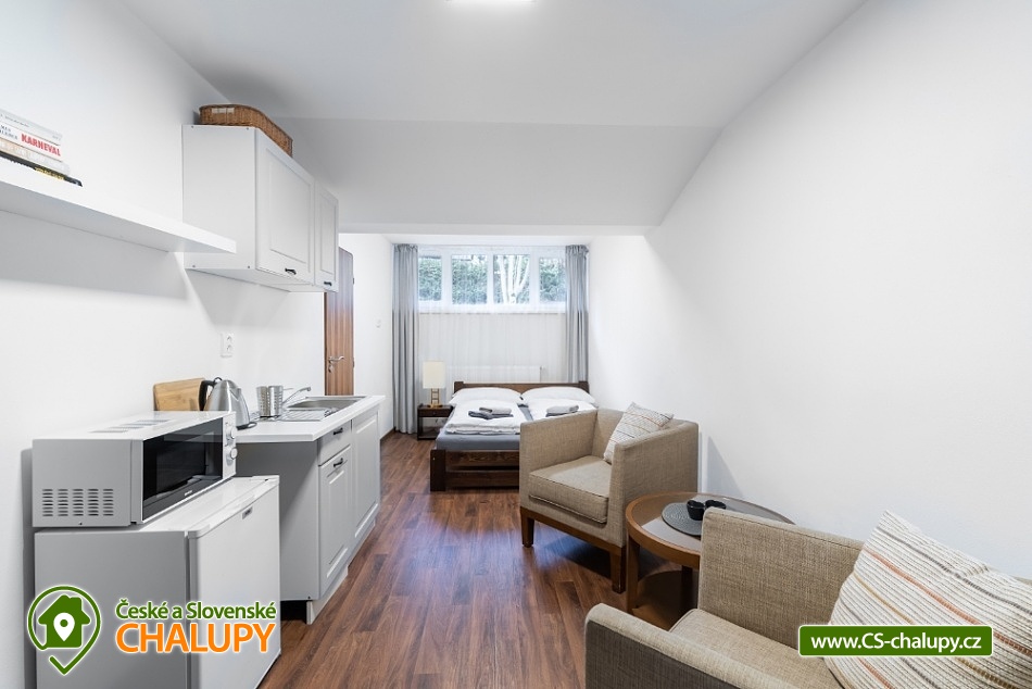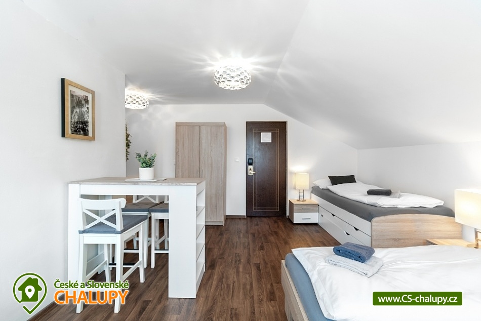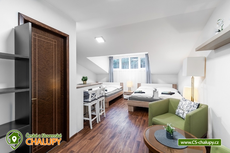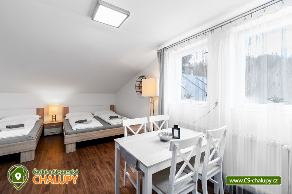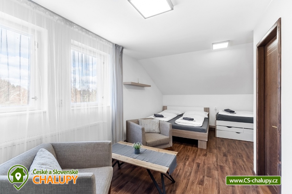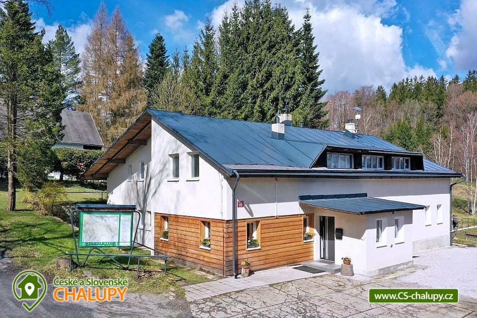 Horská chata s bazénem a saunou v Chráněné krajinné oblasti Lužické hory v blízkosti NP České Švýcarsko a zříceniny hradu Tolštejn. Celková kapacita až 28 lůžek v 9-ti pokojích (2 až 4-lůžkové pokoje, každý pokoj s vlastní koupelnu a WC). K dispozici je prostorná společenská místnost s TV pro všechny. Hosté se mohou stravovat ve vlastní režii, některé pokoje mají vlastní kuchyňku. Ve společenské místnosti je k dispozici další společná kuchyň s lednicí, mikrovlnkou, varnou konvicí, myčkou, sporákem a potřebným nádobím. Skupinám nabízíme také možnost přiobjednat snídaně, dětským kolektivům/školám také polopenze nebo plná penze. Hostům je k dispozici venkovní posezení, ohniště, nově také pingpongový stůl, basketbalový koš, fotbalové brány a prolézačky pro děti. POPIS: Dvojlůžkové pokoje: Pokoj č.1 v přízemí, vybaven manželskou postelí 180x200, skříní, křesílkem a stolkem. Je zde prostor pro dětskou postýlku. Vlastní koupelna se sprchovým koutem, WC. Pokoj č.4 - pokoj v 1. patře, vybaven manželskou postelí (160x200), dvěma křesílky a stolečkem, skříní, kuchyňský kout (konvice, lednička, mikrovlnka, bez varné desky), vlastní koupelna se sprchovým koutem, WC. Pokoj č.8 v 1.patře s manželskou postelí 180x200, skřínkou, vlastní koupelna se sprchovým koutem a WC. Pokoj č.9 v 1.patře s manželskou postelí 180x200, policovou skříní, vlastní koupelna se sprchovým koutem a WC. Třílůžkové pokoje: Pokoj č.2 v 1. patře s vlastní koupelnou se sprchovým koutem, WC. V pokoji manželská postel (180x200) a jedno samostatné lůžko (90x200), pohodlné křeslo, barový stůl pro 3 osoby, skříň, kuchyňský kout (lednička, mikrovlnka, konvice, nádobí, bez varné desky, barový stůl pro 3 osoby). Pokoj č.7 v 1. patře s možností jedné přistýlky. Vybaven manželskou postelí 180x200, samostatným lůžkem (90x200) a dalším výsuvným lůžkem (90x200), které slouží jako přistýlka. V pokoji dále skříň a dvě pohodlná křesílka se stolkem, vlastní koupelna se sprchovým koutem a WC. Čtyřlůžkové pokoje: Pokoj č.5 v 1.patře, 2x manželská postel (180x200), dvě křesílka se stolkem, policová skříň, kuchyňský kout (lednička, mikrovlnka, konvice, nádobí, bez varné desky, barový stůl pro 4 osoby, vlastní koupelna se sprchovým koutem s WC. Pokoj č. 6 - pokoj s kuchyňským koutem. Vybaven 2x manželskou postelí (180x200), kuchyňským koutem, ledničkou, mikrovlnkou a varnou konvicí, dvouplotýnkový vařič. Jídelní stůl pro 4 osoby. vlastní koupelna se sprchovým koutem, WC. Apartmán č.3 - oddělená ložnice pro 2 osoby (manželská postel 180x200), v obývací místnosti druhé manželské lůžko 180x200, jídelní stůl pro 4 osoby, 2 křesla, pokoj má vlastní koupelnu s WC a kuchyňský kout (lednice, mikrovlnka, varná deska, varná konvice, potřebné nádobí). Sociální zařízení: Součástí každého pokoje je vlastní koupelna s WC, sprchový kout. Hosté mají k dispozici osušky/ručníky, fén. U společenské místnosti jsou další dámská a pánská WC. Centrálně vytápěný objekt, na pokojích jsou radiátory, v koupelnách topné žebříky. Parkování přímo u objektu. V okolí: Adrenalin park Jedlová 2,5 km = OBŘÍ HOUPAČKA, PŮJČOVNA KOLOBĚŽEK, LANOVÝ PARK. Přímo v obci se nachází rozhledna Jedlová, zřícenina hradu Tolštejn, stříbrná štola, Křížová cesta a další. Jsme jen kousek od NP České Švýcarsko (Pravčická brána, lodičky Hřensko a spousty zajímavých a turisticky atraktivních míst). Těšíme se na Vás u nás.
