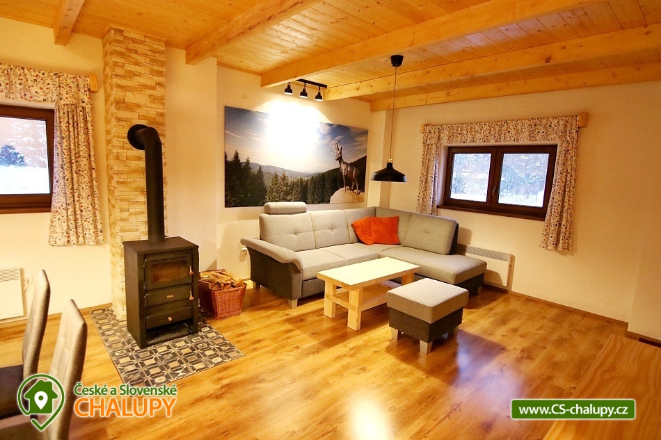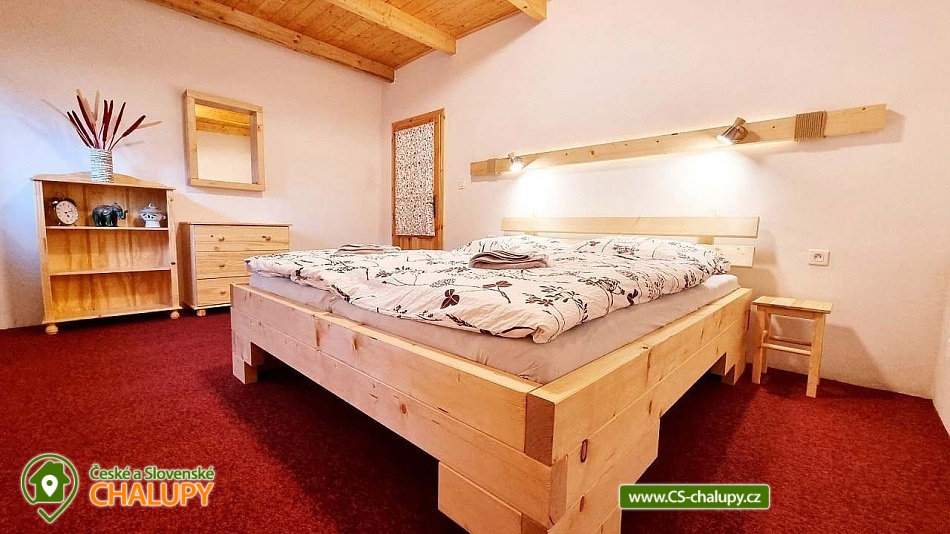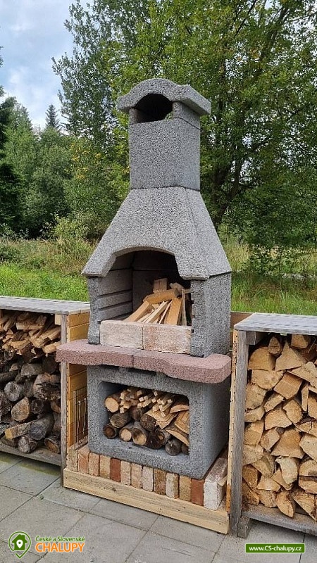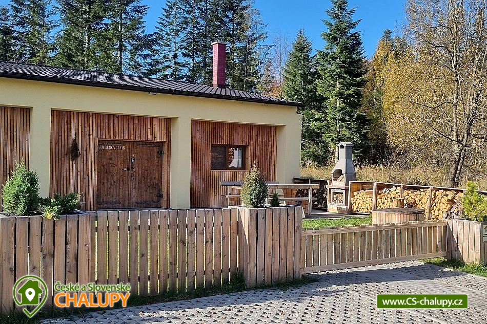 Mountain Cottage Mezi parezy is located in the village of Mikulovice in the middle of the beautiful nature of the Jeseníky Protected Area. You will enjoy complete privacy, proximity to the forest, pure nature, peace and clean air. You can also look forward to relaxing in the sauna or swimming in the outdoor pool. The cottage offers accommodation in one apartment for 6 people, with a total of 5 fixed beds in two bedrooms and one extra bed in the form of a sofa bed in the living room. The first bedroom has a double bed. The second bedroom has two single beds and it is possible to add another full bed by arrangement. The one-story cottage is entered through the hallway and vestibule. For social moments, there is a living room with a fireplace, a sofa with a table made of real solid wood, a smart TV, a dining room and a fully equipped kitchen (ceramic hob, dishwasher, sink, fridge with freezer, Tchibo capsule coffee machine, microwave, kettle, toaster, dishes - plates of all sizes, bowls, glasses, wine glasses, mugs, saucepans, pans, cutlery, as well as detergents and dish towels). The room also includes a library and board games are available for rent. WIFI internet connection is available throughout the building. The sanitary facilities include one spacious wellness bathroom with a walk-in shower, infrared sauna, bidet and toilet. Heating is provided by a fireplace and electric heaters. The bathroom is heated by underfloor heating and an electric heating ladder is available. In addition to the space of your own apartment, there is a central common room in the building used for various physical activities - e.g. exercising, dancing or playing ping-pong. Darts are also available. Outside, there is a terrace with a parasol, a garden fireplace and a fire pit. You can also relax in a deck chair. In warm weather, there is an outdoor pool. Children in the garden will appreciate the children's corner with a sandbox. On the manicured lawn, you can play petanque, badminton, small football with children and other outdoor sports. The enclosed area in front of the cottage ensures safety for children and pets. Parking is available directly at the property. A maintained forest asphalt path leads to the cottage. In the vicinity of the cottage, there is the possibility of hiking, cycling, swimming, mushroom picking, skiing and cross-country skiing. Swimming options include: Žulová quarry - Brankopy, Zlaté Jezero, Česká Ves swimming pool, Jeseník swimming pool - Priessnitz, Jeseník swimming pool, etc. There are nearby ski resorts: Ski Resort U Pekina - Dolní Údolí, Ski Resort Na Smrťáku, Jeseník - Lázně and others. For trips in the area, the Zlatokopecký open-air museum, Zlatý chlum, Rejvíz, Zlaté Hory or Jeseník spa are attractive. We look forward to seeing you here.