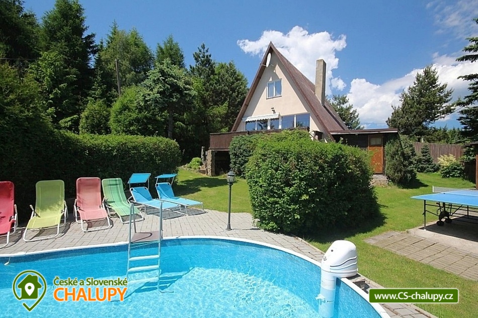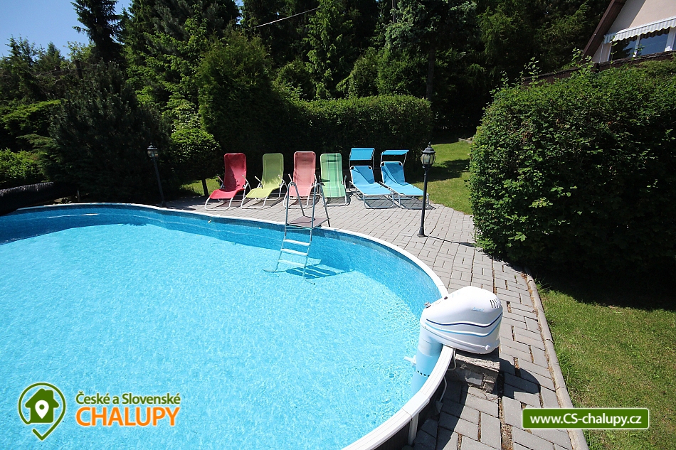 Chata s bazénem a wellness (sauna a vířivka) v rekreační oblasti u lesa nedaleko vrchu jedlová - Krušné hory. Kapacita chaty je až 6 osob ve 3 ložnicích. V přízemí se nachází obývací pokoj s posezením, krbem, TV + SAT, rádiem a jídelním koutem. K dispozici vybavená kuchyně (elektrický sporák s troubou, mikrovlnná trouba, lednička, mrazák, kávovar, překapávač, toustovač, nádobí, dětská jídelní stolička), dvě předsíně, krytá a otevřená terasa s markýzou. V přízemí dále koupelna se sprchovým koutem, WC a automatickou pračkou a sušičkou. V patře jsou tři ložnice po dvou lůžkách. V každé ložnici je TV . V objektu je možné využít dětskou postýlku . Vytápění je zajištěno elektrickými přímotopy a krbem na dřevo. V chatě je možnost bezdrátového připojení k internetu. Na zahradě je tepelným čerpadlem vyhřívaný bazén 8 x 4 x 1,2 m s protiproudem a lehátky na opalování, zastřešený whirpool (vyhřívaný relaxační vířivý masážní bazén až pro čtyři osoby - celoroční využití) a finská sauna. Vířivku pro Vás připravujeme vždy čistou a ohřátou, proto je nutno hlásit ji předem, zahradní nábytek na terase, stolní tenis, pergola s grilem a ohništěm a sauna. Parkování u objektu. V létě jsou v okolí udržované cyklistické trasy a trasy pro pěší turistiku. Od chaty 100m je restaurace. V blízkém okolí (cca 4 km) se nachází horský hotel Lesná, kde je možnost jízdy na koních a prohlídka muzea (Krušnohorský lidový dům). V zimě je pro milovníky bílé stopy upravovaná "Krušnohorská bílá stopa". Možnosti koupání v okolí: přehrada Jirkov, přehrada Kyjice, vodní nádrž Matylda, přehrada Fláje, Rudolický rybník, Novomlýnský rybník, rybník Brandov, Kamencové jezero a aquapark Chomutov. Dostupná lyžařská střediska: běžecký skiareál Lesná, sjezdové lyžování Pyšná, Mezihoří, Hora Svaté Kateřiny, Kliny, Plešivec a Klínovec. Další doporučené výlety do okolí: okolní horské vrcholy (kolem 900 m), Karlovy Vary 67 km, lázně Jáchymov, Klínovec 60 km (1244 m), České středohoří 15 km. Řeka Ohře - vodní turistika a půjčovny lodí.