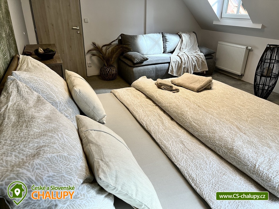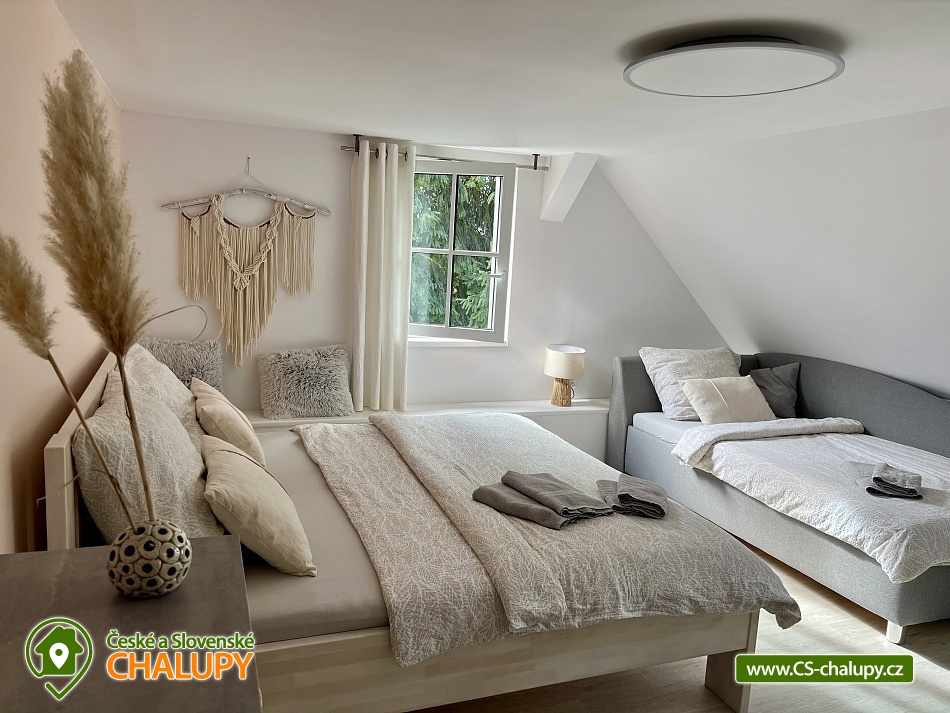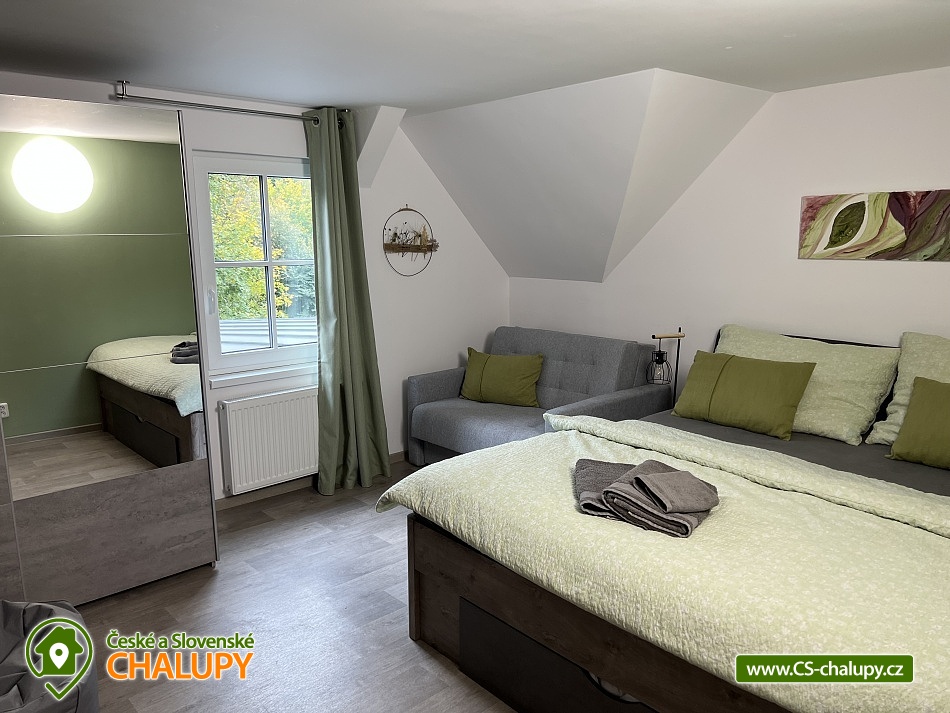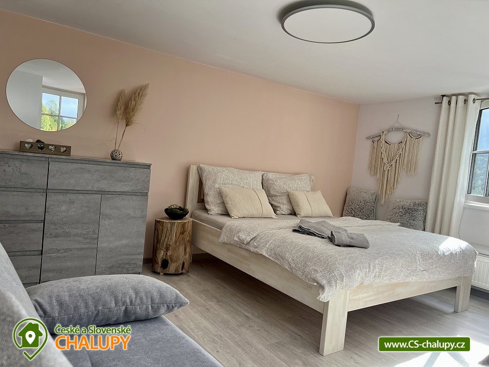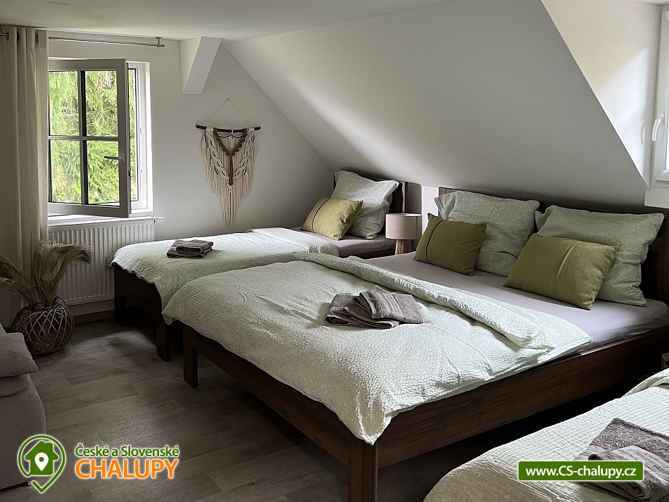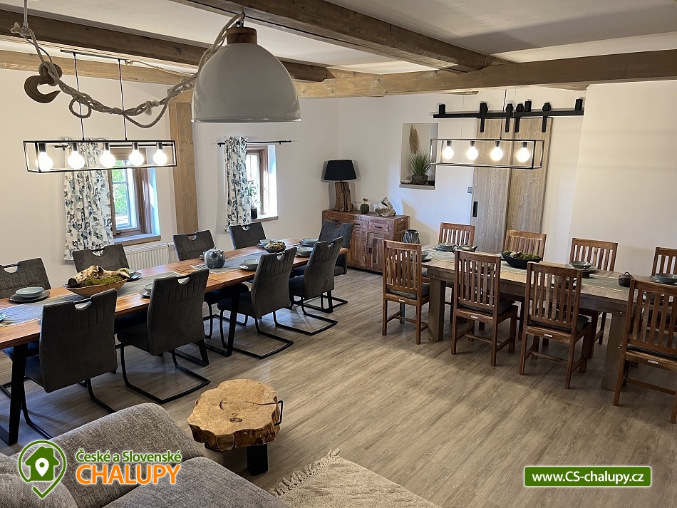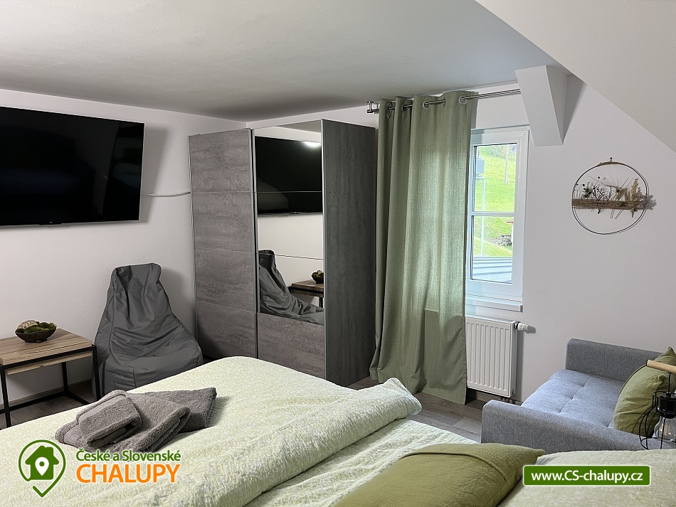 Wellness horská chata s bazénem se nachází na okraji malé obce Český Šumburk na pomezí Krkonoš a Jizerských hor - lokalita obcí Příchovice a Kořenov. Na terase u chaty je pro Vás připravený vyhřívaný bazén se slanou vodou a posezením, odkud je kouzelný výhled do horského údolí a nedalekých lesů. Možnost využití venkovního vířivého sudu a vnitřní infrasauny a vířivky. Chata nabízí ubytování pro až 24 osob v celkem 6 pokojích. Pokoje jsou v prvním patře, každé dva pokoje mají vždy společnou koupelnu a toaletu plus jeden samostatný záchod je na chodbě. Kuchyně je plně vybavená s plynovým sporákem, velkou troubou, mikrovlnkou, americkou lednicí, a druhá lednice s mrazákem na chodbě, varná konvice, espresso, toustovač. Posezení u stolu v kuchyni je pro 12 osob a dalších 8 je ve společenské místnosti s televizí a krbem.Větší společenská místnost je na vyžádání a vejde se do ní 20 osob a další židle se dají přidat z menší společenské místnosti ,třeba na teambuilding a větší oslavy. Chata je v zimě vytápěna tepelným čerpadlem. Ve spodní části zahrady vás okouzlí velké prostorné posezení s grilem a ohništěm. Pro děti jsou připraveny houpačky, globus kolotoč a velká obdélníková trampolína zapuštěná v zemi s rozlehlou zahradou a loukou. K dispozici je také velké hřiště na volejbal nebo fotbal, dále stolní tenis, badminton,kuželky,petanque.OKOLÍ: V Příchovicích je krásná naučná stezka Járy Cimrmana U čápa s restaurací a hřištěm, opodál minigolf 5 min autem. Poblíž ve vsi Zlatá Olešnice se nachází koupaliště s beachvolejbalovým hřištěm a hřištěm pro děti. V obci Kořenov je možné využít bowling 10 min autem. Lanové centrum Harrachov 13 min autem, Bobová dráha Harrachov, Vodopády Jedlové, Rozhledna Bramberk, Mumlavský vodopád a Rozhledna Štěpánka. V Tanvaldu je úžasná pekárna, cukrárna, pizzerie, kebab. V zimě je v dosahu 3km sjezdovka v Příchovicích U čápa, 3km Rejdice s vyžitím pro snowboardy, ski areál Rokytnice nad Jizerou, Harrachov a Tanvaldský Špičák vzdálený 20 km. Trasa pro běžkaře je u rozhledny Štěpánka (4 km). Těšíme se na Vás u nás.