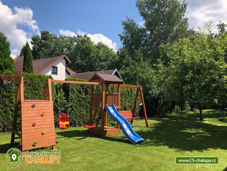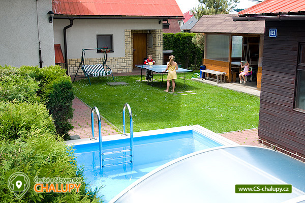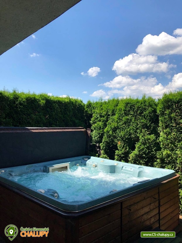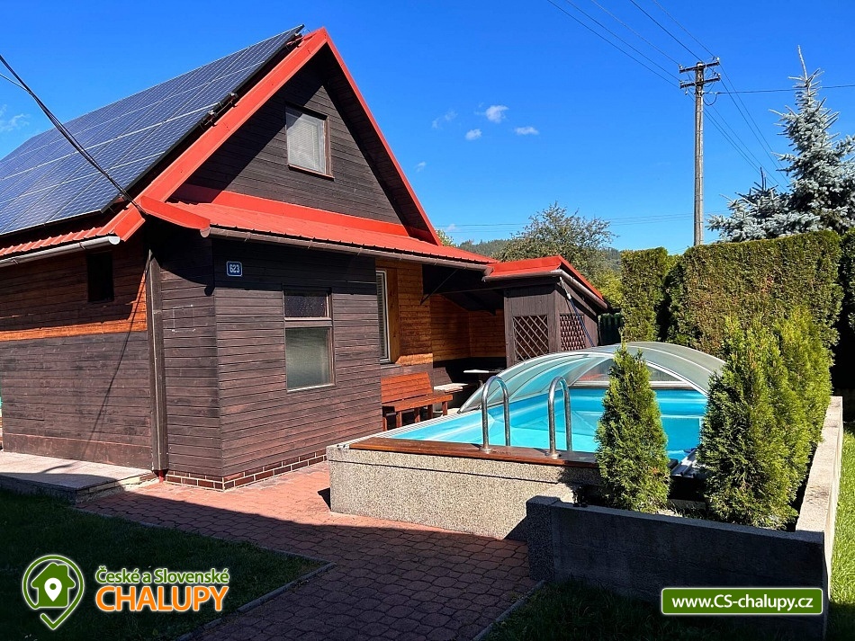 Chata s bazénem a wellness (sauna a vířivka) u Rožnovské Bečvy na Valašsku - Beskydy. Chata na zahradě u rekreačního domu je ideálním místem pro strávení aktivní rodinné dovolené. Celá oblast CHKO Moravskoslezské Beskydy a blízká střediska Pustevny, Hutisko Solanec jsou zárukou bohatého programu pro celou dovolenou během celého roku. Chata má dvě podlaží. V přízemí je chodbička s věšáky, botníkem, koupelna (WC, sprchový kout, umyvadlo, zrcadlo), kompletně vybavená obytná kuchyně s jídelnou a krbem. Do podkroví vedou nekryté schody. V podkroví je ložnice 2 lůžka, šatní skříně, skříňky a průchozí ložnice 2 lůžka se schodištěm, skříňky, SAT TV. U chaty je venkovní veranda s posezením. K dispozici je i Wi-fi připojení zdarma. Pro všechny ubytované slouží prostory v suterénu domu - společenská místnost (sedací souprava, TV, el. šipky, billiard), sauna s ochlazovací kádí. Hostům je k dispozici i zahrada - altán s posezením a krbem, dětské pískoviště, dětská skluzavka, 2 houpačky, stolní tenis, trampolína, venkovní bazén, celoročně využitelná vířivka (vše společné i pro sousední apartmány). Celá oblast CHKO Moravskoslezské Beskydy a blízká střediska Pustevny, Hutisko Solanec jsou zárukou bohatého programu pro celou dovolenou během celého roku. Valašské muzeum v přírodě v Rožnově pod Radhoštěm (cca 10 km). Muzeum Tatra Kopřivnice v Kopřivnici (cca 25 km). Horské sedlo Pustevny lyžařské a turistické centrum (cca 10 km). Možnosti koupání: přehrada Horní Bečva, vodní nádrž Karolinka (Stanovnice), vodní nádrž Šance, přehrada Bystřička, koupaliště Hutisko-Solanec. Blízká lyžařská střediska: Pod Soláněm, Soláň, Rališka, Solisko, Soláň - Bzové, Mečová, Soláň sedlo, Kubiška, Pustevny, Radhošť - Pod kaplí.