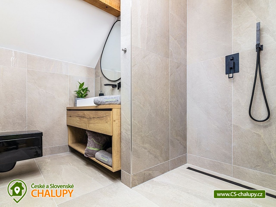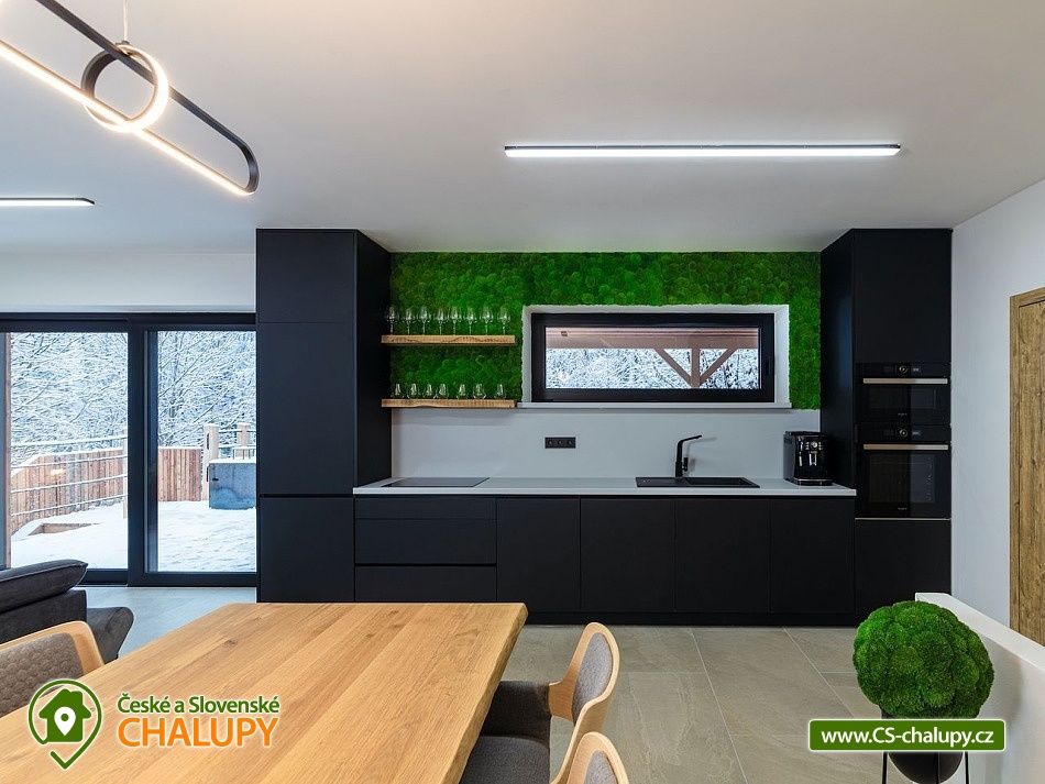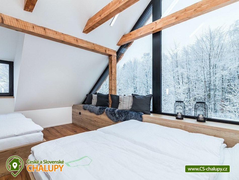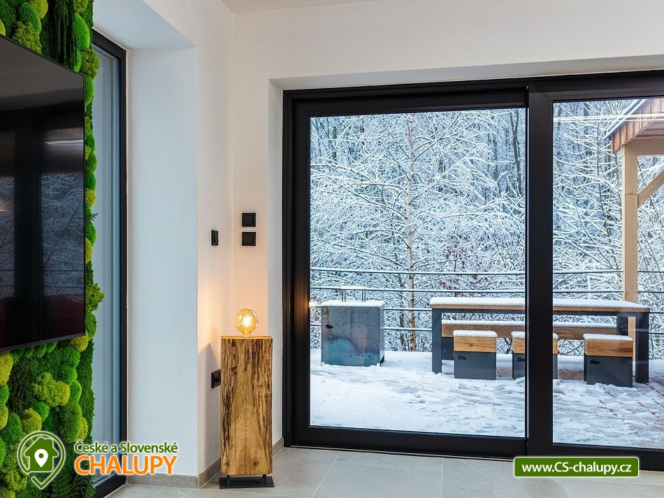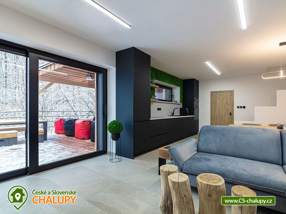 The cottage that exists - In the mountains - Čeladná is located in the beautiful Beskydy mountains, from where you can go on mountain trips, play golf, ride a bike or go skiing. You can look forward to a terrace with an outdoor cinema equipped with comfortable seats or to relax in the hot tub. The cottage offers accommodation for 6 people in two bedrooms with a beautiful view of nature. Both bedrooms are located on the first floor together with a toilet and a bathroom with a shower. In the first bedroom there are two double beds and a travel cot, which we are happy to prepare for you on request. Another bedroom offers a cozy place for two with a large double bed. On the ground floor you will find a kitchen with all the necessary dishes and utensils for cooking - convection oven, microwave, kettle, dishwasher, built-in refrigerator and DeLonghi coffee machine for bean coffee. The second bathroom with a shower, two sinks and a separate toilet can be found on the ground floor. Towels and bathrobes are always ready for you. A spacious living room with a fireplace and moss wall, which are the dominant feature of the entire space, is used for spending time together. The entire building has underfloor heating with the possibility of setting the temperature in each room separately. The Cottage also includes a washing machine and dryer, which are fully at your disposal. The terrace is fully connected to the living room and in the summer months you can connect it to the outside area. You can easily reach this cottage by car (chains are required in winter, however). We have provided parking for you in front of the cottage for 4 cars. Outside, you can spend your free time on the covered terrace with seating and a wood-fired garden grill, which you always have ready. The outdoor cinema, which you can watch from the comfort of the seats or directly from the hot tub, has high-quality sound and you can watch your favorite movie or listen to music here. There is a portable fire pit in the garden, where you can sit by the fire in the evening and roast dumplings. In the vicinity of the building there is a golf course, riding stables, cycle paths, hiking trails, where we recommend "Following the Bear's Paws" - here you will find marked trails and circuits under the highest peaks of the Beskydy Mountains. Swimming is possible here - the Olešná dam, the Ostravice - Sepetná swimming pool, the Frýdlant nad Ostravicí swimming pool, the Frenštát pod Radhoštěm water park. In winter, you will appreciate the possibility of skiing on the SKI Bílá or SkiPark Gruň slopes or the cross-country tracks on the Lysohorská cross-country highway. We look forward to seeing you here.
