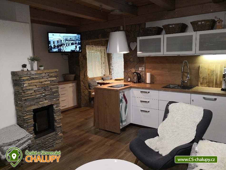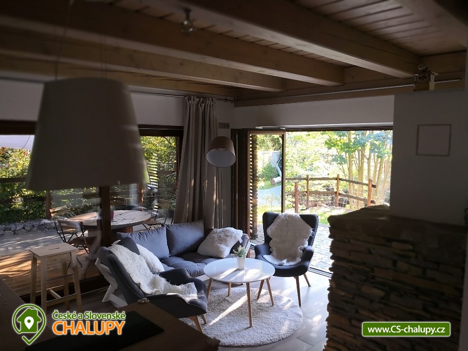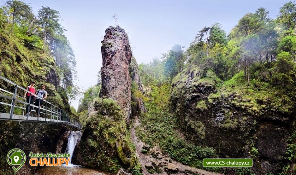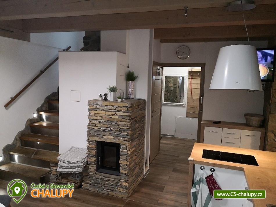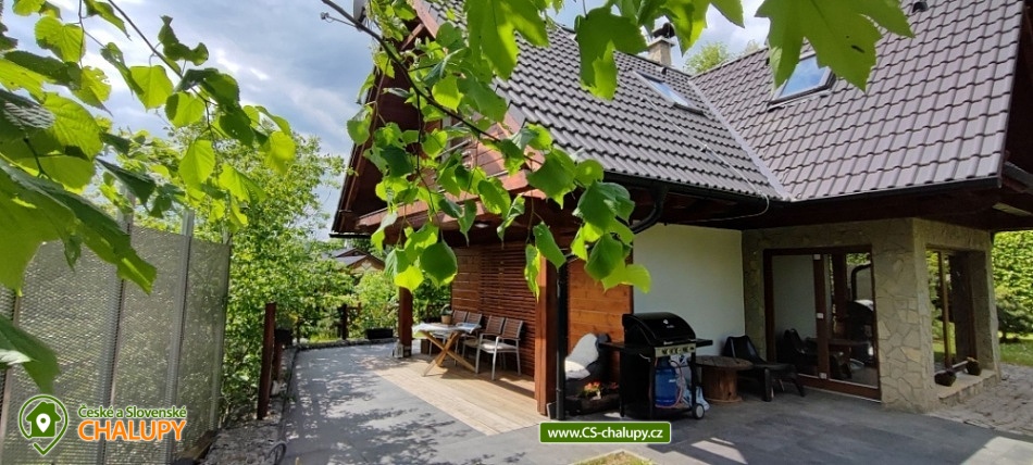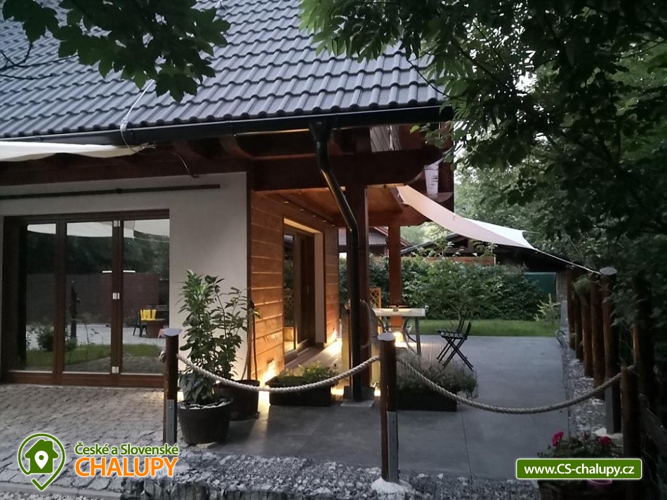 Chalúpka Jánošíkové diery - Terchová - accommodation Malá Fatra. Our cottage Jánošíkové diery is located in the village of Terchová, in the most attractive part of Biely Potok, directly on the hiking trails to Jánošíkové díry. You enter the cottage through a barrier-free entrance to the hallway - sliding doors lead to the living area with fireplace and LED TV, connected to the kitchen and dining area. There is a separate toilet at the entrance. The ground floor is connected to the exterior with three terraces on the east, south and west sides. Upstairs are two separate bedrooms and a bathroom with toilet. The kitchen equipment consists of dishes and electrical appliances (fridge with freezer, microwave with electric oven, induction hob, dishwasher). The building has WiFi internet connection. The land around the cottage is fenced and offers parking for 2 cars. In the beautiful nature, in every season you can go on an easier or more demanding hike or ventilate your bikes. You will conquer Velký Rozsutec, Jánošíkovy díry, Bělské skály or you can enjoy the view from the lookout tower. You can test your fitness in the Dino Adventure Rope Park. Your children will get to know different animals in the Mini Zoo - Terchovská zahrada. Lovers of winter sports can ski on the slopes of the ski resorts Ski Gavurky or Vrátna Free Time Zone.
