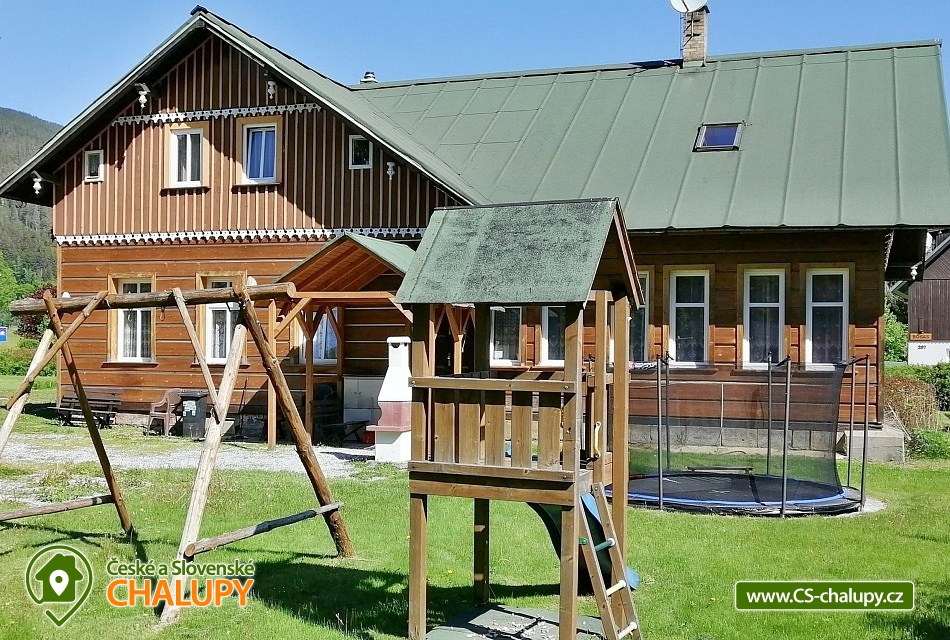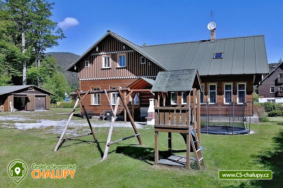 Cottage Švýcarský Dvůr - Janské Lázně - Krkonoše. Our mountain cottage is located in a quiet area of Duncan, in the picturesque Janské Lázně, only 600 m from the city center. The location at the foot of Černá hora provides a breathtaking view of Černá hora and Svetla hora, which gives the cottage a unique charm. The cottage is rented as a whole and offers accommodation for 30 people in 8 bedrooms (2x three-bed, 2x double, 2x four-bed, 1x six-bed and 1 six-bed apartment with its own bathroom and kitchenette). There is a common room with dining tables, sofa, TV, fireplace and two fully equipped kitchen units (2x fridge, freezer, 2x combination stove, microwave oven, kettle, dishwasher and dishes). The social facilities include a total of 8 bathrooms with a sink, shower and toilet. The four-bed and six-bed bedroom has its own bathroom. Wi-Fi connection and ski and bike storage available. The building is centrally heated, the boiler room is located in the basement of the cottage. The owner comes to the building every day and takes care of the heating. Guests can use the fireplace in the common room. Parking possible directly in front of the cottage for 10 cars. The accommodation includes a spacious garden with a grill, fireplace, volleyball court, children's playground and trampoline. Janské Lázně is an ideal place for a quiet winter and summer vacation. Among the biggest attractions of the region is Černá hora (1,299 m above sea level). You can go to its top on foot, by bike, or you can take a modern eight-seater cable car. Janské Lázně is also an excellent starting point for trips to interesting places in the Giant Mountains, which include Pec pod Sněžkou, Adršpašské skály, Pramen Elbe or the ZOO in Dvůr Králové nad Labem. Other tips for trips: the Blue Stones rock lookout, the Krkonoše Treetop Trail, Sněžka, the Rope Park in Janské Lázně, the Spa Colonnade in Janské Lázně or Bald's World Mladá Buky. In winter, skiers and snowboarders can enjoy several kilometers of top-quality ski slopes, for example: Skiresort Černá hora, Janské Lázně - Košťálka, Svoboda nad Úpou, Černá hora - Černý Důl, Pec pod Sněžkou, Třešňovka - Horní Maršov. Cross-country skiers can also enjoy themselves in the surroundings of Janské Lázně, as there are more than 50 km of maintained cross-country trails nearby. The 3.5 km long Černó Horská sledding route is also an attractive option for winter fun. Swimming options: aqua center Jánské Lázně, Retro park Sejfy swimming pool, Trutnov - Pekelský pond, Čistá swimming pool, Dolce pond, Trutnov pool. We look forward to seeing you here.