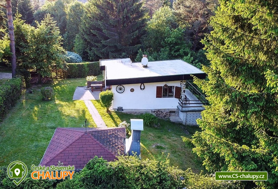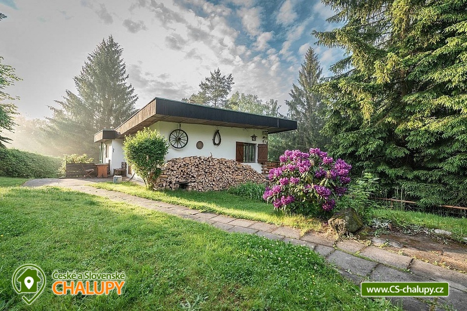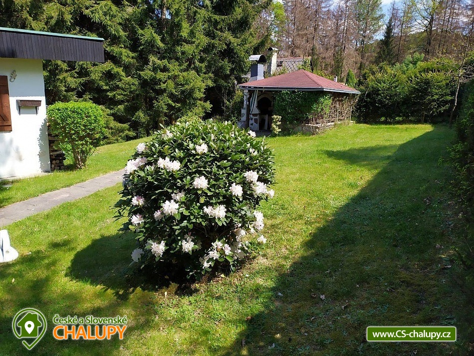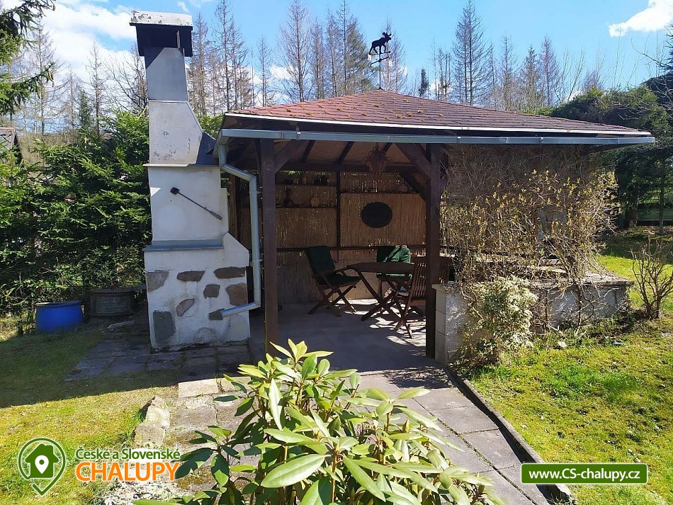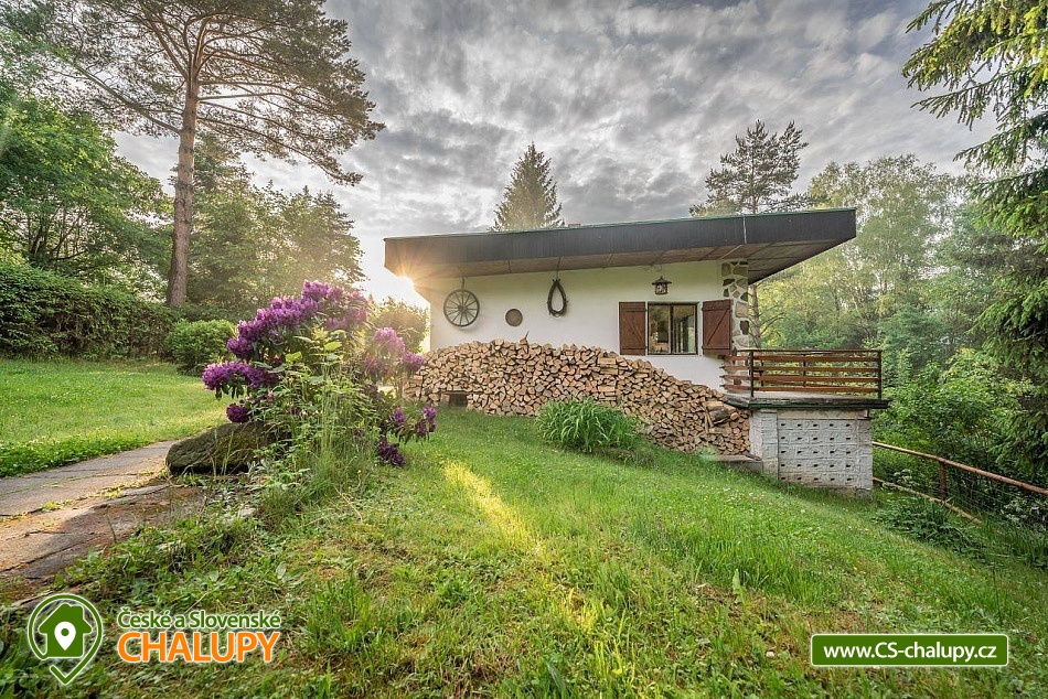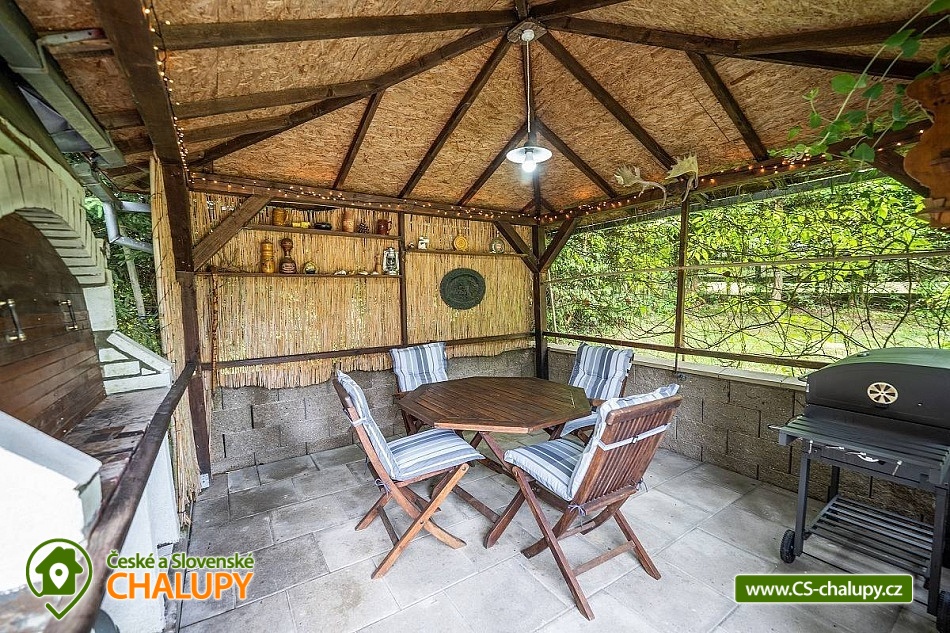 „Romantická chata s vlastní zahradou, terasou, altánkem s grilem.“