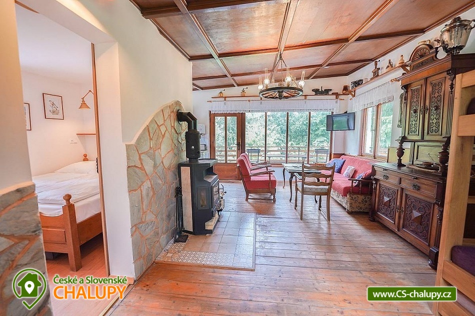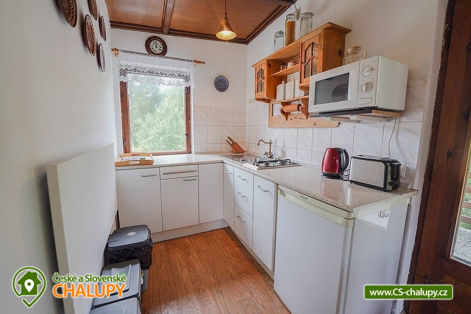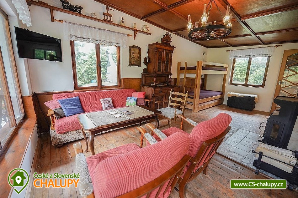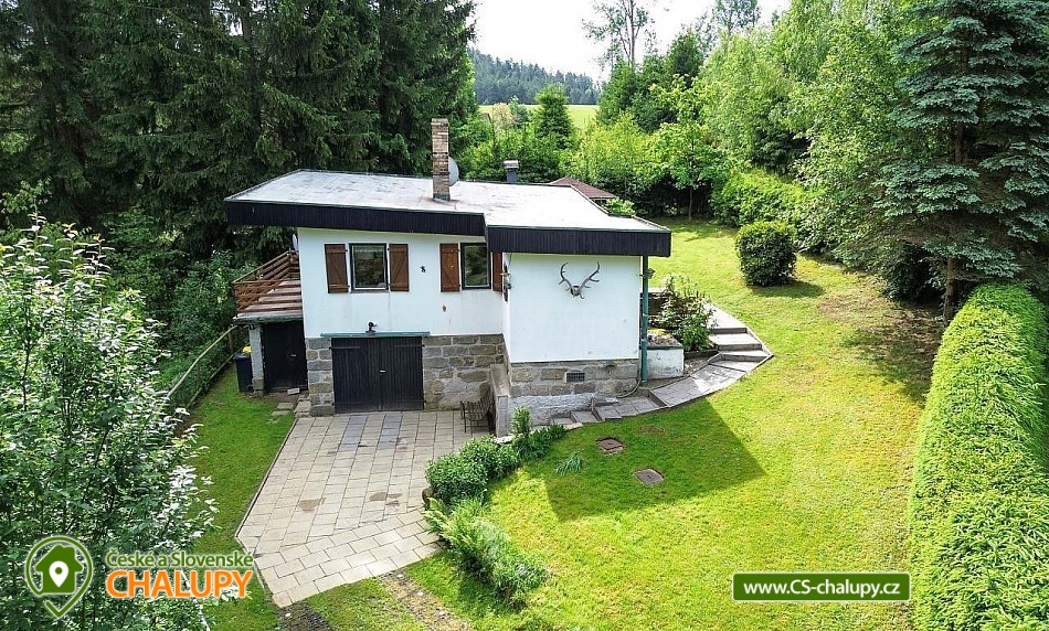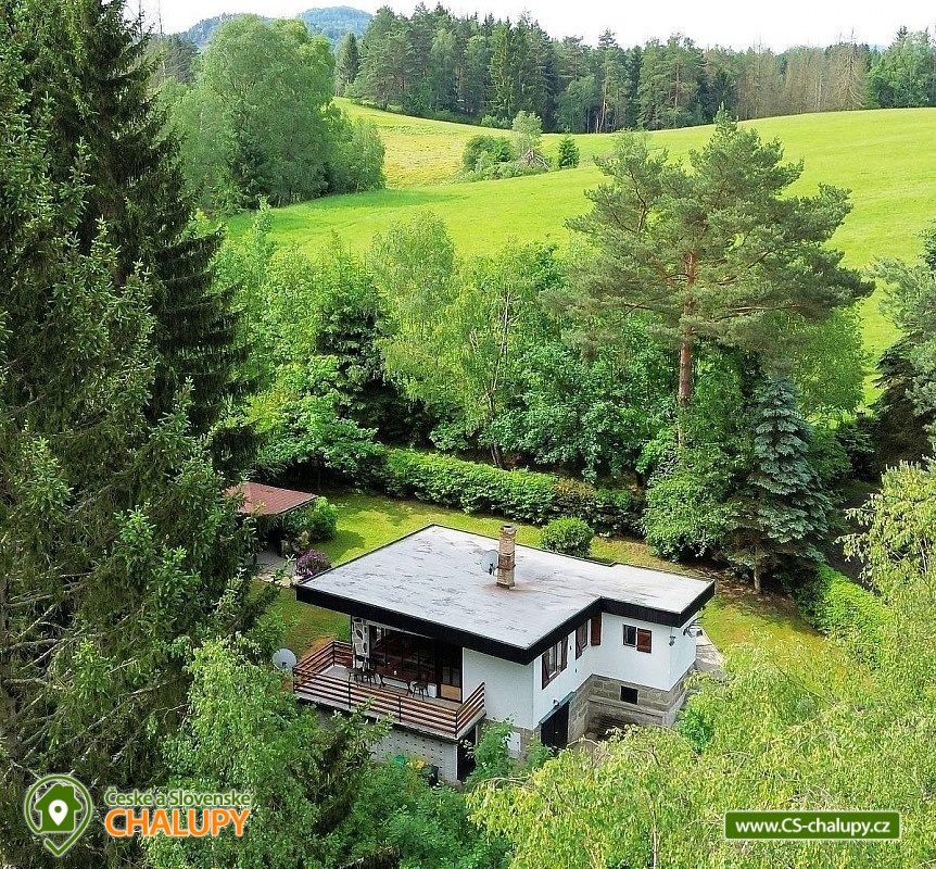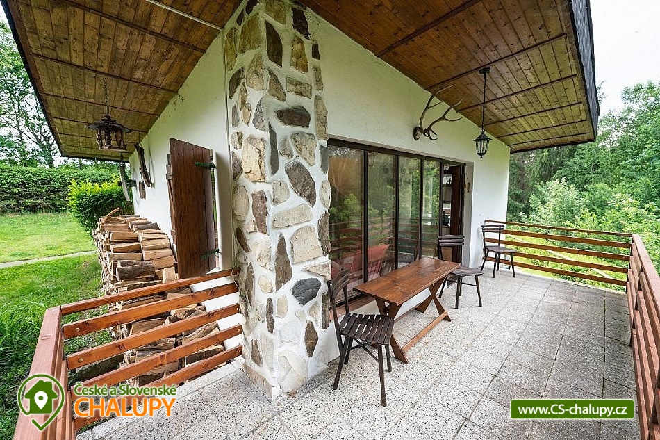 „Romantická chata s vlastní zahradou, terasou, altánkem s grilem.“