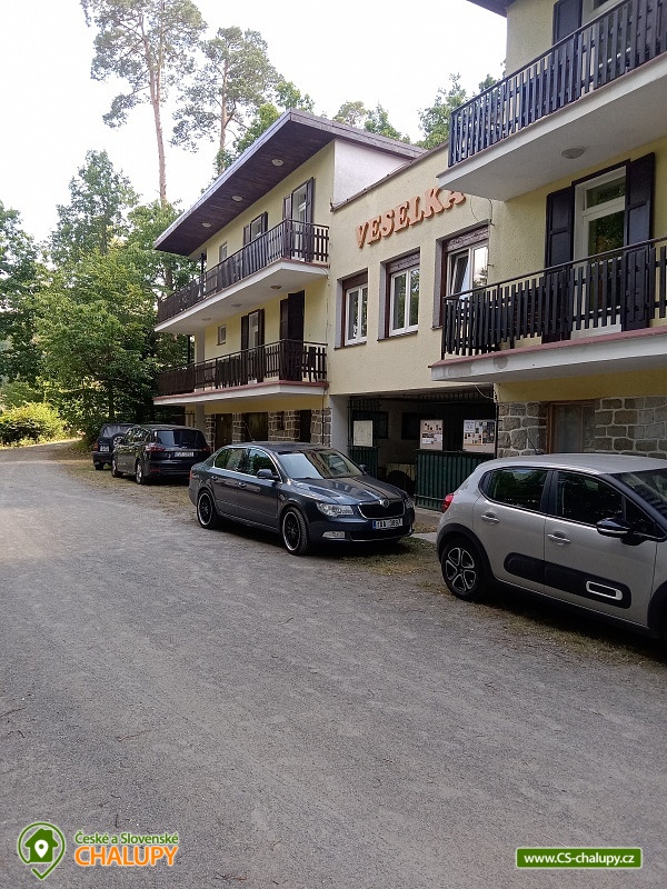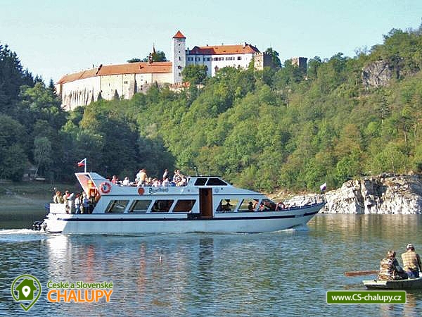 Apartmánová Chata Chmelnice - Vranovská přehrada. Ubytování apartmány vodní nádrž Vranov. Chata je umístěna ve vyhlášené rekreační oblasti Chmelnice, má dva 5 lůžkové a dva 4 lůžkové apartmány s vlastním soc. zázemím. Objekt možno pronajmout jako celek i jednotlivé apartmány samostatně. Na každém patře je vždy pouze 1 apartmán, takže je zaručeno vlastní soukromí. Všechny apartmány mají svůj soukromý vstup s balkonem. Každý apartmán má vlastní vchod a z obou stran ochoz, který zároveň slouží jako balkón přístupný ze všech místností. Apartmány sestávají z vybavené kuchyňky s el. sporákem s troubou, mikrovlnou troubou, rychlovarnou konvicí a nádobím pro ubytovaný počet hostů, koupelny se sprchovým koutem a WC, obývacího pokoje s posezením, ledničkou, televizí a ložnice s manželskou postelí a zbývajícími lůžky. Vytápění je zajištěno el. přímotopy. Přístup k domu je po asfaltové cestě, parkováni přímo u domu pro 4 auta. U objektu je dětské hřiště, pískoviště, houpačka, kuželky, pingpong stůl, ohniště, venkovní zastřešené posezení, gril. V zalesněném okolí si každý najde to svoje. Plavci i neplavci písčitou pláž s pozvolným vstupem do vody, rybáři ryby, houbaři houby, turisté a cyklisté svoje značené trasy, "žokejové" se mohou projet na koni v sousedství hradu Bítov a ti pohodlní se projedou výletní lodí třeba až na hráz nebo si jen tak odpočinou s rukama pod hlavou. Ke koupání, k nákupu nebo do restaurace je to coby kamenem dohodil. Stačí sejít 200m. Turistickou přitažlivost Vranovska zvyšuje také nemalý počet historických památek a objektů. Jedná se zejména o středověký obranný řetězec hradů podél řeky Dyje. Zícenina hradu Cornštejn (přímo naproti chatě Veselka), hrad Bítov (po vodě 2 km, po silnici 10 km), zámek Vranov (12 km), hrad Hardegg v Rakousku (25 km), zámek a kamenná přehrada v Jevišovicích (38 km), památky ve Znojmě (40 km) atd. Doporučujeme navštívit národní park Podyjí v úseku od Vranova po Znojmo. Dominantou Vranovska je přehradní nádrž. Hráz a hlavní přehradní jezero se nachází asi 1 km od centra Vranova nad Dyjí. Přehradní jezero je centrem rekreace a vodních sportů. Na své si zde přijdou milovníci windsurfingu a jachtingu. Vody nádrže jsou proslulé bohatstvím ryb.