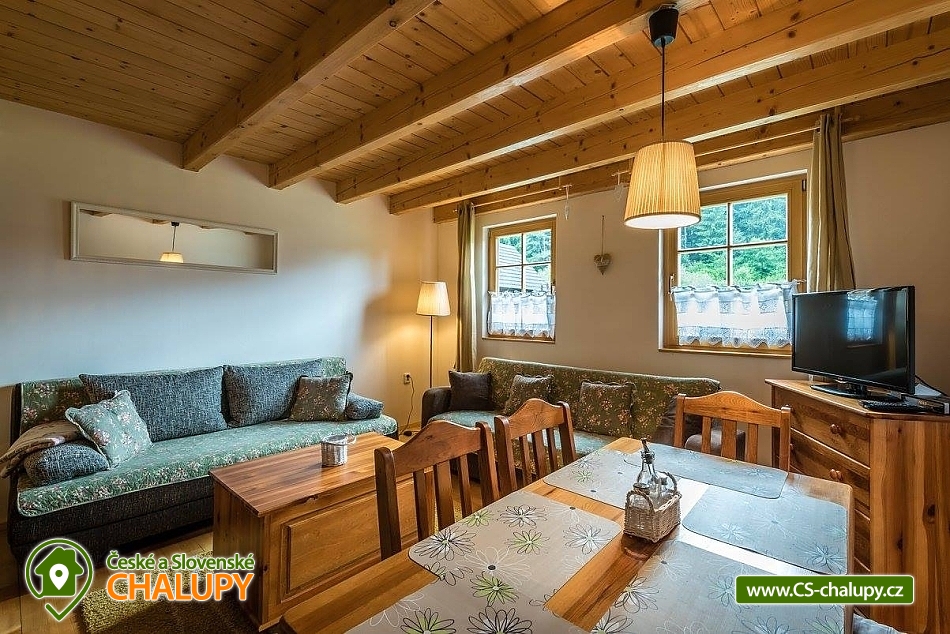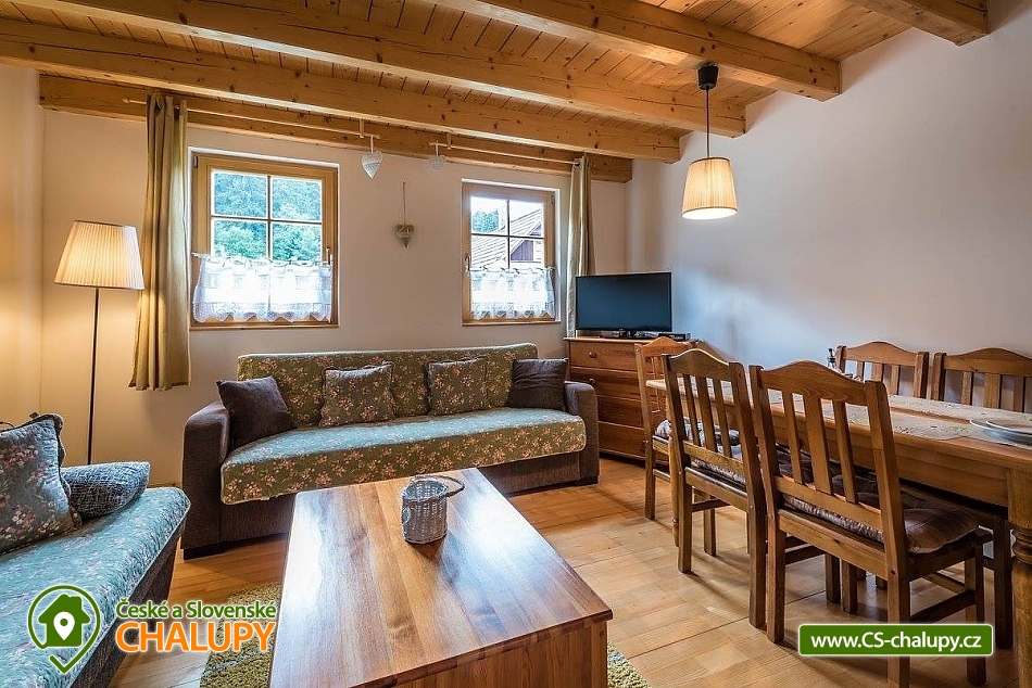 Chata Jánská dolina u termálního koupaliště Termal Ráj na Liptově nedaleko jezera Liptovská Mara. Chata je situována v klidném prostředí na okraji lesa - Překrásná okolní příroda Jánské doliny i celých Nízkých Tater nabízí hostům celoročně bohaté možnosti relaxu i aktivního odpočinku. Chata představuje stylovou dřevěničku, která disponuje celkovou kapacitou pro 6 až 8 osob. Díky své poloze výborná volba zejména pro ubytování rodin s dětmi. V přízemí dřevěnice je Vám k dispozici společenská místnost s krbem, LCD televizí se satelitem, CD přehrávačem a dvěma pohovkami, sloužícími pro přespání dvou osob. Využívat zde můžete také plně vybavenou kuchyňskou část, ve které si snadno a rychle připravíte vlastní chutná jídla. Součástí přízemí dřevěnice je zároveň i koupelna se sprchovým koutem a toaletou. Schodištěm se dostanete do patra objektu, kde jsou pro Vás připraveny dvě 3-lůžkové ložnice s manželskou postelí a jednou samostatnou postelí. Jedna z ložnic je dovybavena televizorem s DVD přehrávačem, u druhé je Vám k dispozici balkon. U dřevěnice nechybí ani venkovní posezení s možností grilování, opékání a vaření kotlíkového guláše. Parkování Vašich aut je možné přímo při ubytování. Věnovat se zde můžete podnikání řady příjemných pěších procházek, horských a cyklistických túr. Výborné podmínky zde mají vytvořeny i milovníci houbaření, sklizně lesních plodů či příznivci vodních sportů na blízké Liptovské Maře. Kromě skvělého relaxu v místním termálním koupališti Termal Raj si výborně odpočinete i při návštěvě nedalekého aquaparku Tatralandia u Liptovského Mikuláše. V blízkém okolí chaty se rozhodně vyplatí navštívit i okouzlující Stanišovskou jeskyni či dvojici známých Demänovských jeskyní, které Vám poodhalí krásu podzemního světa. V zimním období si na svazích blízkého lyžařského střediska Ski Javorovica (ve vzdálenosti 300 metrů) vychutnáte výbornou rodinnou lyžovačku. Daleko to však nebudete mít ani ke špičkovému lyžařskému komplexu Jasná - Nízké Tatry, které poskytuje celkem až téměř 50 km sjezdových tratí. Těšíme se na vaši návštěvu.