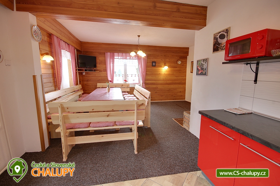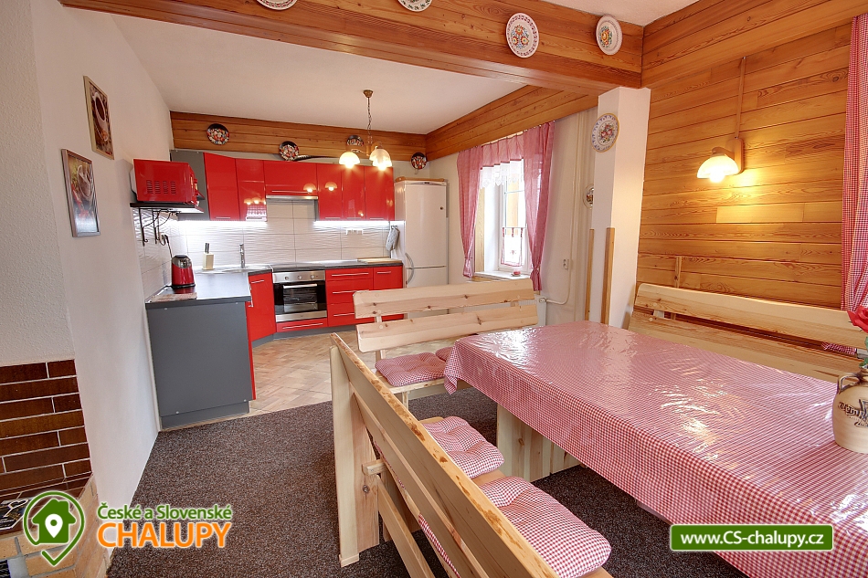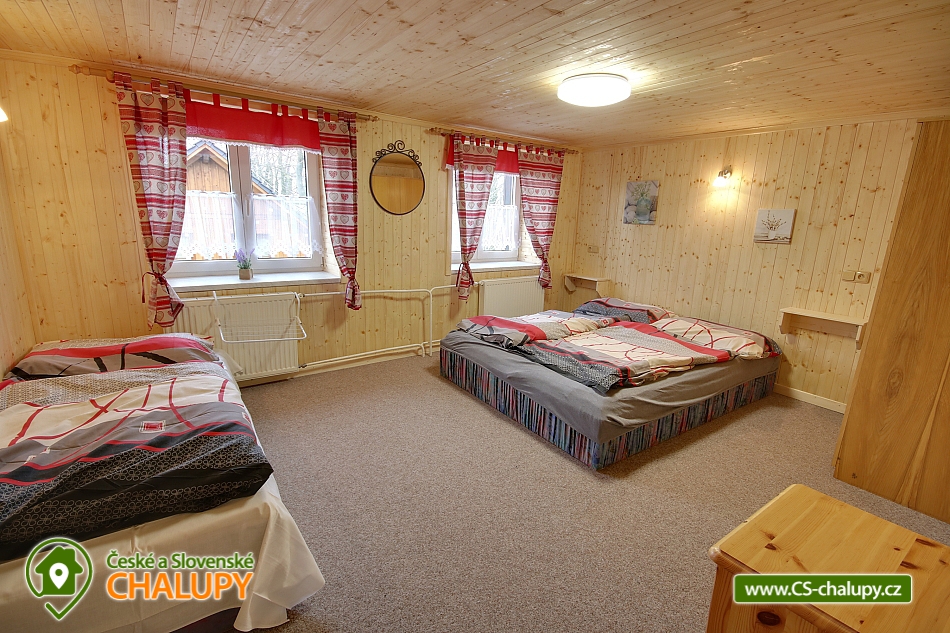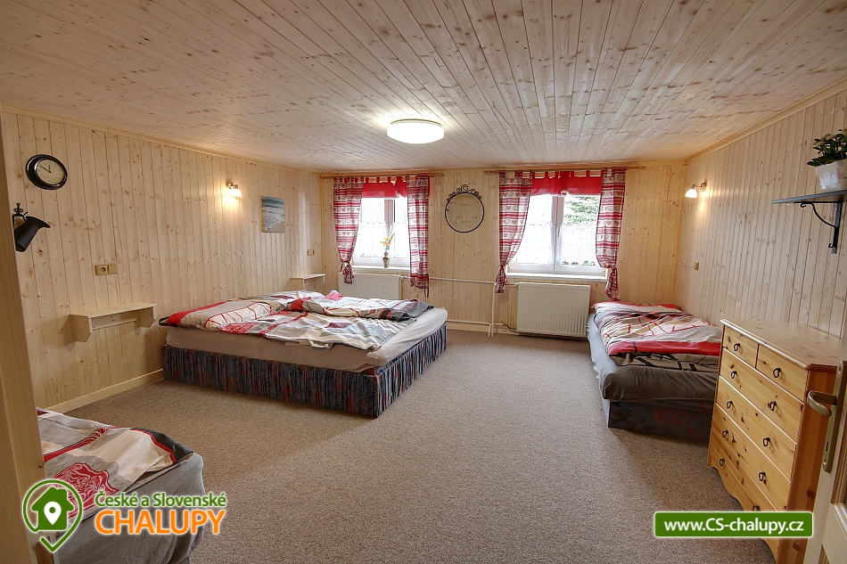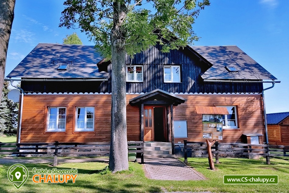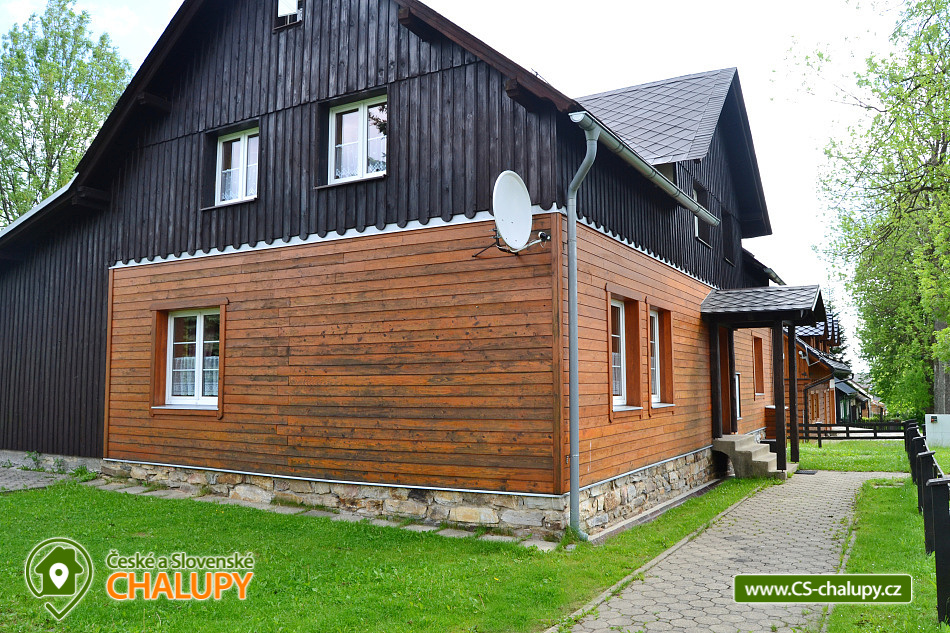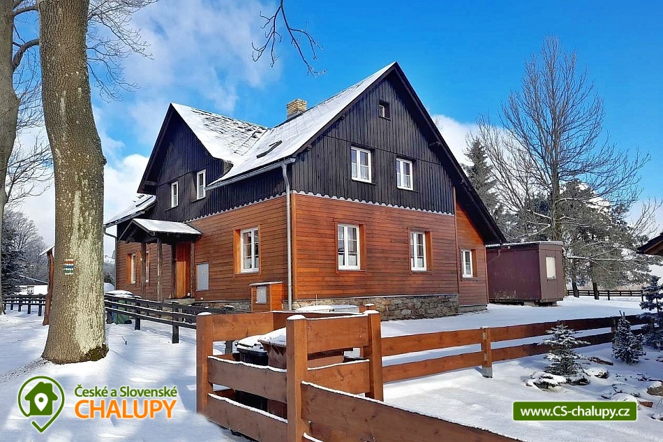 Cottage Sýkorka - Rejvíz. Rental of cottage Sýkorka Jeseníky, Zlaté Hory. Rental cottage district Jeseník. Sýkorka chalet is located in the National Nature Reserve Rejvíz, which is rightly named as the pearl of the Jeseníky mountain range. On the ground floor of a comfortable cottage you will find a fully equipped kitchen (ceramic hob, oven, 2x fridge, electric kettle, microwave oven), dining table with benches, TV + SAT, 2x bathroom with shower, 2x WC, clothes dryer and Finnish sauna 4 people. There are also two 3-bed bedrooms. On the upper floor there is a sitting room, a total of 3x bedroom: 1x 4-bed (double bed and 2x single bed) and 2x 3-bed (always double bed and single bed) and sanitary facility consisting of 2 bathrooms with shower and 3x toilet Bathroom and 5x toilet). Cots and Wi-Fi are available. The heating of the building is provided by an electric automatic boiler with a heat distribution to radiators. The cottage is on a partly fenced plot with fireplace with sitting, outdoor grill, sitting, storage room for sports equipment, swings and slide. Parking is available directly at the property. With its location, the cottage is an ideal place for hiking, cycling and winter sports.