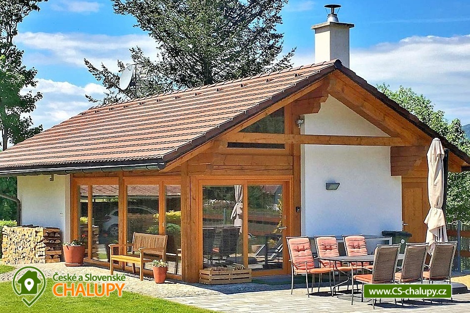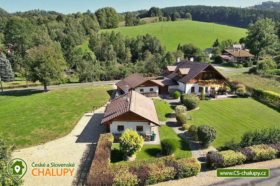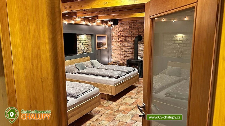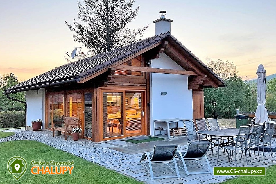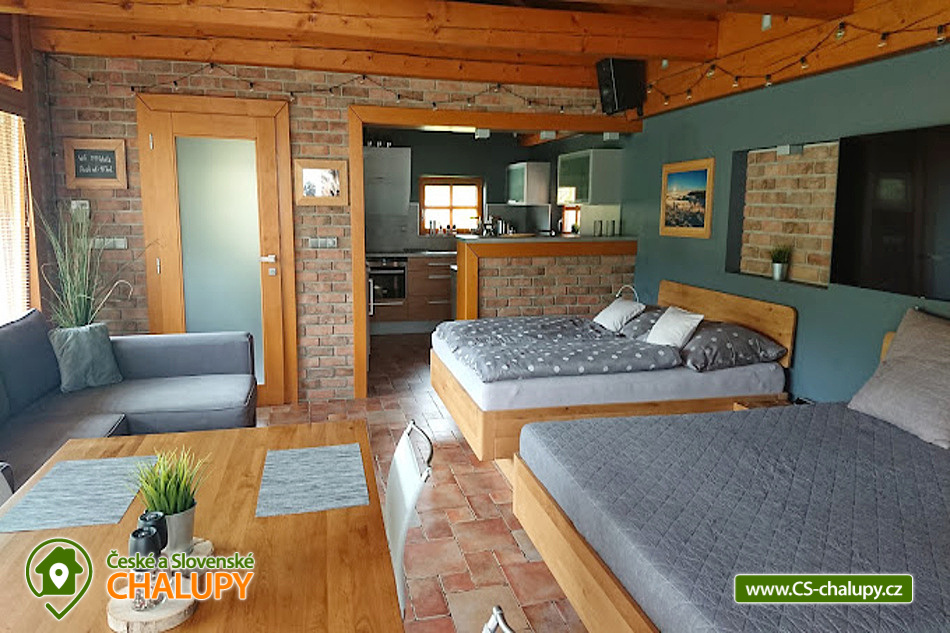 The comfortable Chata pod Rejvízem is located in the very heart of the Jeseníky Mountains in a quiet location Dětřichov, approximately 2 km from the spa town of Jeseník, where you can visit the famous Priessnitz healing spa. The cottage is part of a garden through which the Vrchovištní stream flows. Nearby you can go on a trip to the Rejvíz National Nature Reserve, which is famous for the Great Moss Lake. Chata pod Rejvízem, with a total living area of 45m2, offers accommodation for 4 people. The cottage has one main living room, which includes two double beds 200x180cm. The room also has a sofa bed 140x200cm (extra bed available upon request), a dining table with chairs for 4 people, LED Smart TV (satellite, Netflix, YouTube), a storage cupboard for clothes, a radio, a fireplace and a fully equipped kitchen - all utensils and cooking utensils, a hob, extractor hood, a combination oven (electric, microwave, grill), a fridge, a filter coffee machine, a Nespresso coffee machine, a kettle, a toaster, a toaster and a beer tap. A cot is available for rent. Part of the room consists of panoramic windows with a beautiful view of the garden. The sanitary facilities include one separate bathroom with a sink, a shower, a toilet and an electric towel ladder. Heating is provided by an indoor fireplace and underfloor heating. WIFI internet access is available throughout the building. Directly from the living area you can enter the outdoor terrace with seating and parasol, deck chairs, barbecue and garden shower. There is a fireplace. Safe storage for bicycles, skis and sports equipment is provided. Parking is available directly at the property. In the vicinity of the cottage there is the possibility of hiking, cycling, swimming, mushroom picking, fishing, skiing and cross-country skiing. There is a riding stable, tennis courts and a golf course nearby. Swimming options include: Jeseník - Priessnitz swimming pool, Jeseník swimming pool, Česká Ves swimming pool, Domašov - Bělá pod Pradědem swimming pool, Žulová quarry - Brankopy, etc. There are nearby ski resorts: Na Smrťáku Ski Resort, Jeseník - Lázně, Lázeňský vrch, Miroslav - Lipová Lázně and others. Other trips in the area include the Lipovské stezky, Rychlebské stezky - the mecca of trail cycling in the Czech Republic, Praděd - the highest mountain in the Jeseníky Mountains, Křížový vrch, the Zlatý Chlum lookout tower, Čertovy kameny, the Dlouhé Stráně pumped-storage hydroelectric power plant, the Velké Losiny paper mill, the Horní Lipová forest bar, the Na Pomezí Cave or Karlova Studánka. We look forward to seeing you there.