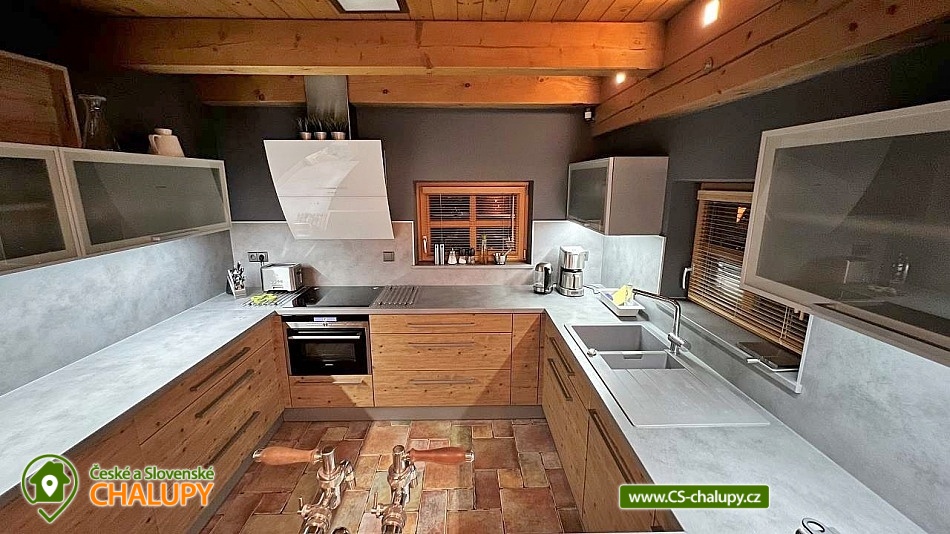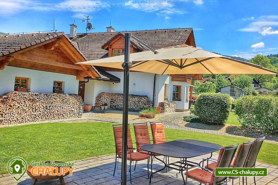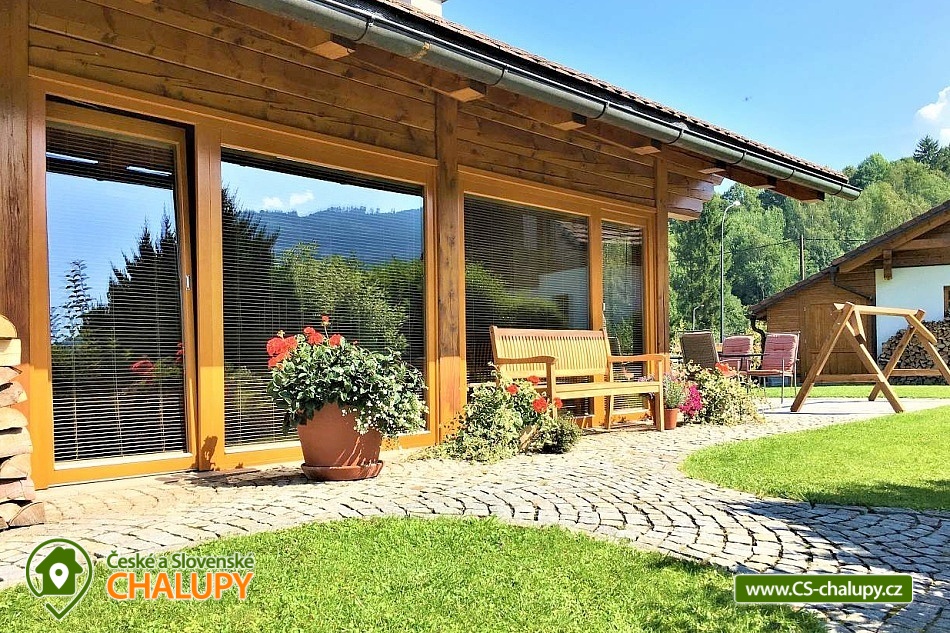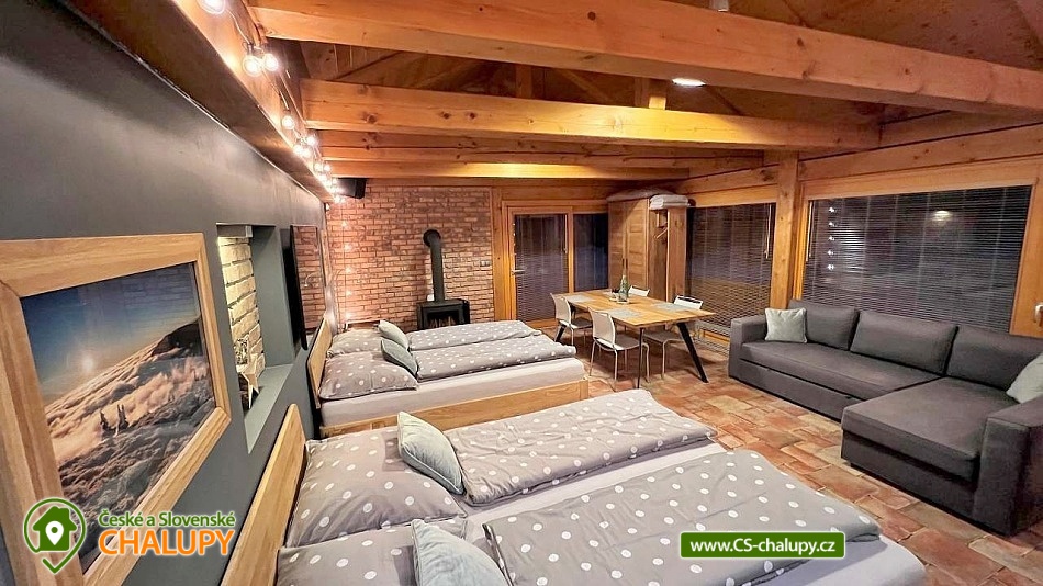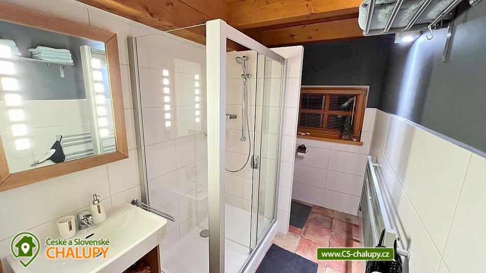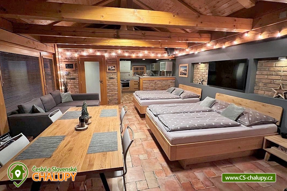 The comfortable Chata pod Rejvízem is located in the very heart of the Jeseníky Mountains in a quiet location Dětřichov, approximately 2 km from the spa town of Jeseník, where you can visit the famous Priessnitz healing spa. The cottage is part of a garden through which the Vrchovištní stream flows. Nearby you can go on a trip to the Rejvíz National Nature Reserve, which is famous for the Great Moss Lake. Chata pod Rejvízem, with a total living area of 45m2, offers accommodation for 4 people. The cottage has one main living room, which includes two double beds 200x180cm. The room also has a sofa bed 140x200cm (extra bed available upon request), a dining table with chairs for 4 people, LED Smart TV (satellite, Netflix, YouTube), a storage cupboard for clothes, a radio, a fireplace and a fully equipped kitchen - all utensils and cooking utensils, a hob, extractor hood, a combination oven (electric, microwave, grill), a fridge, a filter coffee machine, a Nespresso coffee machine, a kettle, a toaster, a toaster and a beer tap. A cot is available for rent. Part of the room consists of panoramic windows with a beautiful view of the garden. The sanitary facilities include one separate bathroom with a sink, a shower, a toilet and an electric towel ladder. Heating is provided by an indoor fireplace and underfloor heating. WIFI internet access is available throughout the building. Directly from the living area you can enter the outdoor terrace with seating and parasol, deck chairs, barbecue and garden shower. There is a fireplace. Safe storage for bicycles, skis and sports equipment is provided. Parking is available directly at the property. In the vicinity of the cottage there is the possibility of hiking, cycling, swimming, mushroom picking, fishing, skiing and cross-country skiing. There is a riding stable, tennis courts and a golf course nearby. Swimming options include: Jeseník - Priessnitz swimming pool, Jeseník swimming pool, Česká Ves swimming pool, Domašov - Bělá pod Pradědem swimming pool, Žulová quarry - Brankopy, etc. There are nearby ski resorts: Na Smrťáku Ski Resort, Jeseník - Lázně, Lázeňský vrch, Miroslav - Lipová Lázně and others. Other trips in the area include the Lipovské stezky, Rychlebské stezky - the mecca of trail cycling in the Czech Republic, Praděd - the highest mountain in the Jeseníky Mountains, Křížový vrch, the Zlatý Chlum lookout tower, Čertovy kameny, the Dlouhé Stráně pumped-storage hydroelectric power plant, the Velké Losiny paper mill, the Horní Lipová forest bar, the Na Pomezí Cave or Karlova Studánka. We look forward to seeing you there.