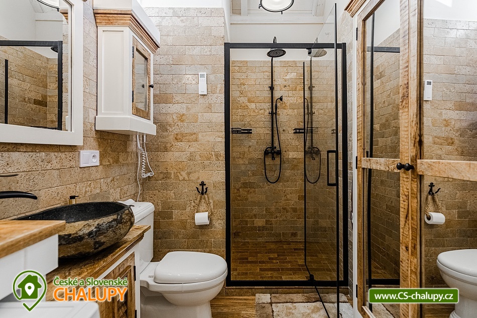 Stylová Chata Krušné hory nedaleko hradu Perštejn a řeky Ohře, poloha v lokalitě Karlovy Vary. Chata kombinuje kouzlo tradičního rustikálního stylu s moderním komfortem. Chata je kompletně zařízena vkusným dřevěným nábytkem a vybavena spotřebiči a technologiemi, aby poskytla maximální pohodlí pro až 4 osoby. Chata se nachází v malebném údolí, je obklopena lesy a horskou přírodou Krušných hor. Tato klidná lokalita nabízí ideální podmínky pro odpočinek, turistiku, cyklistiku a další venkovní aktivity. POPIS: Obývací pokoj s jídelnou – Dominantou je stylový gauč, jídelní stůl s židlemi, konferenční stolek a knihovna. Plně vybavená kuchyň – Navazuje na obývací část a je oddělena stěnou bez dveří. Najdete zde vestavěné spotřebiče: lednice, myčky, pračky, varné konvice, toustovače a kávovaru. Součástí je také kompletní sada nádobí. Zvýšené patro na spaní – Z obývacího pokoje vedou dřevěné schody do otevřeného spacího prostoru se dvěma lůžky. Samostatná ložnice – Vybavena manželskou postelí a dostatkem úložného prostoru. Koupelna – se sprchovým koutem, umyvadlem a toaletou. Průchozí prostor s šatnou. Krytá terasa – Ideální pro venkovní posezení, vybavena krbem a elektrickým grilem, Dřevěný stůl a lavice, Ohniště s posezením, Rozlehlý pozemek s říčkou – Obklopený přírodou, ideální pro relaxaci a odpočinek. Nabízíme: Kompletní vybavení – Včetně ložního prádla, přikrývek a ručníků. Bezproblémové parkování – Pod dřevěnou pergolou pár metrů od chaty. Možnost nabíjení elektromobilů – Na parkovišti je zásuvka 11 kW pro dobíjení elektroauta. Klidná lokalita – Ideální pro milovníky přírody, turistiky a relaxačních pobytů. V okolí: Termální aquapark Klášterec nad Ohří (5 km), Skiareál Klínovec (30 minut jízdy), Karlovy Vary (30 minut jízdy), Hrad Perštejn a okolní turistické trasy, Řeka Ohře – Možnost rybaření, vodních sportů. Těšíme se na Vás u nás.