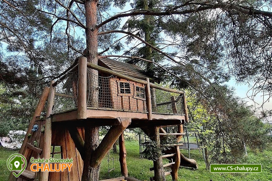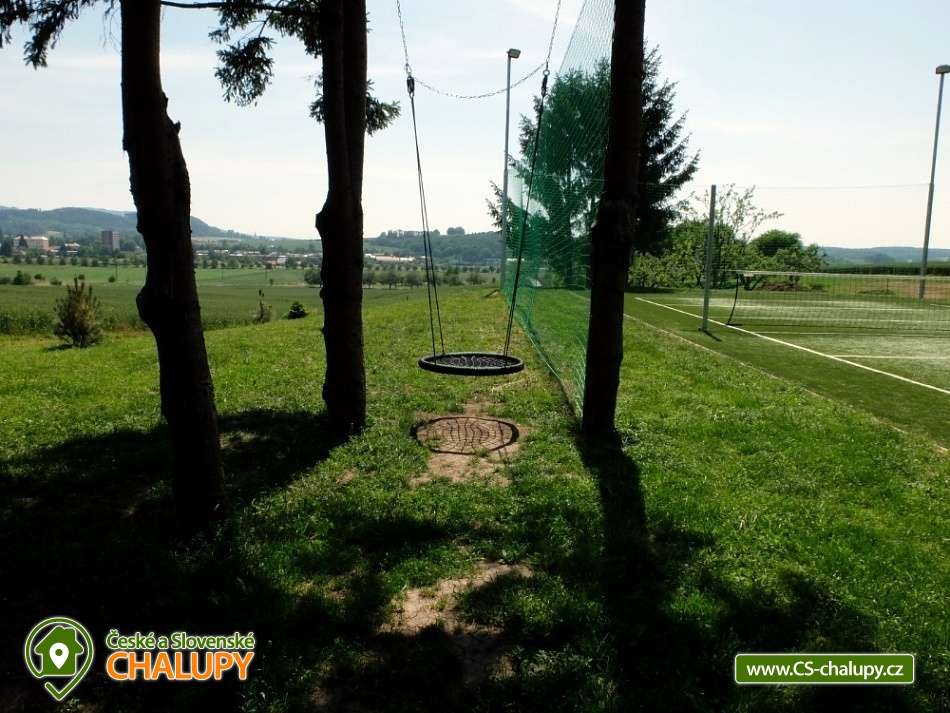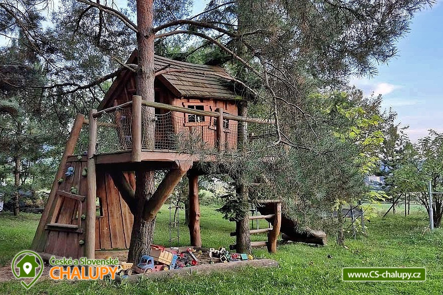 Chata u Raabů - accommodation Bystřice pod Hostýnem - Hostýnské vrchy. The newly renovated cottage at Raab is located in a quiet area surrounded by nature and close to Bystřice pod Hostýnem. You will find a place for undisturbed entertainment and relaxation and at the same time you will quickly reach the city center, which is the gateway to the Hostýn Hills. The cottage is an ideal place to organize an active family holiday, private event or corporate team-building. Near the cottage there is a forest and a pond. The pride of the cottage is a playground with quality artificial grass and lighting, a house for children in tree branches, a covered seating area with sound system and a smokehouse. On the ground floor you will find 2x equipped kitchen, living area and 2 bathrooms with shower. Upstairs there are 3 bedrooms with 9 beds and 3 children's beds. The cottage has spacious parking guarded by security cameras and a room for sports equipment. At the cottage there is a children's sandbox with toys under the house, a trampoline and a large swing among the trees. Nearby is a swimming pool, minigolf, tennis court, squash and bowling Bystřice pod Hostýnem. In the beautiful countryside of the Hostýnské vrchy, you can pick berries. You can visit a solar heated swimming pool with a water slide in Rusava. The nearest ski center Troják Ski Resort is complete with services such as ski and snowboard equipment rental, ski and snowboard school, snowmobile rental, taxi scooter, artificial snow, night skiing. Trips to the surroundings: Kroměříž (chateau, flower garden), Lešná (ZOO), Rožnov pod Radhoštěm (open-air museums), Teplice nad Bečvou (cave, abyss). Bathing possibilities: Rusava Dam, Fryšták Reservoir, Všemina Reservoir, Bystřice pod Hostýnem Swimming Pool, Osíčko Swimming Pool, Rusava Swimming Pool, Holešov Swimming Pool - Sport Center, Domaželice Swimming Pool, Mikulůvka Swimming Pool, Kostelec Swimming Pool, Jadran Swimming Pool, Lipník nad Bečvou Swimming Pool, Zlín - Religious ponds, Hvozdná - Pond Argalaška, swimming pool Hulín. Nearby ski resorts: Rusava, Ski Resort Tesák, Troják.