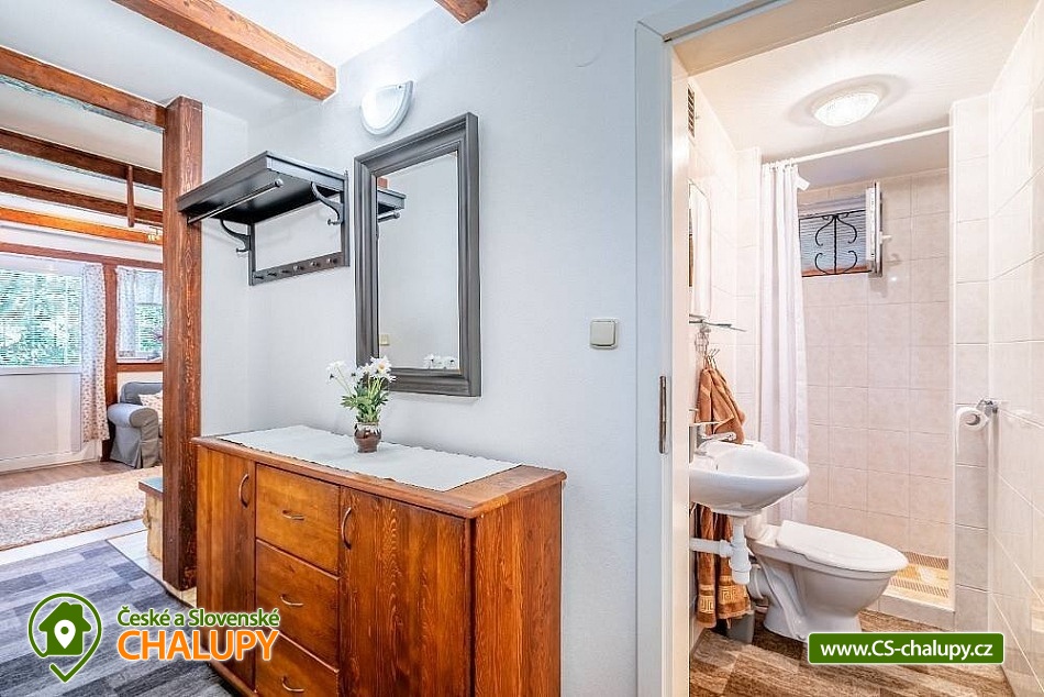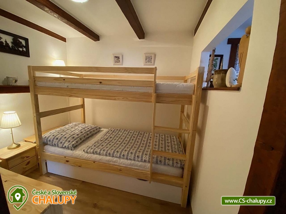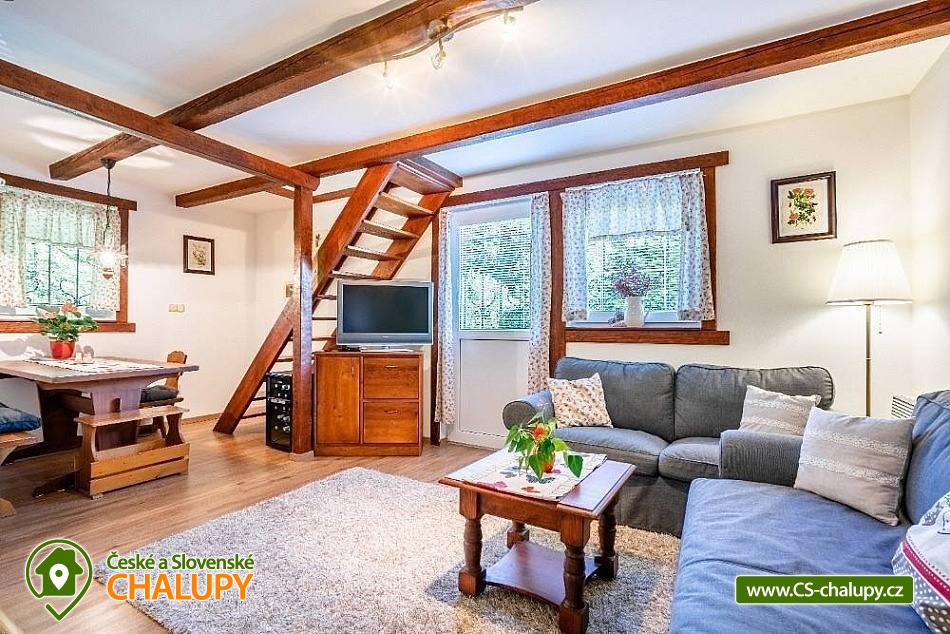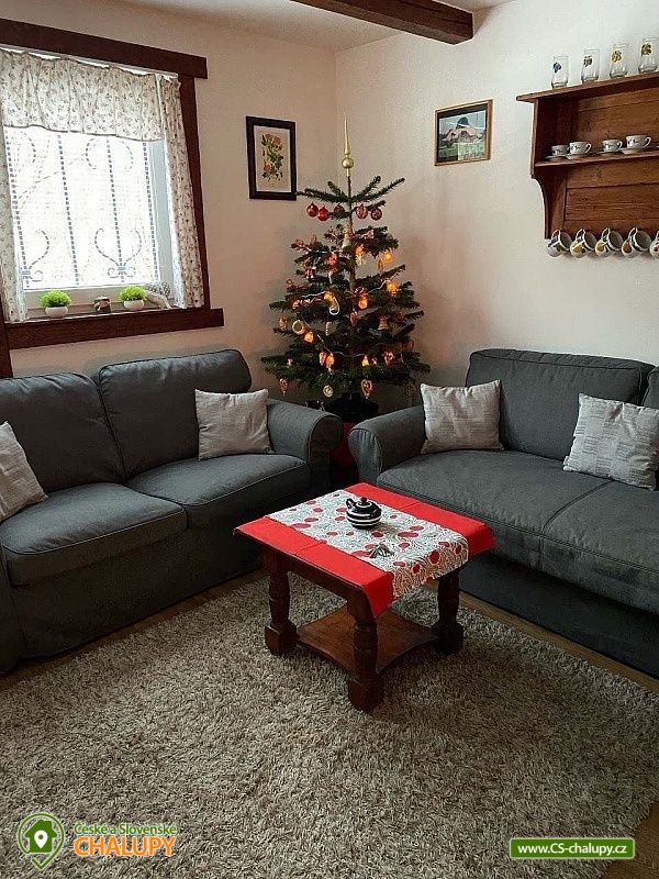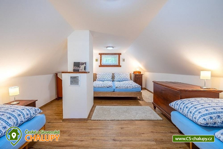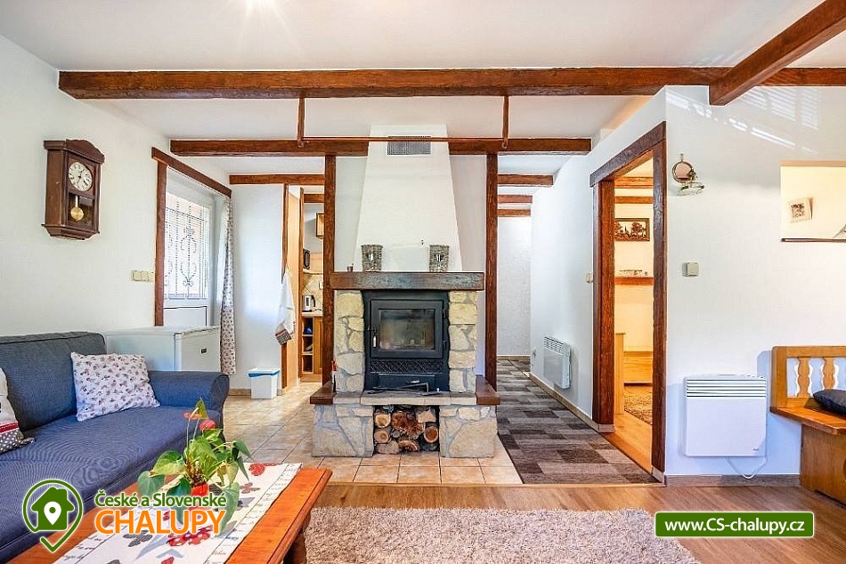 The cozy cottage is located on the quiet border of the White Carpathians and the Beskydy Mountains, amidst forests, meadows and the murmur of the Hlubočský stream. It is a place where you can switch off for a while, breathe in the fresh air and let the surrounding nature affect you. The cottage provides accommodation for 6 people in 2 bedrooms. On the ground floor there is a double bedroom (1 bunk bed) and in the attic there is a four-bed bedroom (1 double bed, 2 single beds). For families with children, a portable folding bed and a dining chair are available. Furthermore, on the ground floor there is a common room with a sofa, TV, fireplace and mini wine cellar. There is also a fully equipped kitchenette (electric stove, electric oven, microwave, kettle, fridge, freezer, coffee maker, toaster, toaster and dishes) with a dining table. The sanitary facilities include a bathroom with a shower, toilet, sink, hairdryer and towels. In the summer months, a solar shower is available. The building is heated by a fireplace and electric heaters. There is no WI-FI internet connection in the building. The cottage is surrounded by a garden with parking directly at the building (max. 3 cars). The garden includes a roofed terrace with outdoor seating, a grill and a fireplace. Children will certainly appreciate the sandbox or swing. Possibility of storing bicycles in the cellar. In the vicinity of the building there is the possibility of hiking, cycling, swimming, skiing, cross-country skiing, fishing or mushroom picking. Swimming options include, for example: Brumov-Bylnice swimming pool, Valašské Klobouky swimming pool, Slavičín swimming pool or Lačnovské rybníky. In winter, nearby ski resorts are an advantage, for example: Újezd u Valašských Klobouky ski area, Francova Lhota ski area, Pozděchov ski area or Lužná ski area. The surrounding area is attractive for trips: Lešná Zoo, the White Carpathians, the Bevlava cycle path, the Vlár Pass, the Moravian Spa in Luhačovice, the Královec lookout tower, the Doubravka lookout tower, the Vizovice chateau, the Pivečkův forest park or the town of Slavičín. We look forward to seeing you there.