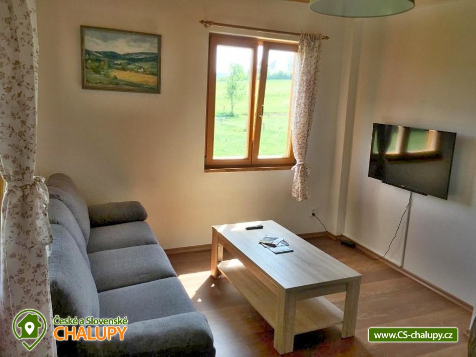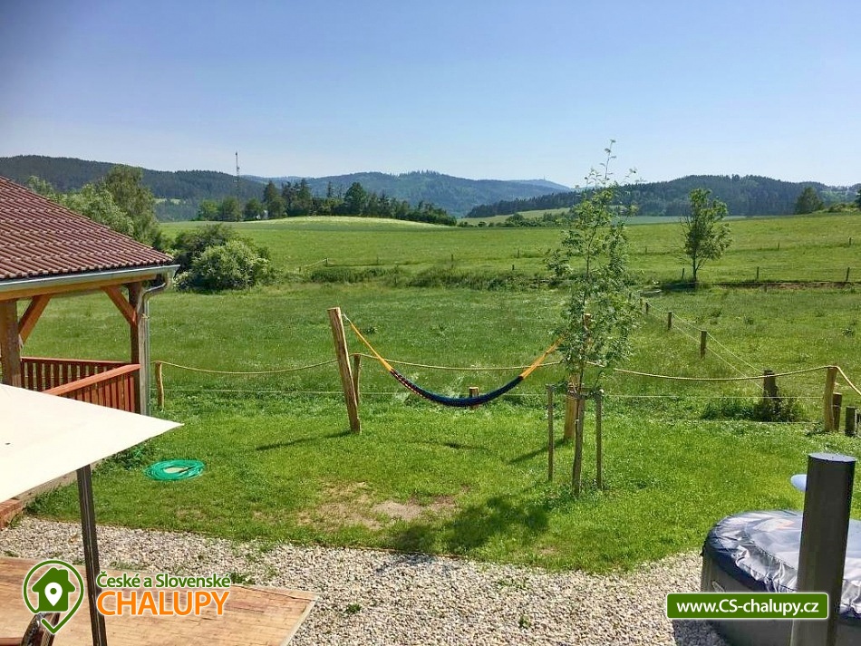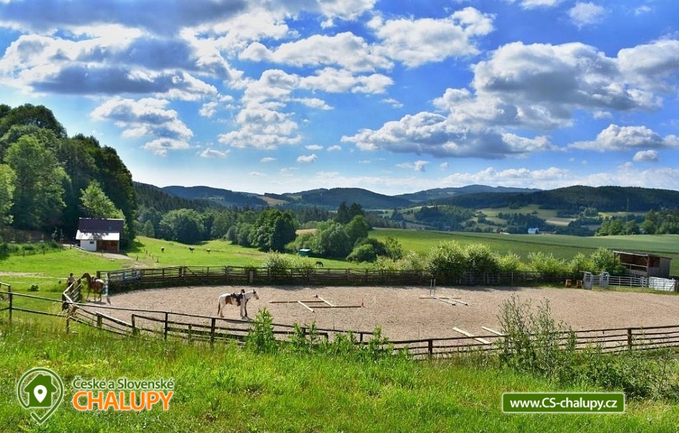 The Malenice Ranch cottage with its own riding stable is located in South Bohemia and near the Šumava Protected Area, in the village of the same name Malenice, about 20 km from the town of Strakonice. The cottage is located at the end of the road near the forest and near pastures with horses. You can look forward to sitting on the spacious terrace and relaxing in the hot tub. Chalet Ranch Malenice offers accommodation for 8 people in 4 double bedrooms with a double bed. The fourth bedroom is open plan and located above the stairs upstairs. A living room with two sofas and a flat-screen TV and a dining area with a seating area, a fireplace and a fully equipped kitchen (fridge with freezer, dishwasher, ceramic hob, microwave oven, kettle, coffee maker and toaster) are used for shared moments. WIFI internet connection is available throughout the building. The social facilities include one bathroom with shower and toilet. Outside, you can spend your free time on the covered terrace with seating and a garden fireplace with the possibility of grilling. You can relax in a hot tub with a jacuzzi heated by a wood-burning stove. A heated outdoor shower is available at the barrel. You can also lie down in a hammock. Upon agreement, you can arrange a holiday with your own horse with the possibility of stables on adjacent pastures in the immediate vicinity of the cottage, while they also have a sand riding stable available. Horse lovers will appreciate the beautiful horse rides in the surrounding nature. You can park right next to the building. Cycling, swimming, mushroom picking, fishing, cross-country skiing and skiing are available in the vicinity of the building. A children's playground with lots of climbing frames and a cable car is available right in Malenice by the old parsonage. The more demanding ones can use the multifunctional field for football, tennis, volleyball or handball. Swimming options include, for example: Volyně swimming pool, Vlachovo Březí swimming pool, Vimperk swimming pool, Mléčná Dráha - Račov swimming pool, Skály swimming pool, Rohanov swimming pool, Husinec reservoir, Zdíkovec pond, Kramata pond, Mutěnice Dam, etc. In winter, you can go skiing in the Kubova huť Ski Area or in Javorník. Protivín Zoo Krokodylí, the Celtic hillfort on the Věnec hill, the Krušlovsk apiary, the Helfenburk Castle, the Vimperk State Castle, the Hluboká nad Vltavou castle or the city of České Budějovice are alluring for excursions in the area. We look forward to seeing you here.