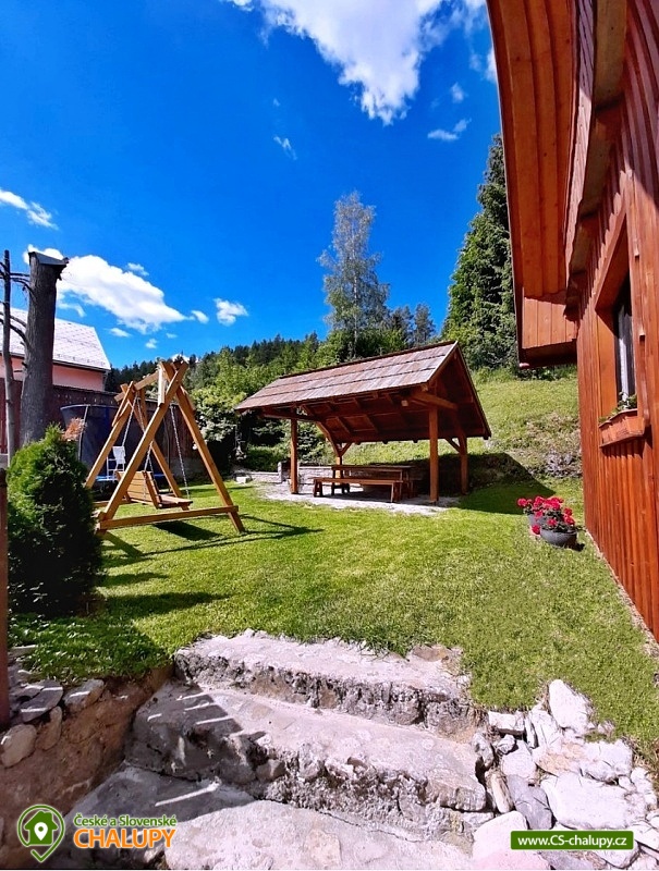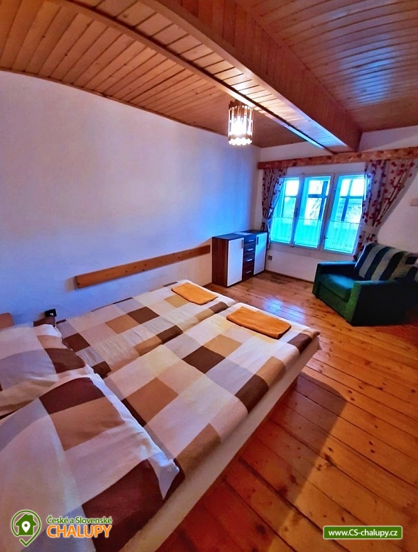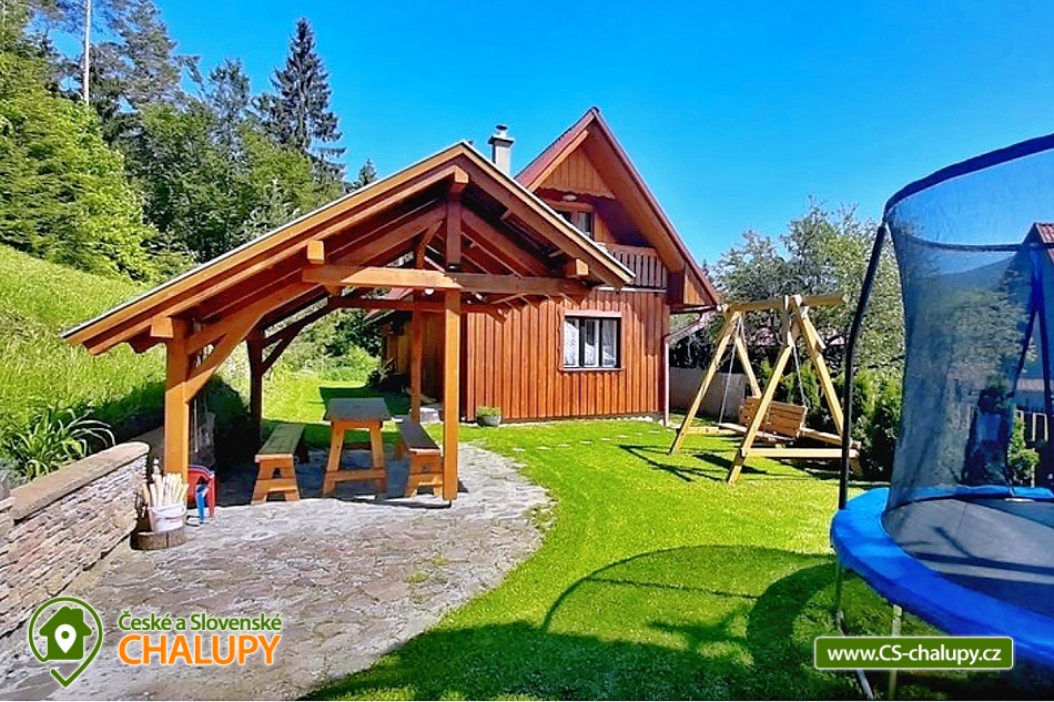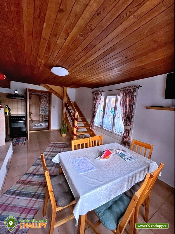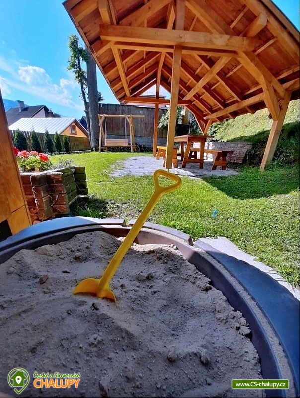 Chata U Kmotra is located in a quiet place near the forest on the edge of the village of Liptovská Osada, on the border of the Low Tatras and Velké Fatra. The cottage offers accommodation for up to 8 people in 3 bedrooms. DESCRIPTION - Rooms: 1x Bedroom (attic): 3x bed, 1x Bedroom (attic): 1x double bed, 1x bed, 1x Bedroom (attic): 1x double bed, 1x Living room (ground floor), Kitchen (ground floor): Refrigerator, Electric oven, Microwave, Electric kettle, Freezer, Ceramic hob. Also dining area, Fireplace / Stove, TV, Couch. Bathroom with toilet, sink and shower on the ground floor. A stay with a small dog is allowed for a fee. Outside there is a fireplace, a gazebo, outdoor seating, a kettle and a garden swing. The accommodation is suitable for families with children, toys, a cot, a trampoline and a sandpit are available. The land is fenced. Parking is possible for 3 cars at the property. The village of Liptovská Osada is the starting point for tourist routes and cycle paths leading to Ružomberok! Right in the village is the Gothal tourist and recreation area, where there are swimming pools, wellness, bowling, billiards, fitness and a tennis court. Further in the vicinity: Ferrata Dvě Věže, Brankovský waterfall, Donovaly, open-air museum Vlkolínec (registered as a UNESCO World Heritage site), Jelení waterfall in Čutkovská dolina, Hrabovo reservoir and Likava Castle. You can ski in the Park Snow Donovaly ski resort. We look forward to seeing you here.