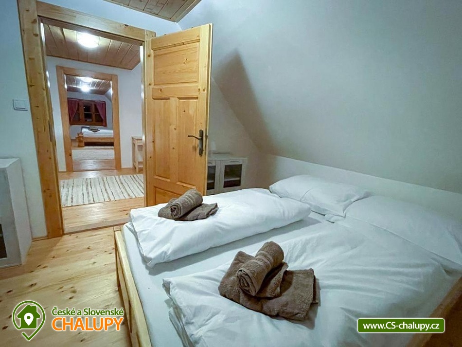 A traditional Slovak log cabin with an outdoor sauna - Chata Srňacie is located in the recreation area of Dolný Kubín - Srňacie with a location near the forest. Log cabin accommodates 6 people in 2 bedrooms (1 bathroom, 1 toilet). DESCRIPTION: Equipment - Board games and Internet (WiFi). Rooms / rooms: 2x Bedroom: 1x double bed, 1x single bed. 1x Living room - equipment: Couch, Fireplace / Stove, TV. 1x Kitchenette - equipment: Refrigerator, Electric oven, Ceramic hob, Dining area, Dishwasher, Electric kettle. 1x Bathroom with toilet - equipment: washing machine, shower, sink, toilet, towels. Accommodation is available only for you. Staying with a dog is allowed for a fee. At the cottage there is a wooden barrel sauna with a cooling tub and deckchairs. Also at the cottage fireplace, outdoor seating, terrace, kettle and grill. The accommodation is suitable for families with children, cots and a sandpit are available. The land is fenced. Parking is possible at the building. You can ski in the ski resort SKI PARK Kubínská hoľa (14.1 km), the nearest swimming is AquaRelax Dolný Kubín (8.3 km). There are 3 auqaparks in the vicinity - AquaRelax Dolný Kubín, Lázně loučky, Aquapark Bešenová and Aquapark Tatralandia is 35 km away. In winter, you can use one of the three ski resorts located within 20 minutes of the accommodation. Ski resort Kubínská Hoľa, Ski park Racibor or Malinô Brdo. Jasná Low Tatras is located approximately 45 minutes by car. We also recommend rafting or rafting on the Orava River and a visit to the Orava Castle. For children, in the city you will find children's corners, rope parks, sightseeing cruises along the Orava Reservoir, learned trails, observation towers, forest railways and many others. Other options are a visit to the Malá Fatra, Velká Fatra, and Western Tatras national parks. The surrounding area offers plenty of sports options, including rock climbing, ski mountaineering, tennis, hiking and many others. We look forward to seeing you here.