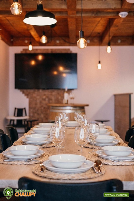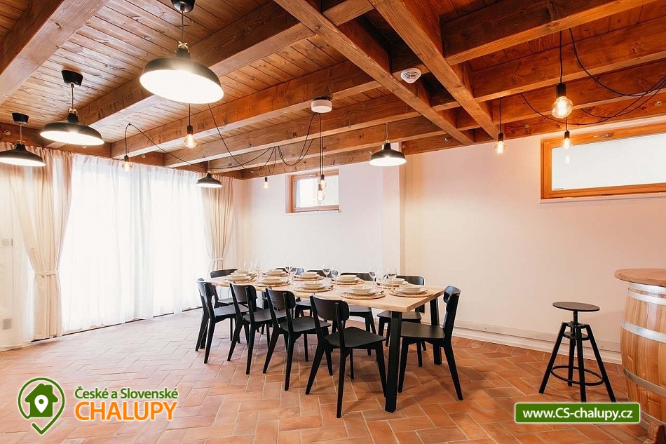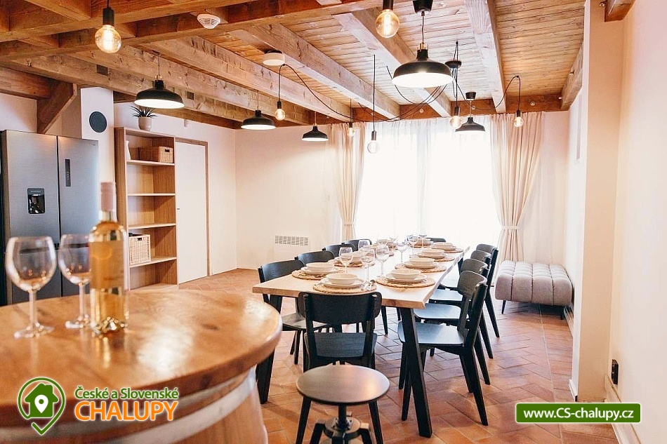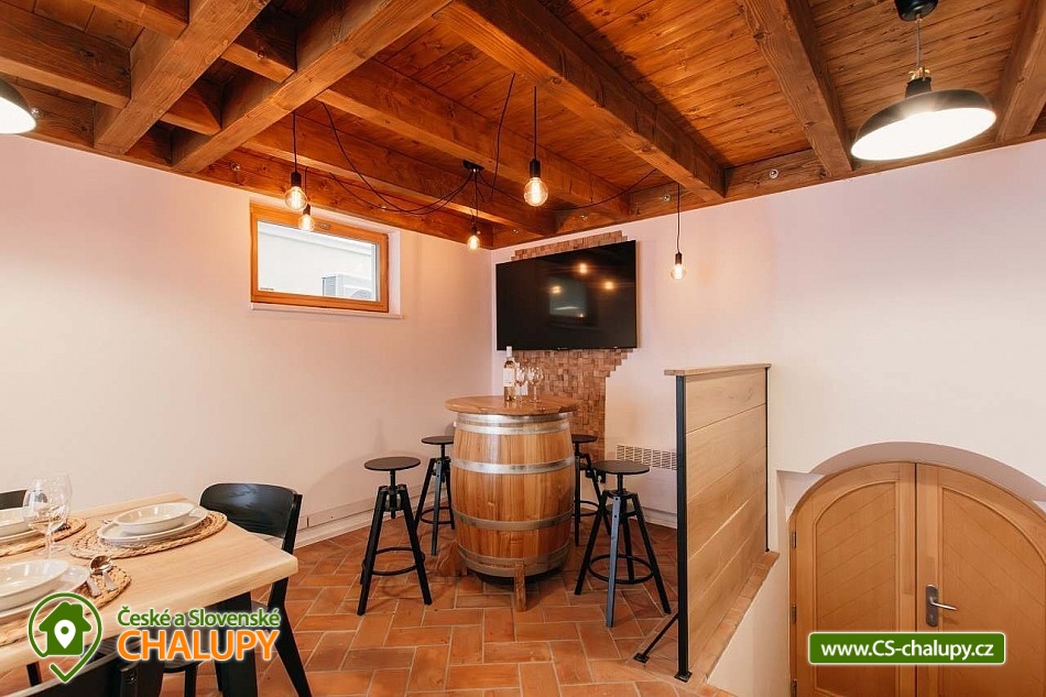 Chata Pálava - vinný sklep - Nové Mlýny. Náš historický vinný sklípek je exkluzivně přístupný pouze pro hosty, kteří využívají naše soukromé ubytování v Pavlově na Pálavě. Sklep lze po domluvě pronajmout společně s celým objektem, přičemž kapacita odpovídá počtu ubytovaných hostů. Díky historické atmosféře a autentickému prostředí je náš vinný sklípek ideálním místem pro nezapomenutelné zážitkové ubytování v srdci Jižní Moravy, kde si můžete vychutnat prvotřídní vína Jižní Moravy. Nabízíme ubytování pro 12 osob ve čtyřech ložnicích. Celkem 10 plnohodnotných míst na manželských postelích a dvě místa na přistýlce (dvě místa na přistýlce po domluvě za příplatek). Všechny ložnice jsou s klimatizací, povlečením a sítěmi proti hmyzu. V přízemí se nachází společenská místnost s degustačním koutkem, WC a vstupem do vinného sklípku, který je Vám po celou dobu pobytu k dispozici. V patře se nachází 2 ložnice, koupelna a WC, ve 2.NP se nachází další 2 ložnice, koupelna s WC. Obě koupelny jsou vybaveny sprchovým koutem. Pro maximální pohodlí našich hostů je v každé koupelně a na každém WC připravena luxusní kosmetika značky L’Occitane. K dispozici jsou Vám také dvě plně vybavené kuchyně - jedna v přízemí a druhá v 1. patře. Obě disponují nádobím, myčkou, kávovarem, mikrovlnnou troubou, toustovačem, varnou konvicí, velkou lednicí s mrazákem, horkovzdušnou troubou a indukční deskou. Dále jsou k dispozici společenské hry, knihy, židlička a cestovní postýlka včetně lůžkovin, TV v každé ložnici a společenské místnosti a Wi-Fi v celém objektu. Objekt je vytápěn elektřinou. Parkování možné pro 2 auta přímo u objektu. Pro odpočinek na čerstvém vzduchu Vám poslouží terasa s posezením a výhledem na vinice. K dispozici také gril, ohniště a úschovna kol. V okolí možnost turistiky, cykloturistiky, koupání, houbaření a rybaření. V blízkosti je jízdárna, půjčovna kol, tenisové kurty a golfové hřiště. V nedalekém okolí lze projít několik vinařských stezek a navštívit spousty dobrých vinařství. Mezi možnosti koupání patří např.: vodní nádrž Nové Mlýny, lom Mariánský mlýn, aquapark Pasohlávky Aqualand Moravia, koupaliště Mikulov - Riviéra, bazén Hustopeče, koupaliště Hustopeče, koupaliště Březí, rybník Šutrák, koupaliště Horní Bojanovice, koupaliště Němčičky, atd. K výletům v okolí láká Archeopark Pavlov, Yachclub Pavlov - Nové Mlýny, přístav, vyjížďky parníkem, Pálavské vrchy - CHKO Pálava, Hrad Děvičky, Lednicko - Valtický areál (UNESCO), Svatý kopeček v Mikulově, Siročí hrádek a Stolová hora nad obcí Klentnice a další. Těšíme se na Vás u nás.