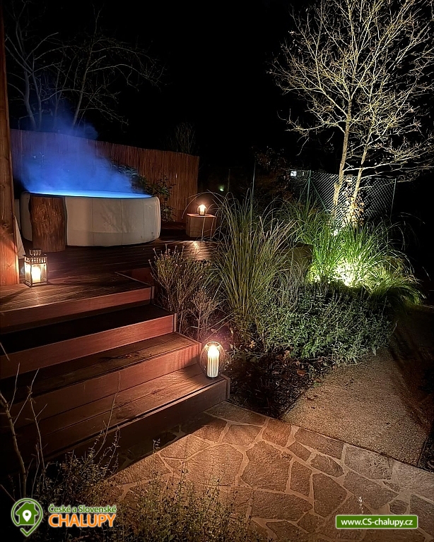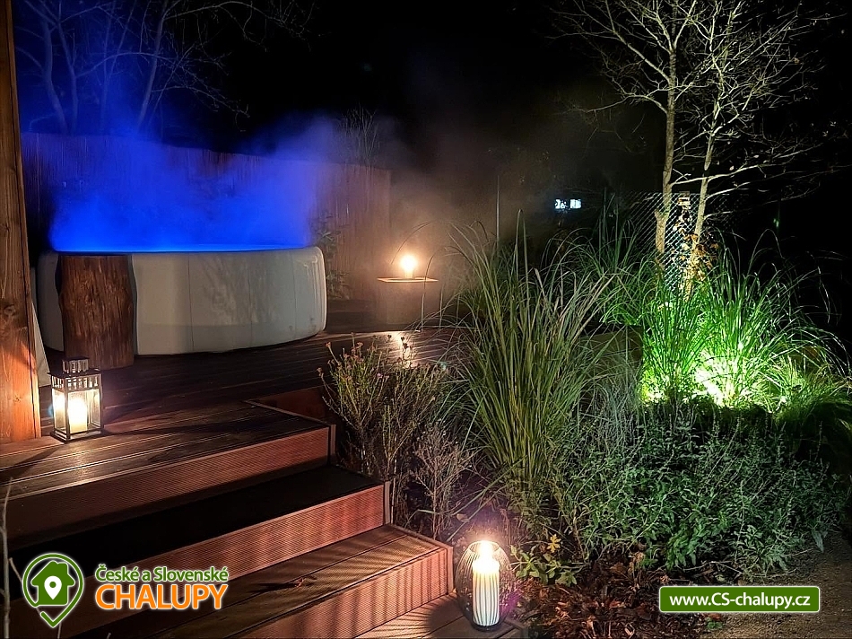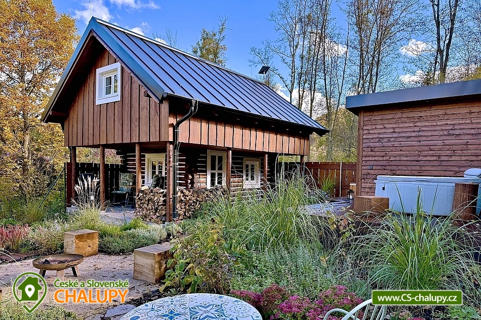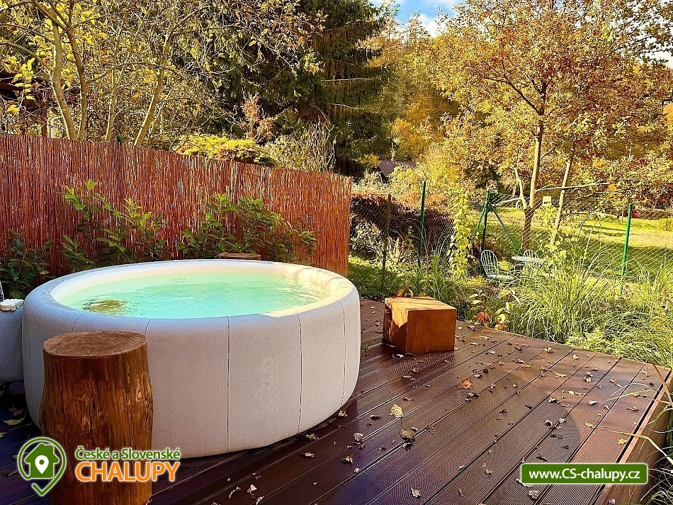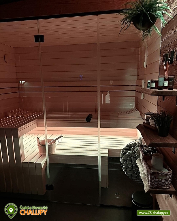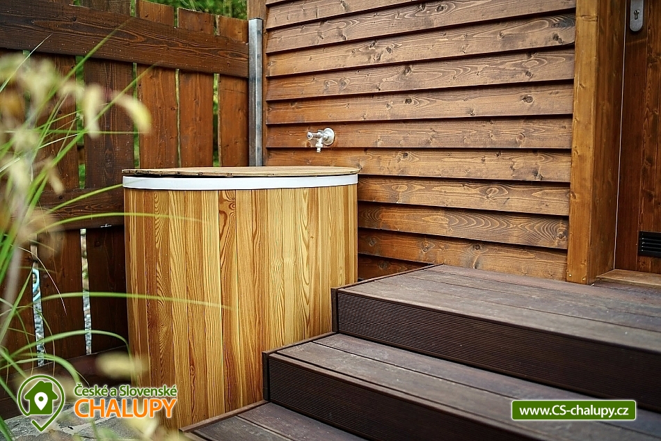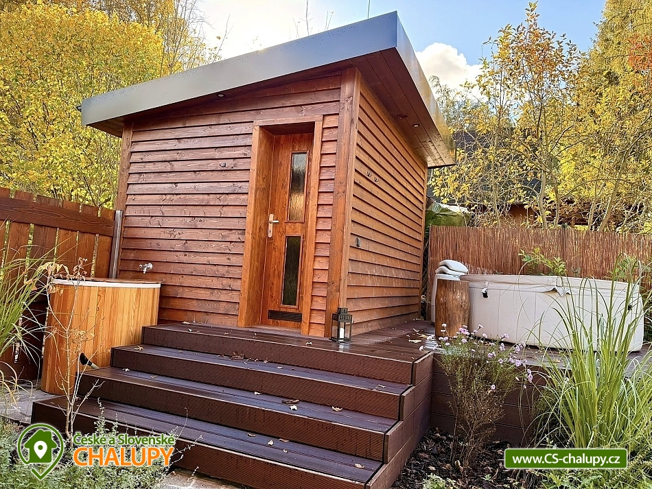 Posázaví cottage with wellness (sauna, whirlpool and cooling tub), located in the middle of the forest near the Svatojanské proudy Nature Trail in Petrov u Prahy. Sauna, whirlpool, fireplace, grill, fireplace, maximum comfort and convenience, all this awaits you at my place. The surroundings are full of beautiful places, viewpoints, trails, among the most famous are the Svatojanské proudy Nature Trail and the Posázavská Trail. You can park right in front of the cottage, but you can also take a direct train from Prague, the legendary Posázavské Pacific line and then just a nice walk of 3.5 km from Davle through the Zahořanské Valley or from Petrov u Prahy over Mount Ďábel, which, by the way, is the geometric center of Bohemia. After a pleasant walk or a hard day at work, a heated sauna and jacuzzi will be waiting for you. After the sauna, you can jump into a cold tub and then lie down on the couch and watch the blazing fire in the stove with wine in hand. One-day stays are only possible on weekdays. We love animals, but there is no suitable space for them in the cottage. The cottage consists of two buildings (cottage + wellness), which are about 5m apart. Cottage - the ground floor will delight you with its coziness, airiness and, above all, open space up to the rafters. There is a fully equipped kitchen, as well as a sofa that can be folded out with a full-size mattress for one adult. Upstairs there is a double bed and you can also arrive with the little ones, for which I have a travel cot on request. Wellness - has enough privacy, there is a toilet, shower, sink and a glass sauna. Heating: If you don't feel like chopping a few pieces of wood for the fire in the stove, you don't have to do anything, the electric underfloor heating won't let you freeze. In addition to the beautiful nature in the area, you will find plenty of viewpoints in Posázaví, such as Třeštibok or Klimentova vyhlídka. One of the most famous places is the Žampach Railway Viaduct. A wine tasting is in preparation at a nearby winery. We look forward to seeing you there.