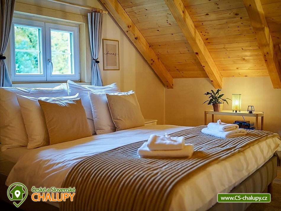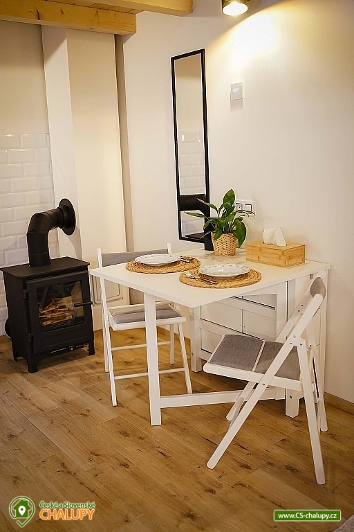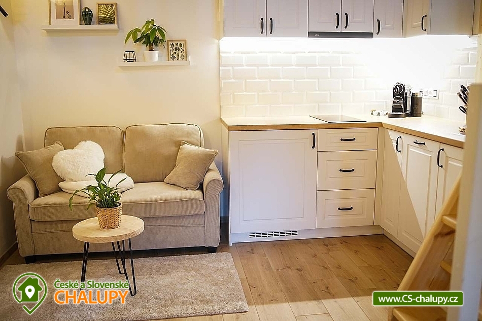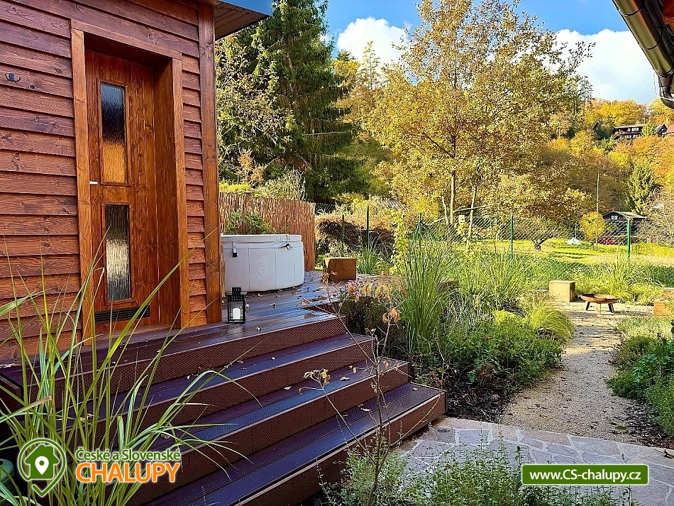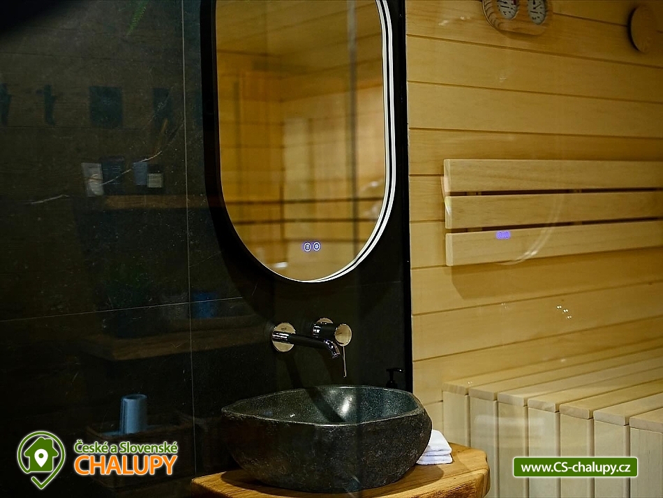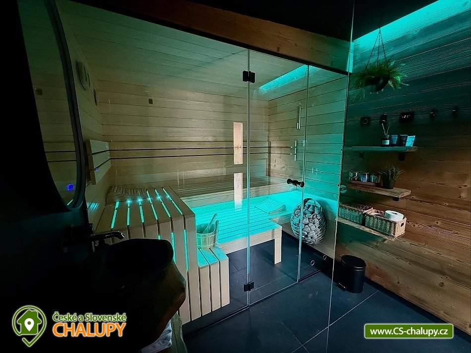 Posázaví cottage with wellness (sauna, whirlpool and cooling tub), located in the middle of the forest near the Svatojanské proudy Nature Trail in Petrov u Prahy. Sauna, whirlpool, fireplace, grill, fireplace, maximum comfort and convenience, all this awaits you at my place. The surroundings are full of beautiful places, viewpoints, trails, among the most famous are the Svatojanské proudy Nature Trail and the Posázavská Trail. You can park right in front of the cottage, but you can also take a direct train from Prague, the legendary Posázavské Pacific line and then just a nice walk of 3.5 km from Davle through the Zahořanské Valley or from Petrov u Prahy over Mount Ďábel, which, by the way, is the geometric center of Bohemia. After a pleasant walk or a hard day at work, a heated sauna and jacuzzi will be waiting for you. After the sauna, you can jump into a cold tub and then lie down on the couch and watch the blazing fire in the stove with wine in hand. One-day stays are only possible on weekdays. We love animals, but there is no suitable space for them in the cottage. The cottage consists of two buildings (cottage + wellness), which are about 5m apart. Cottage - the ground floor will delight you with its coziness, airiness and, above all, open space up to the rafters. There is a fully equipped kitchen, as well as a sofa that can be folded out with a full-size mattress for one adult. Upstairs there is a double bed and you can also arrive with the little ones, for which I have a travel cot on request. Wellness - has enough privacy, there is a toilet, shower, sink and a glass sauna. Heating: If you don't feel like chopping a few pieces of wood for the fire in the stove, you don't have to do anything, the electric underfloor heating won't let you freeze. In addition to the beautiful nature in the area, you will find plenty of viewpoints in Posázaví, such as Třeštibok or Klimentova vyhlídka. One of the most famous places is the Žampach Railway Viaduct. A wine tasting is in preparation at a nearby winery. We look forward to seeing you there.