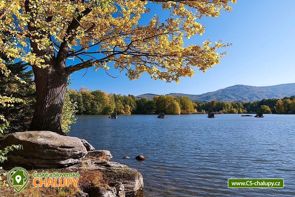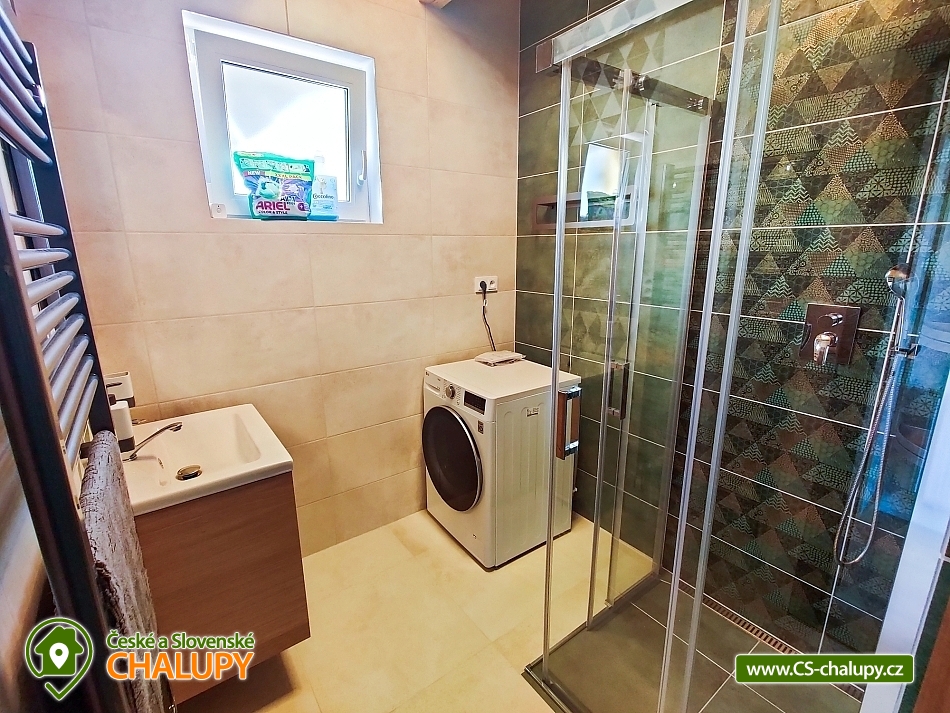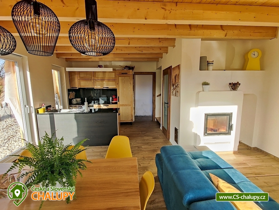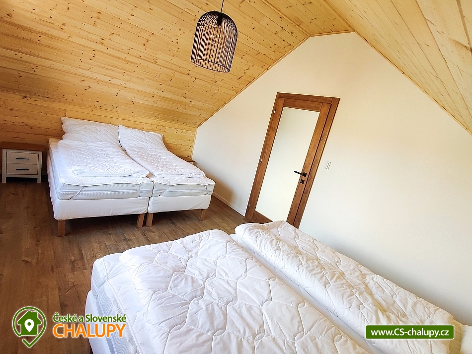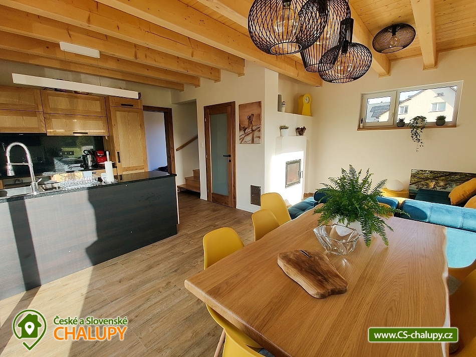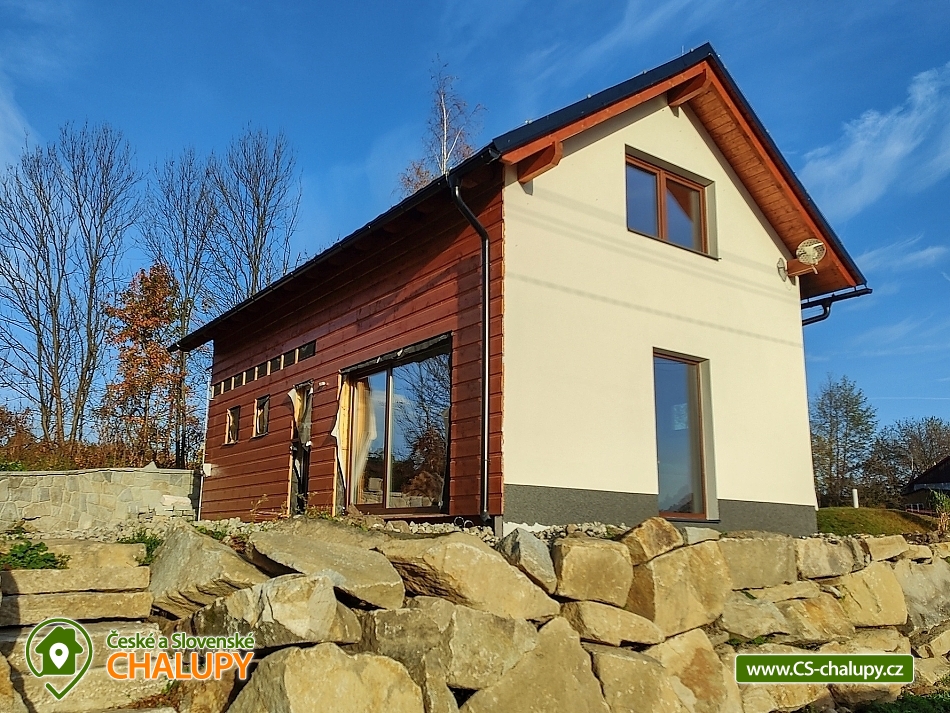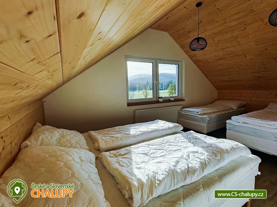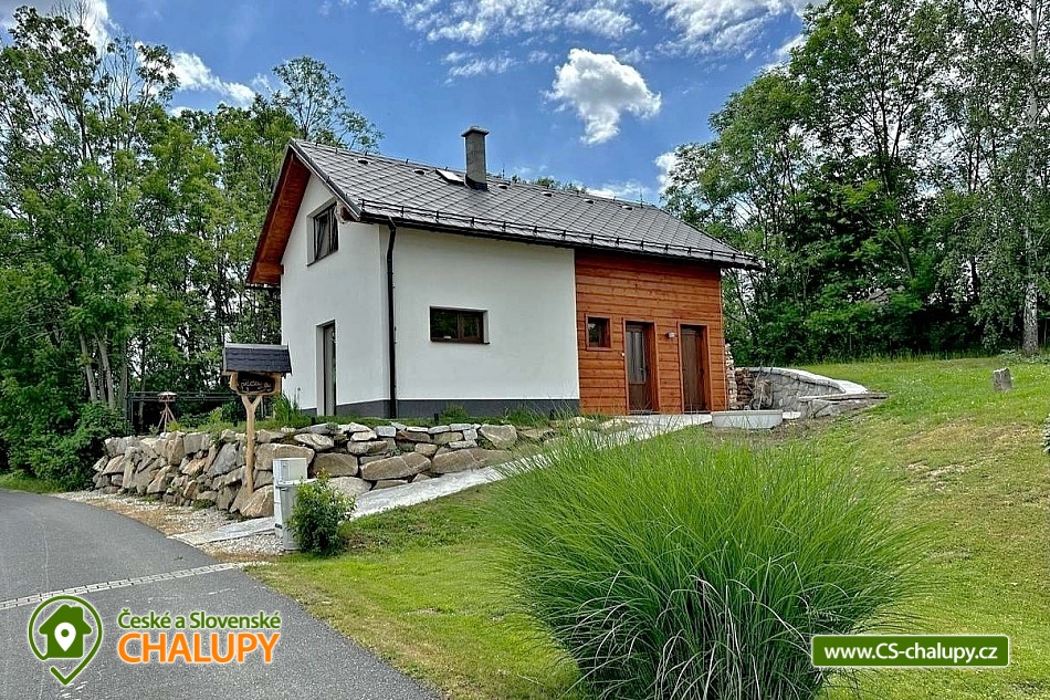 Chata Rychlebské stezky s wellness (sauna a vyhřívaný koupací sud) se nachází pod Bukovým vrchem v klidné části obce Černá Voda, v okrese Jeseník. Hlavním lákadlem jsou Rychlebské stezky, kde si přijdou na své milovníci horských kol. Na chatě se však bude líbit i turistům, rodinám s dětmi a všem, kteří mají rádi krásnou divokou přírodu - zatopené lomy, romantické rybníky, kouzelné pastviny, divoké bystřiny, jeskyně, různé skalky a balvany. S dětmi na jídlo, nebo na pivko můžete skočit do 176 metrů vzdálené Rybářské Bašty, kterou mezi jedinečné vybral Lukáš Hejlík do své gastromapy. Mimo výborné jídlo Rybářská bašta nabízí také hezké dětské hřiště. Chata se kromě skvělé polohy může pochlubit také nadstandardním vybavením s pohodlnými postelemi, krbem, vlastní venkovní saunou s ochlazovací kádí a horkým vířivým sudem. Nabízíme celoroční ubytování pro až 9 osob. Dole se nachází útulný obývací prostor propojený s kompletně vybavenou kuchyní. V obýváku je hostům k dispozici velký gauč, jídelní stůl, televize a výstup na terasu. V kuchyni máme velkou chladničku, myčku nádobí, indukční varnou desku, elektrickou troubu, rychlovarnou konvici, kávovar, topinkovač, pomalý hrnec apod. Komfortní je velká koupelna a dvě samostatné toalety. V koupelně pro Vás máme k dispozici velký sprchový kout, umyvadlo, zrcadlo, vysoušeč vlasů a ručníky. Během pobytu můžete využít pračku se sušičkou a topný žebřík. V horním patře se nachází dva samostatné čtyřlůžkové pokoje s hezkým výhledem do krajiny a na pasoucí se koně. Lůžka lze sestavit jako manželské postele, nebo jako postele samostatné. Pro děti máme připravenou dětskou postýlku. Na chatě máme rychlé internetové připojení, které je rozvedeno po celém objektu i na terasu. Kolaři a lyžaři si vše potřebné odloží v samostatné kolárně. Při hezkém počasí strávíte čas na prostorné terase s venkovním posezením a krbem. Můžete grilovat, posedět si u hořícího krbu nebo relaxovat v koupacím sudu. Auta můžete parkovat přímo u chaty na třech parkovacích místech. LÉTO - aktivity a výlety: hlavním tahákem je bezesporu horská cyklistika. Nejkrásnější jsou Rychlebské stezky. Úsek mezi Borůvkovou horou a Smrkem je možná tím úplně nejlepším, co se dá na české hranici najít. Nejoblíbenějšími výlety jsou Lázně Jeseník, polské lázně Ladek Zdroj, polské město Nysa s historickým centrem se skvělými restauracemi a výhodnými nákupy, Otmuchovské jezera, zaniklé vesnice na hřebenu Rychlebských hor např. Hraničky, bar - lesní na Rychlebském hřebenu a mini zoo v Lipové Lázně. ZIMA - aktivity a výlety: i přesto, že jsou Rychleby zejména letní lokalitou, tak se v nedalekém okolí můžete v zimě sklouznout na lyžích. Okolo 30 minut to máte na menší svahy v Lipové, Filipovicích, nebo Petříkově. Za půlhodinku jste také na sedačkových lanovkách a delších svazích na Ramzové, Červenohorském sedle nebo ve Zlatých horách. Těšíme se na Vás u nás.