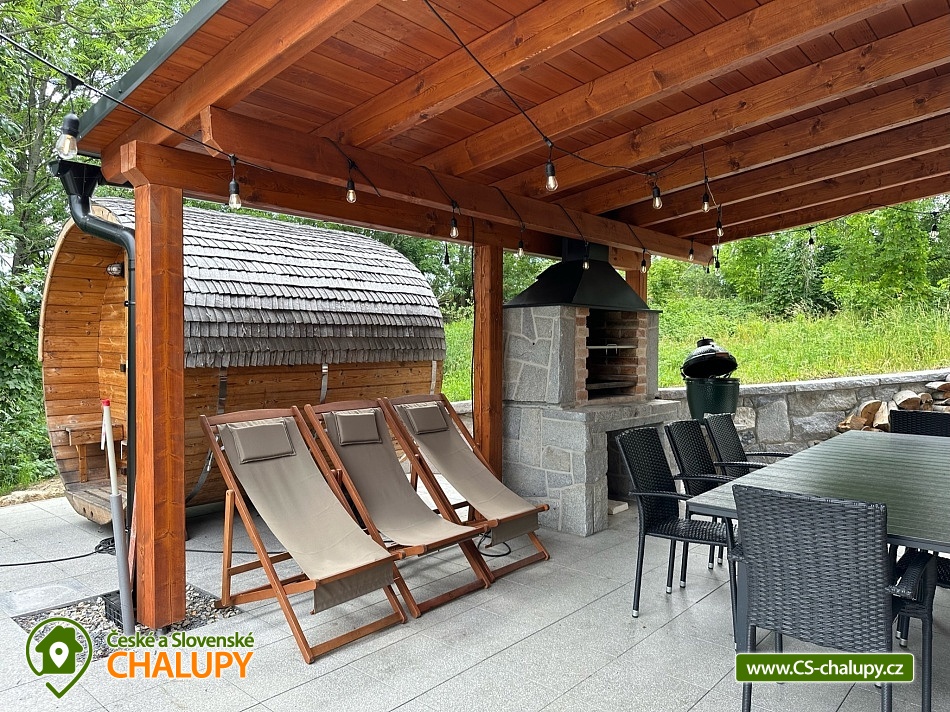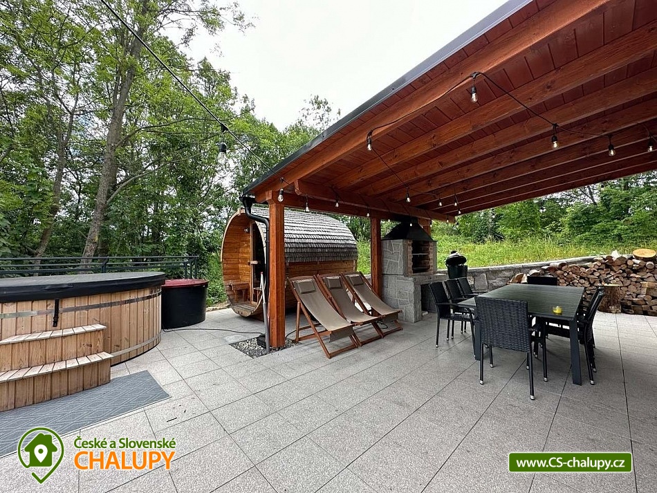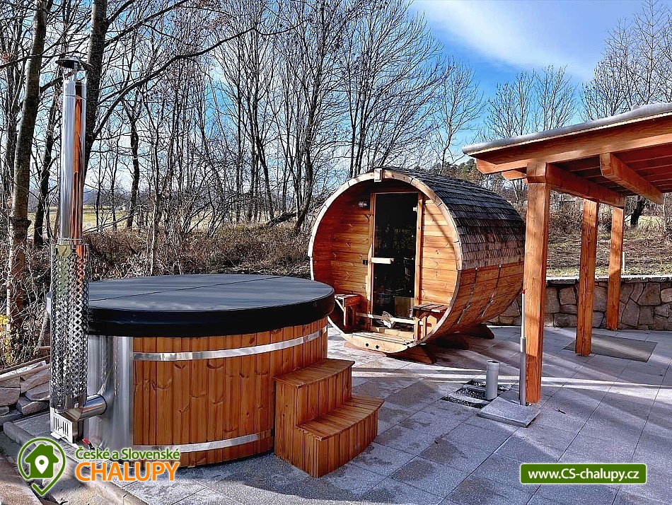 „Chata Rychlebské stezky s wellness - sauna a koupací sud s vířivkou“