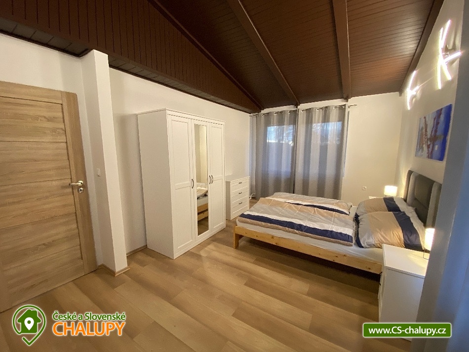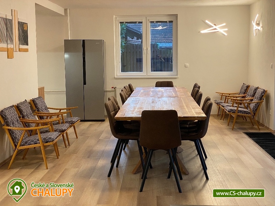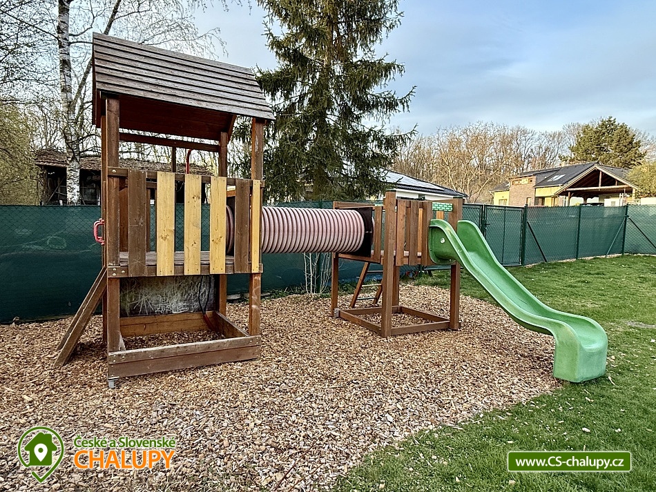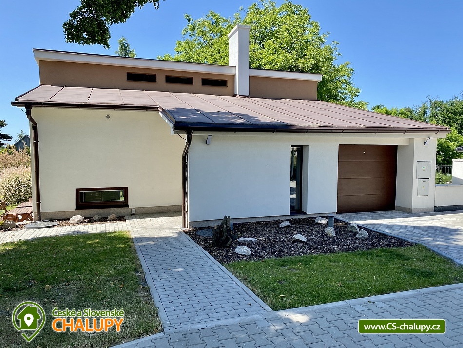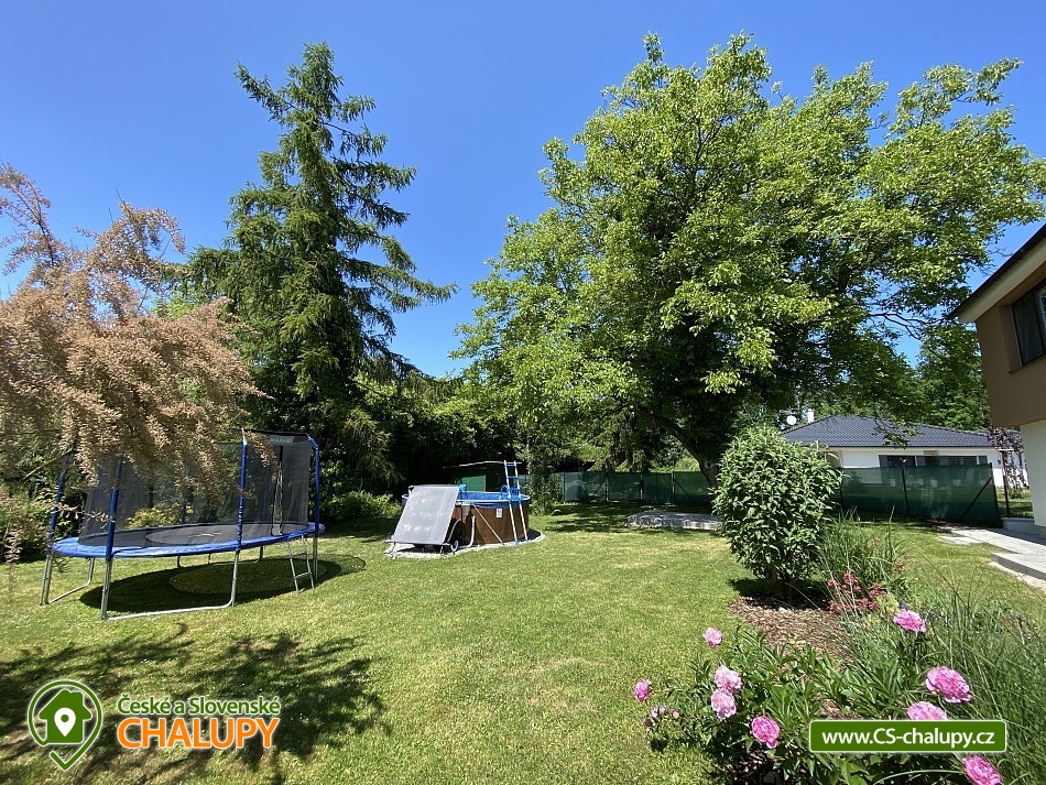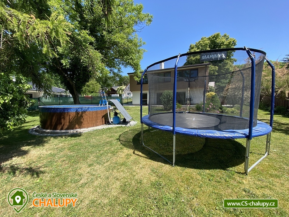 Chata s bazénem a saunou ve Středních Čechách nedaleko Chlumce nad Cidlinou, kde se nachází Fajnpark (zábava pro celou rodinu) a Mirákulum v Milovicích. Kapacita chaty - komfortního rekreačního domu je až 14 osob. POPIS: celkem 3 ložnice, 3 koupelny, společenská místnost a plně vybavená kuchyně. Součástí je zahrada s nadzemním bazénem a prostorná terasa s příjemným posezením. V prvním nadzemním patře se nachází velká moderní kuchyně se všemi důležitými spotřebiči - varná deska s odsavačem par, myčka nádobí, vestavěná trouba, mikrovlnná trouba a americká lednice a kávovar na zrnkovou kávu. Hned vedle kuchyně se nachází společenská místnost se dvěma masivními stoly, u kterých se pohodlně posadí celkem 14 osob. Společně s obývací částí zapuštěnou o dva schody níže toto celé tvoří společenskou část domu. Najdeme zde i prostornou koupelnu s WC a sprchovým koutem typu walk - in. Po vystoupání několika schodů se dostaneme do střední úrovně domu, kde je umístěn hlavní vchod se zádveřím. Pokud vystoupáme po schodech do nejvyššího patra domu, přijdeme do obytné části. Zde se nachází celkem 3 ložnice. Ložnice 1 a 2: 1x dvojlůžko 160x200cm, 1x patrová palanda s lůžky 80x200cm, celková kapacita 4 osoby. Ložnice 3: 1x dvojlůžko 160x200cm, 1x spací podium s celkovou šířkou 280cm, celková kapacita až 6 osob. Každý pokoj je vybaven komodou a šatní skříní se zrcadlem. Na stejném patře najdete i 2 samostatné koupelny se sprchovým koutem, WC a umyvadlovou skříňkou se zrcadlem. Dům pochází z 80.let minulého století s velice originální architektonickou koncepcí a sestává z několika podlaží. Tím není vhodný pro osoby se sníženou pohyblivostí. Vytápění je elektrické s teplovodními radiátory. Oázou klidu se dá nazvat zahrada náležící k domu. Najdete zde terasu s masivním venkovním nábytkem, která je ideální pro venkovní grilování. Pro romantické posezení při kávě slouží stinná terasa pod vzrostlým ořechem, na kterém je zavěšena houpačka. Na zahradě v neposlední řadě najdete nadzemní bazén typu Azuro, ve kterém se můžete zchladit během parních letních měsíců. V zimních měsících pak přijde vhod venkovní sudová sauna s ochlazovací kádí. Pro zabavení dětí je tu v letní sezóně ještě trampolína. Parkování je možné přímo u objektu na vlastním pozemku. Přímo v Dymokurech je dětské hřiště, fotbalové hřiště, lesy a rybníky vhodné pro rybaření. Těšíme se na Vás u nás.
