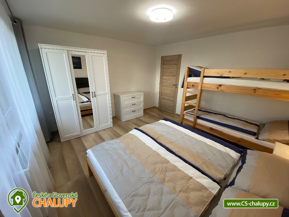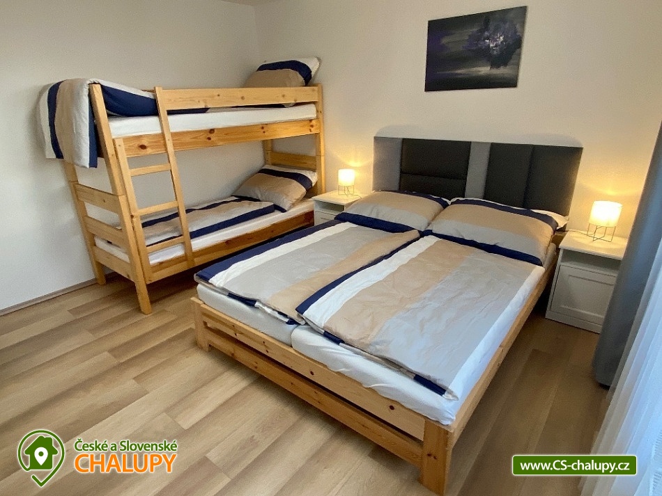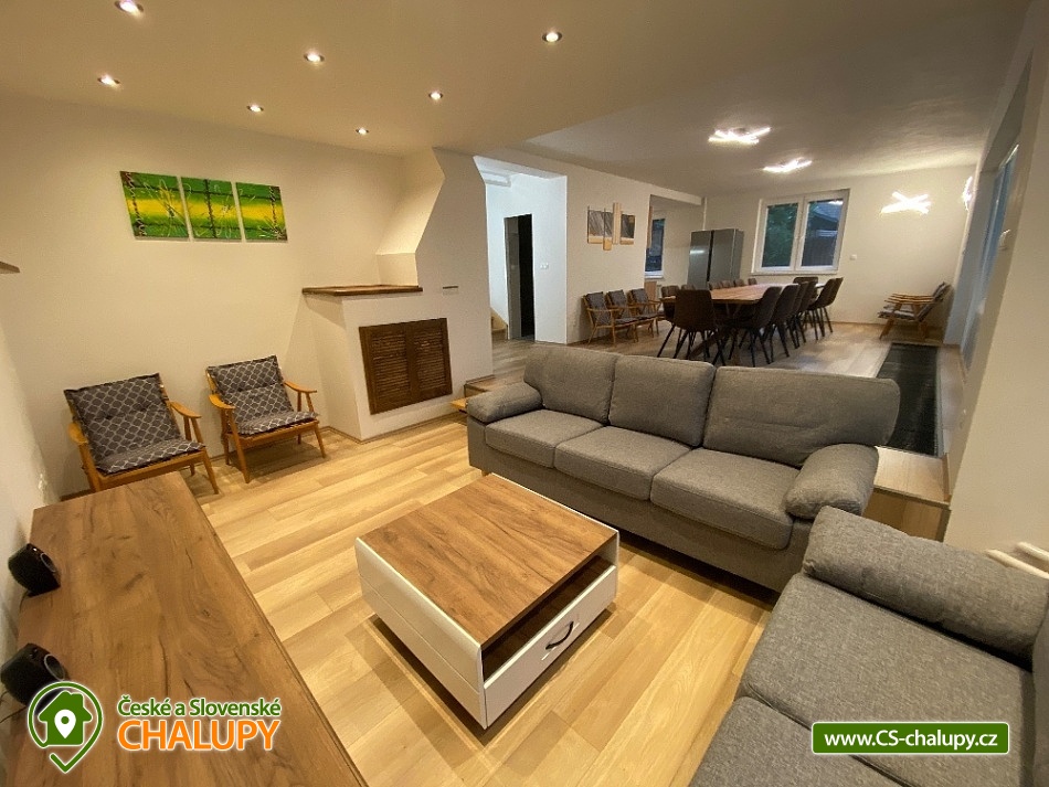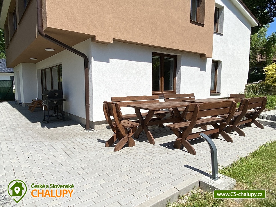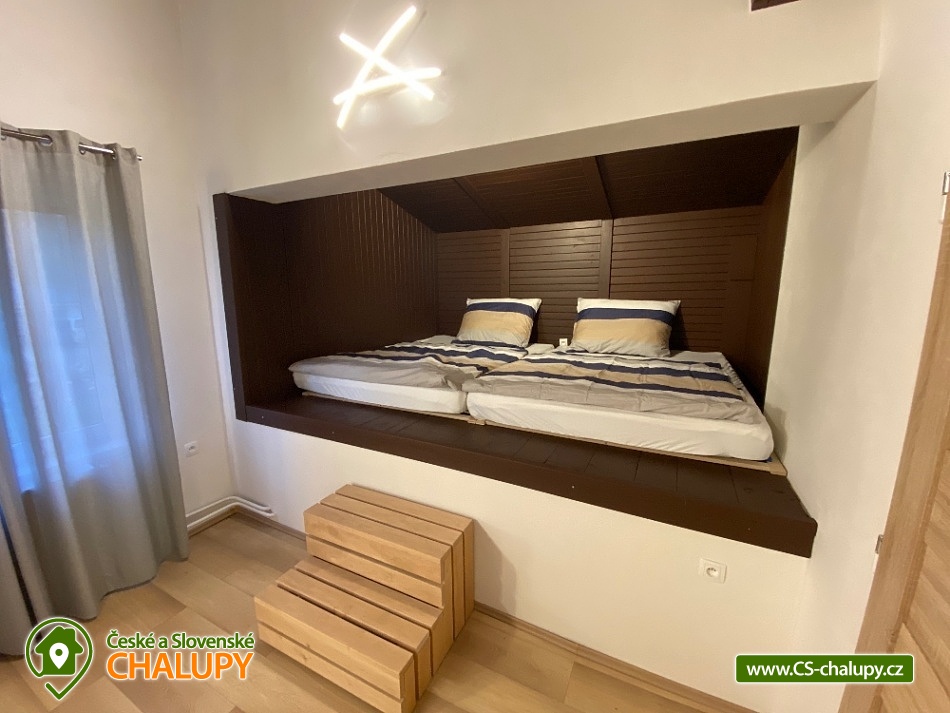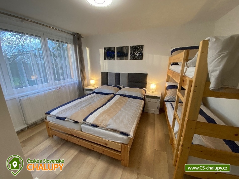 Chata s bazénem a saunou ve Středních Čechách nedaleko Chlumce nad Cidlinou, kde se nachází Fajnpark (zábava pro celou rodinu) a Mirákulum v Milovicích. Kapacita chaty - komfortního rekreačního domu je až 14 osob. POPIS: celkem 3 ložnice, 3 koupelny, společenská místnost a plně vybavená kuchyně. Součástí je zahrada s nadzemním bazénem a prostorná terasa s příjemným posezením. V prvním nadzemním patře se nachází velká moderní kuchyně se všemi důležitými spotřebiči - varná deska s odsavačem par, myčka nádobí, vestavěná trouba, mikrovlnná trouba a americká lednice a kávovar na zrnkovou kávu. Hned vedle kuchyně se nachází společenská místnost se dvěma masivními stoly, u kterých se pohodlně posadí celkem 14 osob. Společně s obývací částí zapuštěnou o dva schody níže toto celé tvoří společenskou část domu. Najdeme zde i prostornou koupelnu s WC a sprchovým koutem typu walk - in. Po vystoupání několika schodů se dostaneme do střední úrovně domu, kde je umístěn hlavní vchod se zádveřím. Pokud vystoupáme po schodech do nejvyššího patra domu, přijdeme do obytné části. Zde se nachází celkem 3 ložnice. Ložnice 1 a 2: 1x dvojlůžko 160x200cm, 1x patrová palanda s lůžky 80x200cm, celková kapacita 4 osoby. Ložnice 3: 1x dvojlůžko 160x200cm, 1x spací podium s celkovou šířkou 280cm, celková kapacita až 6 osob. Každý pokoj je vybaven komodou a šatní skříní se zrcadlem. Na stejném patře najdete i 2 samostatné koupelny se sprchovým koutem, WC a umyvadlovou skříňkou se zrcadlem. Dům pochází z 80.let minulého století s velice originální architektonickou koncepcí a sestává z několika podlaží. Tím není vhodný pro osoby se sníženou pohyblivostí. Vytápění je elektrické s teplovodními radiátory. Oázou klidu se dá nazvat zahrada náležící k domu. Najdete zde terasu s masivním venkovním nábytkem, která je ideální pro venkovní grilování. Pro romantické posezení při kávě slouží stinná terasa pod vzrostlým ořechem, na kterém je zavěšena houpačka. Na zahradě v neposlední řadě najdete nadzemní bazén typu Azuro, ve kterém se můžete zchladit během parních letních měsíců. V zimních měsících pak přijde vhod venkovní sudová sauna s ochlazovací kádí. Pro zabavení dětí je tu v letní sezóně ještě trampolína. Parkování je možné přímo u objektu na vlastním pozemku. Přímo v Dymokurech je dětské hřiště, fotbalové hřiště, lesy a rybníky vhodné pro rybaření. Těšíme se na Vás u nás.