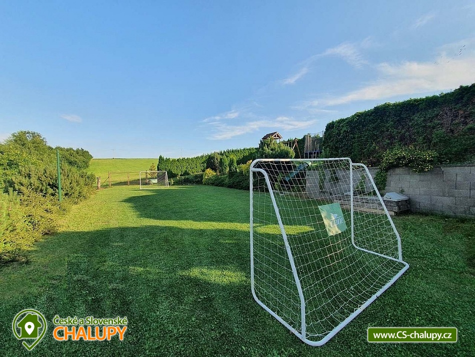 Chata s bazénem a saunou u Hněvošického lesa ve Slezsku nedaleko Opavy. Chata k pronajmutí poskytuje ubytování pro až 14 osob ve 4 ložnicích. Chata - moderní rekreační objekt umožňuje nádherný výhled na okolní krajinu a zároveň dostatečné soukromí. Poblíž se nachází Hněvošický les, který kromě nejčistšího vzduchu v širokém okolí poskytuje možnosti pohodlných vycházek do místní přírody. Ideální místo pro strávení odpočinkové dovolené zaručuje velký venkovní bazén v kombinaci s dalšími možnostmi objektu jako například opalovací lehátková část, travnaté hřiště s volejbalovou sítí, venkovní i vnitřní krb, přenosný gril apod. Ložnice a pokoje: Ložnice se nacházejí v prvním patře chaty, vedle kterých je umístěna i jedna ze dvou koupelen. Pokoje: č. 1: 2 - lůžkový (možnost spojení/rozpojení postelí), č. 2: 3 - lůžkový, č. 3: 3 - lůžkový (1 postel manželská, jedna oddělená) - součástí tohoto pokoje je horní balkon, č. 4: 5 - lůžkový (1 postel manželská, jedna poschoďová, jedna oddělená). V obývací místnosti se nachází kožená sedací souprava směřovaná na zeď zavěšenou polohovatelnou LCD televizi. V jídelně se nachází rozkládací stůl s židlemi až pro 12 osob, vedle kterého je situován vnitřní krb s krbovým nářadím. Kuchyně je vybavena elektrickou i mikrovlnnou troubou, elektrickým sporákem, digestoří, myčkou na nádobí a lednicí včetně mrazáku. K dispozici je rovněž varná konvice, dostatečné množství příborů a nádobí. Venkovní terasa poskytuje příjemné posezení u venkovního krbu, u kterého jsou k dispozici opékací vidlice. Dále je zde možnost zapůjčení mobilního plynového grilu. Zahradní nábytek je samozřejmostí. Dominantou zahrady je venkovní bazén o rozměrech 10,5 x 4,25 x 2m (voda cca 180cm). Vedle bazénu se nachází lehátková část, na které je možné využít polohovatelná opalovací křesla. V části nad bazénem se nachází dětské prolézačky se skluzavkou a houpačkami, vedle kterých je umístěna velká zahradní trampolína. Další z možností aktivního odpočinku nabízí venkovní hřiště s volejbalovou sítí možnou využít pro velké množství venkovních sportů jako jsou volejbal, badminton, přehazovaná, nohejbal apod. K aktivnímu odpočinku a prozkoumání okolní krajiny přispěje výhodná nabídka 10% slevy na zapůjčení kompletní cyklovýbavy (vč. elektrokol) s možností doručení až do objektu. V zimním období je možné zavítat do 25 km vzdáleného SkiAreálu Vaňkův kopec, jehož 600m sjezdovka je vybavena dvěma vleky. V areálu je rovněž svah pro začátečníky s nabídkou využití služeb lyžařské školy. Areál nabízí dostatek možností občerstvení stejně tak jako zapůjčení lyžařské výstroje/výzbroje. Přijeďte k nám - jste vítáni.