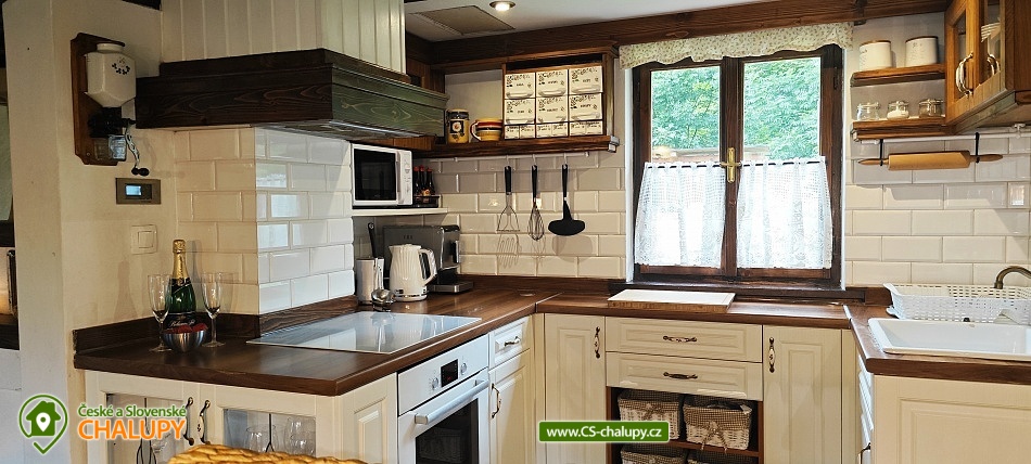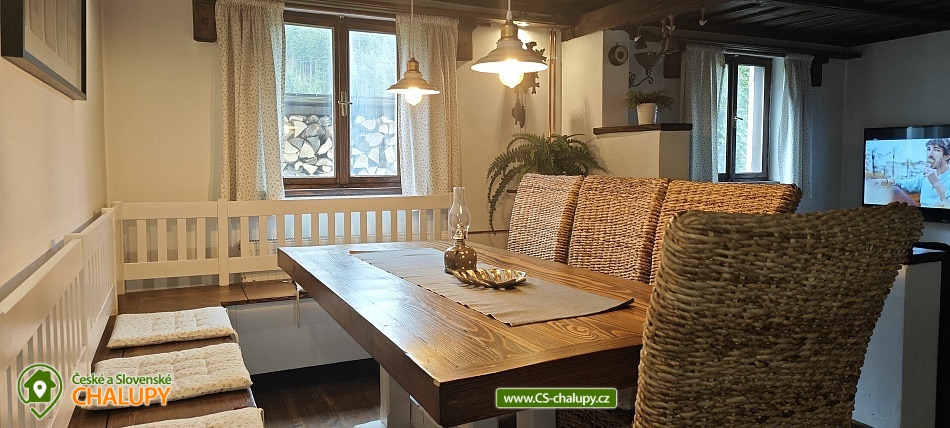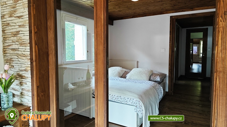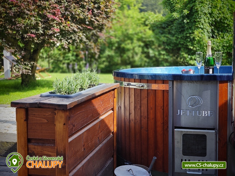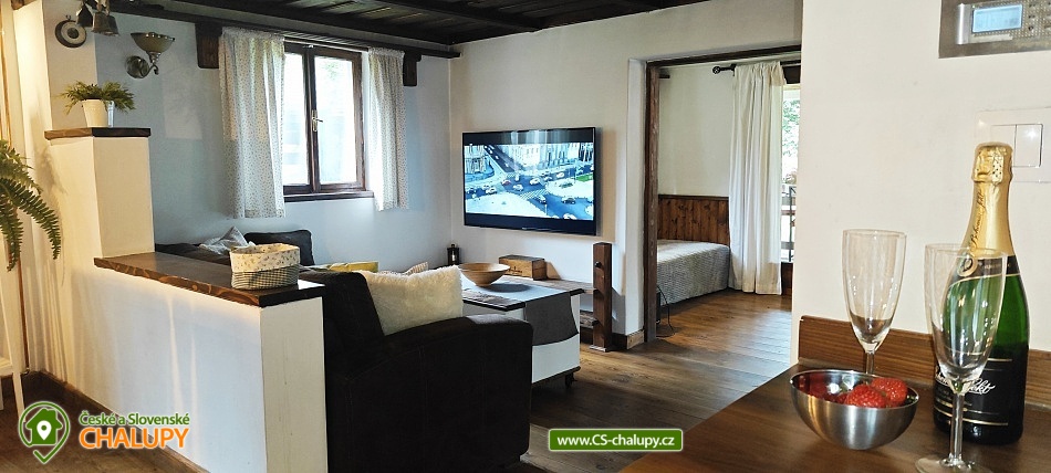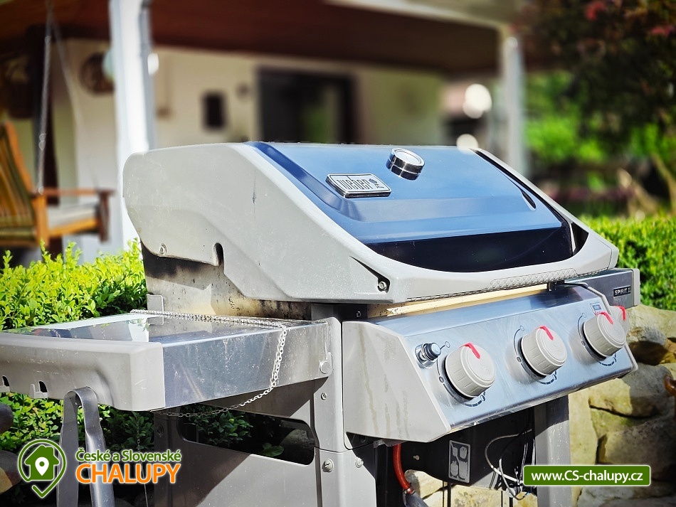 Cottage West Spazio - Prostřední Bečva. Rent cottage Bečva. Cottage West Spazio is situated in a pleasant environment of the village Prostřední Bečva in the district of Vsetín and is equipped with the highest emphasis on the quality of used materials. Cottage has 2 floors. In the open ground floor of the cottage there is equipped kitchen corner (electric ceramic hob and oven, microwave, kettle, coffee maker, fridge), fireplace, dining table, sofa, TV + SAT, DVD player and 1 bed, winter Garden and separate toilet. On the upper floor of the cottage there is 3x 2-bedded bedroom with double beds and bathroom: bathroom with shower and toilet. Wi-Fi internet is available. Heating of the building is provided by a wood fireplace with automatic regulation and heat distribution to the radiators. The cottage is fenced with a roofed terrace, garden furniture, outdoor fireplace, gas grill and children's corner. From the summer season 2017, there will additionally be a wellness in a garden house with a whirlpool for 3-4 people and a beer bar. The cottage is a great choice for people who want to unwind, but also for sports-oriented individuals who like hiking, cycling and skiing.