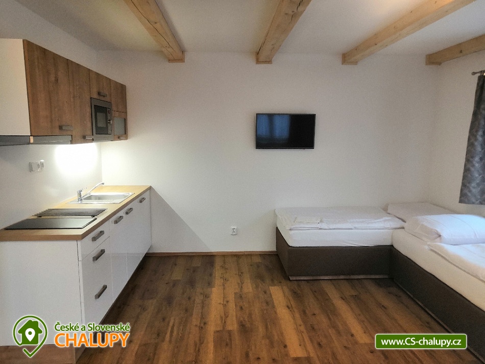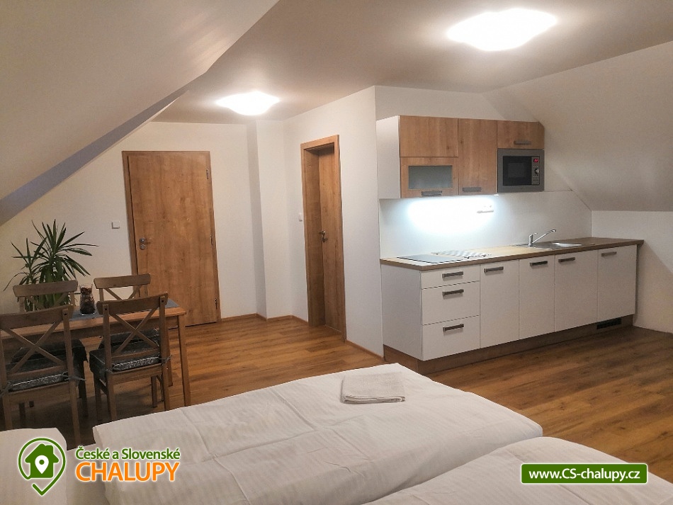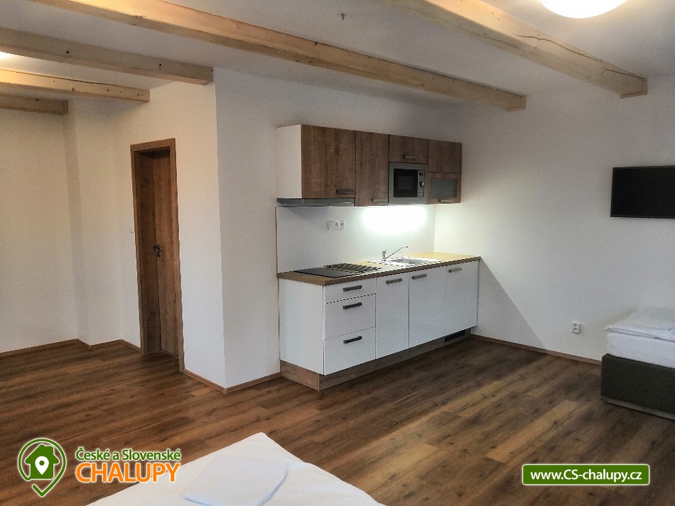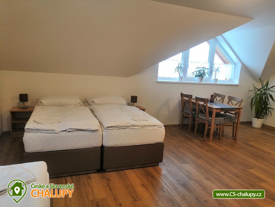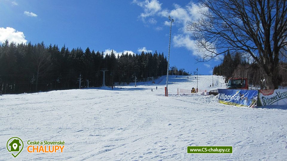 Pronájem chaty s bazénem pod Červenohorským sedlem v obci Filipovice - Bělá pod Pradědem - Jeseníky. Park Filipovice je pouhých 100m od chaty - v zimě tak dojedete ze sjezdovky přímo na chatu! Chata k pronajmutí poskytuje ubytování pro až 16 osob ve 2 ložnicích a dvou apartmánech. V létě je k dispozici bazén u chaty. Popis: V chatě jsou dvě 4 - lůžkové ložnice, společenská místnost (TV/SAT), koupelna, WC, kuchyň, balkón, v nově vybudované přístavbě jsou k dispozici dva 4-lůžkové apartmány s možností přistýlky. Vybavená kuchyňka s jídelním koutem (sklokeramická deska, mikrovlnná trouba, lednice, rychlovarná konvice, nádobí). Koupelna se sprchovým koutem, WC. Zahrada s posezením, gril. Vytápění automatickým kotlem na uhlí, ve společenské místnosti krbová kamna. V okolí: množství turistických a cykloturistických tras, ideální východisko pro výlety do okolí - vodopády Bílá Opava, přečerpávací vodní elektrárna Dlouhé Stráně, Mechové jezírko Rejvíz, bobová dráha Petříkov, jeskyně Na Pomezí, ruční papírna Velké Losiny, rozhledna Zlatý Chlum, Adrenalin Park Česká Ves, přírodní rezervace Velká Kotlina, horské minikáry Ramzová, Zlatorudné mlýny Zlaté Hory, Zámek Javorník, Priessnitovy lázně Jeseník. SKI park Filipovice - sedačková lanovka, vlek, umělé zasněžování, večerní lyžování, restaurace, lyžařská škola - to vše je 100 m od chaty! SKI areál Červenohorské sedlo - sedačková lanovka, 7 vleků - 6km. Další moderní ski areály v okolí - Kouty, Ramzová. Běžkařské trasy u chaty jsou strojově upravovány. Restaurace 100 m od chaty. Krytý bazén, sauna a tenis - 200 m od chaty. Horská chata U Rychlých nabízí ubytování v Jeseníkách v obci Bělá pod Pradědem - Filipovice.