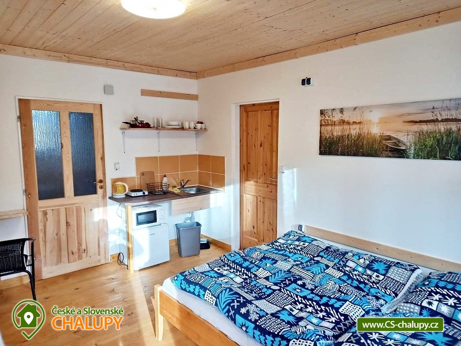The cottage with a swimming pool is located in the picturesque landscape of Podještědí and Ralské pahorkatina, in the Zátiší recreational area of the village of Hamr na Jezeře. You can look forward to an outdoor pool, a covered pergola with seating and a grill, or to having fun with billiards or table football. The cottage offers accommodation for 16 people in four separately rentable apartments. The owner is present and has his own facilities in the recreational area. All apartments are located next to each other and have access via a terrace. Two of them are connected by a shared terrace with seating, while the third apartment has its own terrace and its own seating. Each apartment has 4 beds for 3 adults and one child or person up to 60 kg. There is always one double bed available, supplemented by either a bunk bed or a pull-out bed for 2 people. You will also find an equipped kitchenette (microwave oven, electric kettle, single-plate electric stove, small refrigerator and dishes). Each apartment also has a bathroom with a shower, sink and toilet. Heating is provided by electric heaters (on request). There is WIFI internet access throughout the property. Outside, all guests will appreciate the large grassy area with a covered saltwater pool (countercurrent can be turned on). There is a possibility of using a solar shower and a covered pergola with seating and a grill, which is located in close proximity to the pool. There are board games, table football, billiards, TV or a fireplace. There are also swings and a sandbox for the little ones. Parking is possible directly on the premises. In the vicinity of the accommodation there is the possibility of hiking, cycling, swimming, mushroom picking, skiing, cross-country skiing and fishing. You can look forward to wakeboarding (water skiing behind a boat), boat and paddleboard rental, tennis, golf, in-line skates or a rope park. Swimming options include: Hamr na Jezeře reservoir (sandy beach), Ploučnice river, Stráž pod Ralskem reservoir, Kryštofovo Údolí swimming pool, Všelibice swimming pool, Mokrej žalud swimming pool, Zákupy swimming pool, Centrum Babylon Liberec aquapark, Obří sud swimming pool - Javorník, Vesecký pond - Tajch, swimming pool or forest swimming pool Liberec. Fishing is possible in the Hamr na Jezeře reservoir. There are nearby ski resorts, such as: Ski resort Ještěd or Ski resort Světlá pod Ještědem. Trips in the surrounding area are attractive: Kokořínsko, Bohemian Paradise, Sloup v Čechách, Bohemian-Saxon Switzerland, Ještěd, Sychrov castle, Mnichovo Hradiště castle, Lemberg castle, Grabštejn castle, ruins of castles Děvín, Ralsko, etc. We look forward to seeing you.