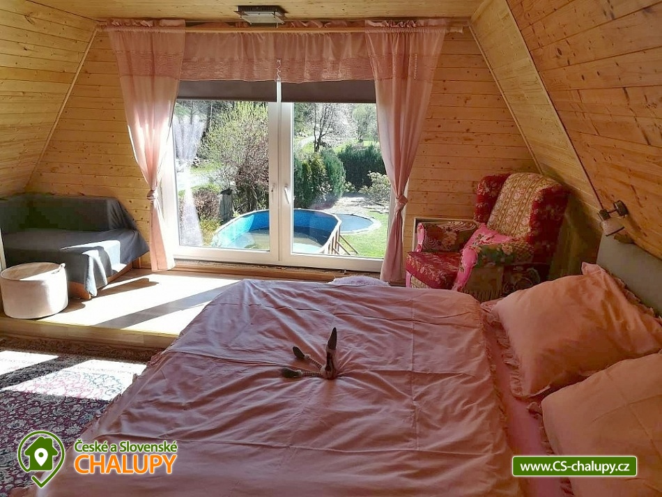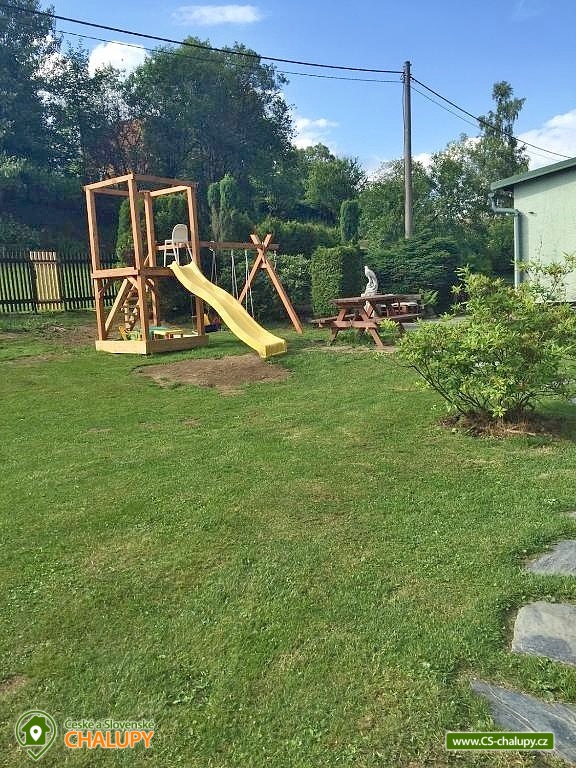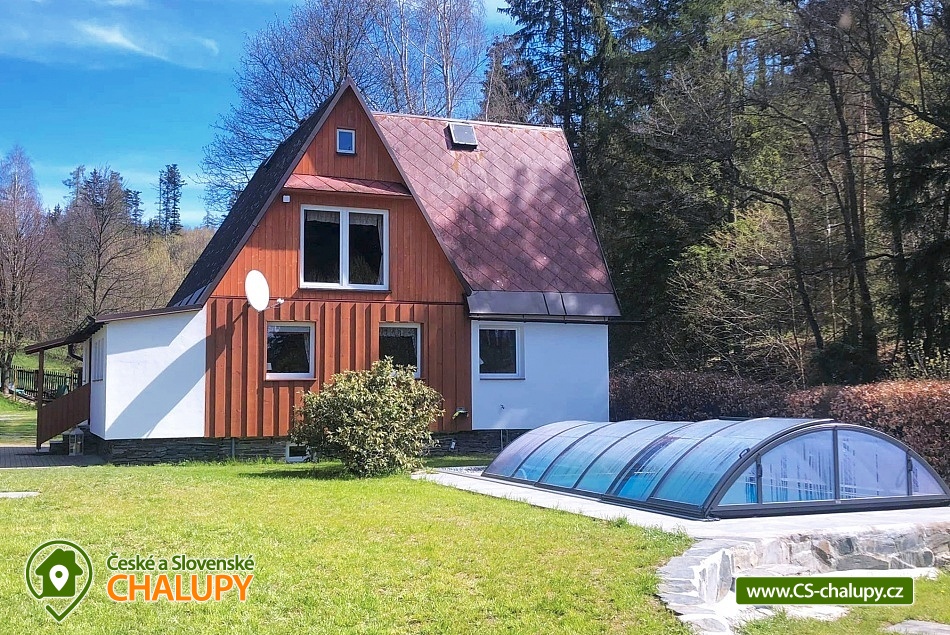 Chata s bazénem - Hrubý Jeseník. Rodinná chata s finskou saunou a bazénem v klidné oblasti předhůří Hrubého Jeseníku - na dosah jsou turisticky oblíbená Karlova Studánka, Praděd, Niva řeky Moravice, údolí Bílé Opavy či hrad Sovinec. Chata je ideální pro rodiny s dětmi, pro skupiny přátel i majitele zvířecích miláčků. K dispozici je ubytování pro až 12 osob ve 4 ložnicích. Po dohodě možná přistýlka za poplatek. V přízemí se nachází jedna "modrá" ložnice (1x dvojlůžko a 1x jednolůžko). V patře se nachází 3 ložnice: 3 – lůžková "červená" ložnice (1x dvojlůžko a 1x jednolůžko), průchozí "růžová" 2 - lůžková ložnice (1x dvojlůžko), přes ní vstup do 4 – lůžkové ložnice „dřevěné“ (1x dvojlůžko a 2x jednolůžko). Postele jsou vždy čistě povlečené, ložní prádlo je k dispozici. Přístup do patra je řešený strmým schodištěm, které má zábradlí a kobercové nášlapy proti nebezpečí podklouznutí. Schody jsou nevhodné pro osoby pohybově omezené. V přízemí pro společné chvíle slouží společenská místnost s krbem, posezením a satelitní televizí. K dispozici je kuchyň vybavená dvěma lednicemi s mrazáčkem, kávovarem, el. varnou deskou, troubou, rychlovarnou konvicí, myčkou nádobí, kuchařským vybavením a čistícími prostředky. Pro děti je připravený dětský koutek s hračkami, rozkládací dětská postýlka, společenské hry a stolní fotbálek. V celém objektu je k dispozici WIFI připojení na internet. V přízemí se nachází také vstupní veranda. V suterénu lze relaxovat ve finské sauně se sprchou nebo si užívat volný čas v herně se stolním fotbálkem pro děti i dospělé. Sociální zařízení zahrnuje dvě přízemní koupelny se sprchovým koutem, umyvadlem a WC. Další sprchový kout v suterénu vedle sauny. K dispozici je také pračka, žehlička a sušák na prádlo. Vytápění je řešeno elektrickými přímotopnými tělesy v každé místnosti a také krbovými kamny s rozvodem tepla do ostatních prostor chaty. Zahrada náležející k chatě je oplocena, což ocení zejména majitelé pejsků a rodiče malých dětí. Na zahradě je několik prosluněných i zastíněných posezení. K dispozici je zastřešená pergola s venkovním grilem nebo posezení u ohniště. Zejména v létě je na zahradě spousta možností pro aktivní odpočinek - venkovní zastřešený bazén, badmintonové hřiště, ruské kuželky, kladina a prostor pro fotbal. Malí návštěvníci se mohou těšit na dětské hřiště s houpačkami, pískoviště, trampolínu, několik houpaček a venkovní hračky. Parkovat lze přímo u objektu. U chaty je v blízkosti les, kde si lze nasbírat maliny a houby. Den vám zpříjemňuje klokotající malý přítok řeky Moravice přímo před chatou, kde je slyšet klapání malého vodního mlýnku, u kterého se zabydlel vodník "Pepa". V okolí chaty možnost turistiky, cykloturistiky, koupání, houbaření, lyžování a běžkování. V blízkosti se také nachází sportovní hřiště s umělým povrchem, kde je možné zahrát tenis a nohejbal a pro děti jsou zde různé prolézačky a houpačky. Nedaleko lze navštívit také jízdárnu v Horním Městě nebo rybářství v Tylově. Ve Velké Štáhli najdete minigolf směrem na Břidličnou u splavu. Mezi možnosti koupání patří např.: Bruntál - Wellness centrum , bazén Břidličná, Rýmařov - Aquacentrum Slunce, Edrovický rybník, koupaliště Bruntál, rybník Andělská Hora, Rybník Tvrdkov, Bazén Karlova Studánka, vodní nádrž Slezská Harta, vodní nádrž Oskava, rybník Jaroslav, atd. K okolním výletům láká Stezka na Velkou Štáhli, údolí Bílé Opavy, Rešovské vodopády, Karlova Studánka s léčivými prameny, nejvyšší hora Jeseníků Praděd, Pradědova galerie v Jiříkově, či hrad Sovinec a hned vedle něho arboretum Paseka Makču Pikču. Děti ocení historický vláček, který jezdí mezi Malou Morávkou a Bruntálem. Těšíme se na Vás u nás.