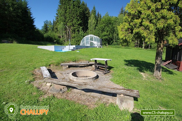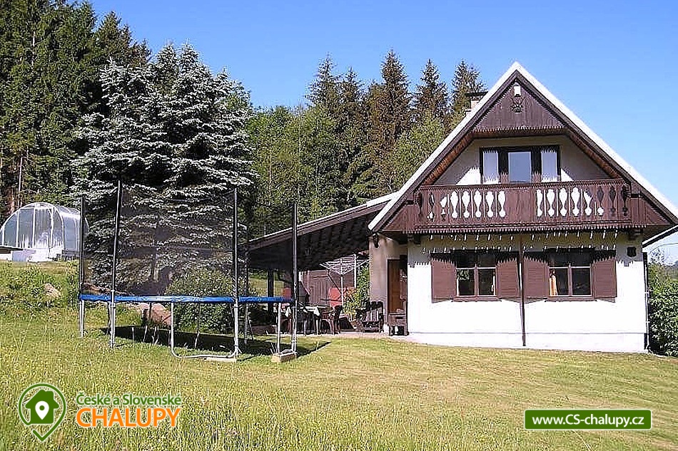 Chata s bazénem a výhledem na Krkonoše - Benecko. Chata v klidném prostředí u lesa poskytuje ubytování pro až 7 osob ve 2 ložnicích. Možnost houbaření, koupání v řece i přilehlém velkém bazénu solárně ohřívaném s filtrací, malý bazén, ohniště na opékání, venkovní gril, trampolína - velice vhodné pro děti. U chaty je plocha se stolem na stolní tenis. POPIS: Ložnice a pokoje: 2 ložnice v patře - 1x 4lůžková, 1x 3lůžková, v přízemí základně vybavená kuchyň, koupelna s WC, obývací pokoj s TV, SAT, DVD, krbem a krbovými kamny. Sociální zařízení zahrnuje koupelnu s vanou, umyvadlem a WC, dále je zde akumulační ohřívač vody a automatická pračka. Objekt se vytápí el. přímotopy nebo krbovými kamny, topí si klienti sami, palivo v ceně pobytu. Otevřený krb není určen k hlavnímu vytápění. Kuchyň je vybavena základním nádobím, (talíře, hrníčky, sklenice příbory atd. dřezem s teplou vodou, překapávacím kávovarem, mikrovlnou troubou, varnou konvicí, toustovačem, sporák se sklokeramickou deskou, menší lednička. Parkování celoročně u chaty, možnost uložení kol. Před vchodem zastřešené posezení. Poloha chaty je ideální pro výlety do Krkonoš ale i do Českého ráje, nedaleko jsou Bozkovské jeskyně. Okolí je vhodné pro pěší i cyklovýlety. Procházky údolím Jizery nebo lesy v okolí kopce Strážník, který je známý výskytem hvězdovce. Na západním výběžku Strážníku nad chatou v oblasti „Na Jírově skalí“ je rarita - melafyrové skalní město. Skály jsou stupňovitě do údolí až cca dvacetimetrovými stěnami. Chata je v klidném prostředí a je vhodná jako základna pro pěší i cykloturistiku. Nenáročné horolezecké terény do 500m. Pro zimní období je u chaty samoobslužný provazový vlek cca 100m, který je nejen pro děti ale i dospělé v ceně pobytu, upravovaná sjezdovka, možnost nočního lyžování při umělém osvětlení. Vzdálenost lyžařských center: Jilemnice 10 km, Benecko 15 km, Rokytnice 20km, Harrachov 28km, Špindlerův Mlýn 23km.