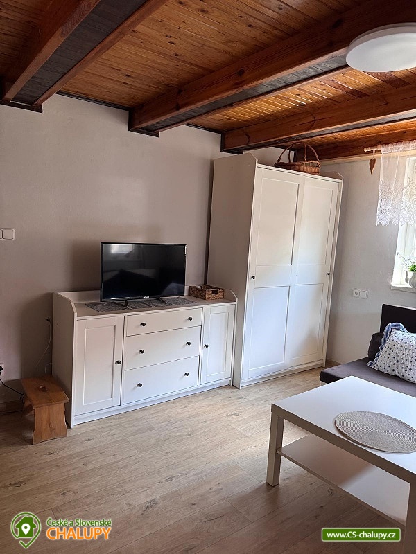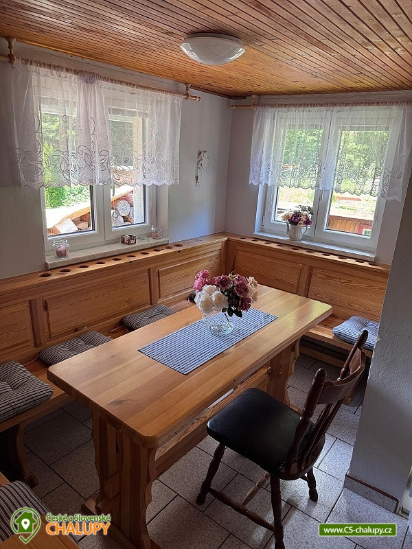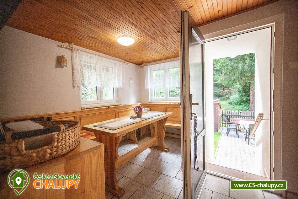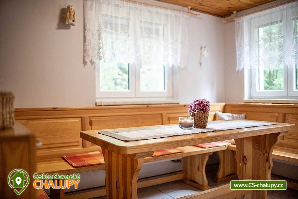 Cottage with swimming pool - Vyšší Brod - Lipno dam. The cottage is located in the village of Malšín in South Bohemia, near the Lipno dam and the towns of Český Krumlov and Vyšší Brod. It is located in beautiful countryside by the forest and offers accommodation for 8 people in two four-bed bedrooms. Possibility of renting a cot. One of the bedrooms has a TV. There is a living room with a sofa, fireplace, two dining tables, TV and a fully equipped kitchenette (dishes, refrigerator, freezer, microwave, kettle, stove and oven). The sanitary facilities include a bathroom with a sink, bathtub, washing machine and toilet. Wi-Fi connection available. The property is heated by a fireplace. Parking is possible directly at the cottage under a shelter for 2 cars. You can relax in the spacious garden with a swimming pool, outdoor shower, deck chairs, grill, seating and listen to the murmur of the adjacent stream. The surroundings of the cottage are ideal for walks in the forest, mushroom picking, but also for hiking, cycling, swimming and fishing. Swimming options: Větřní swimming pool, Lipno aquapark, Hornobranský pond, Frymburk aquapark, Český Krumlov swimming pool, Kaplice swimming pool, Velešín swimming pool, Olšina pond, Lipno reservoir. Trip tips: Lipno treetop trail, Čertova Stěna, Lipno reservoir with water and sports activities, Rožmberk castle, St. Wolfgang waterfalls, Vítkův Kámen ruins, the town of Český Krumlov (revolving auditorium, rafting, castle, baroque theater, five-petal rose festival). Ski resorts: Lipno ski area and Kozí Pláň. We look forward to seeing you there.