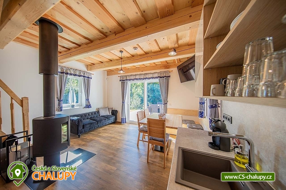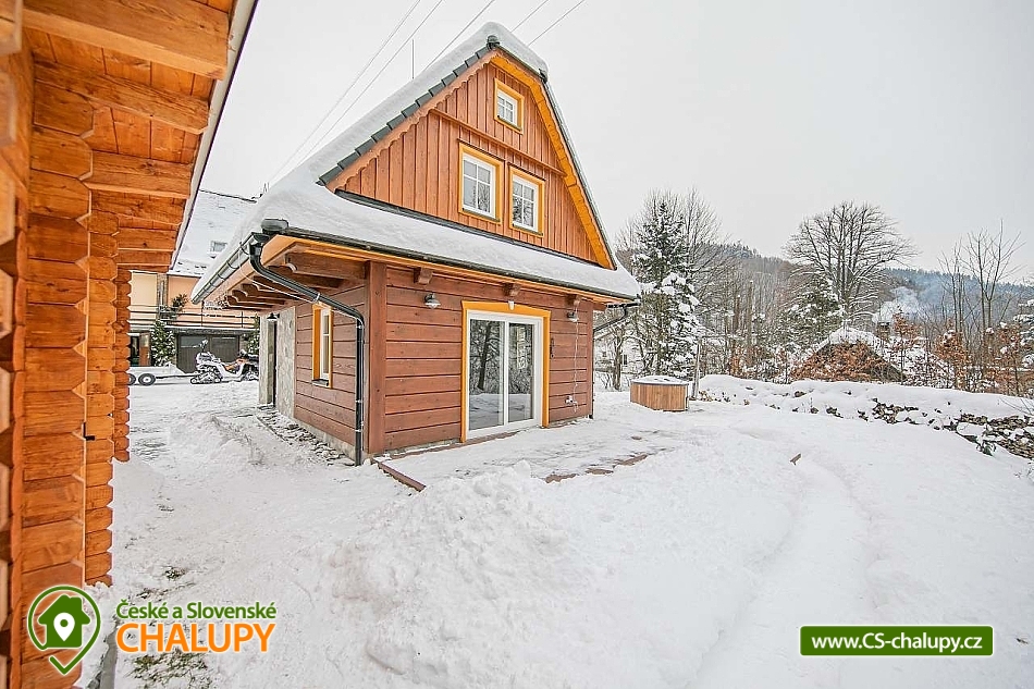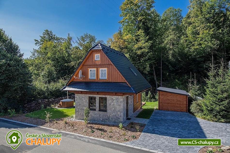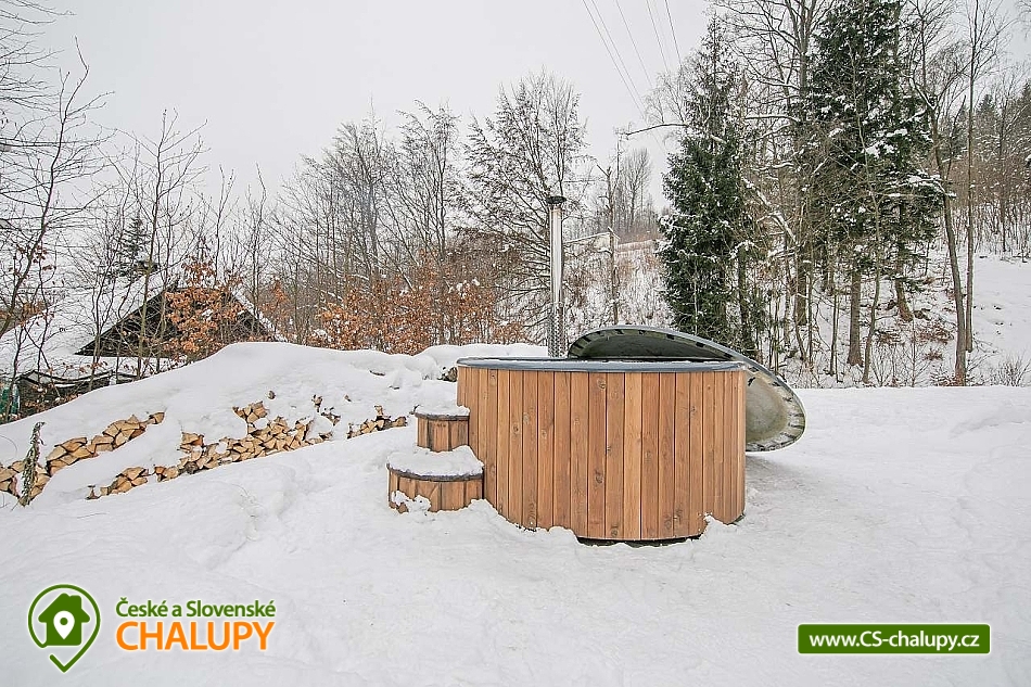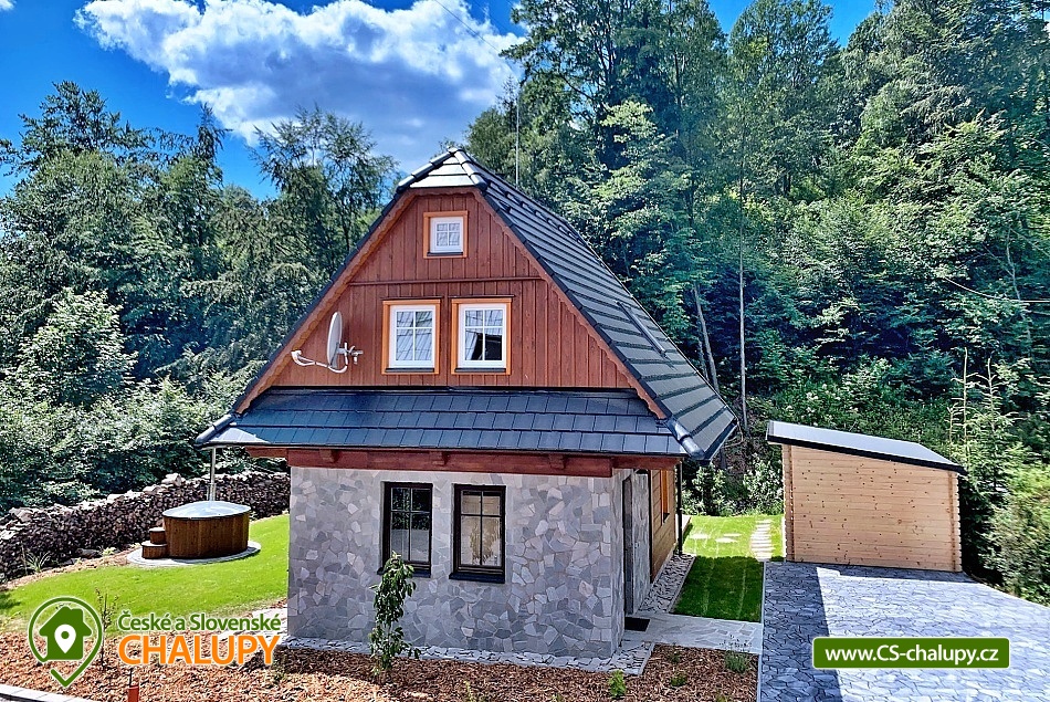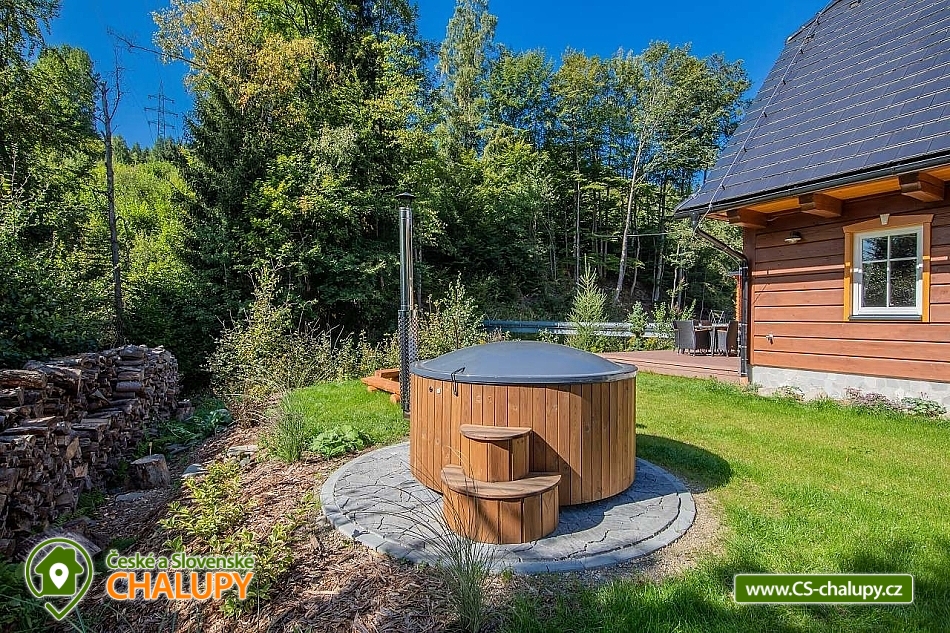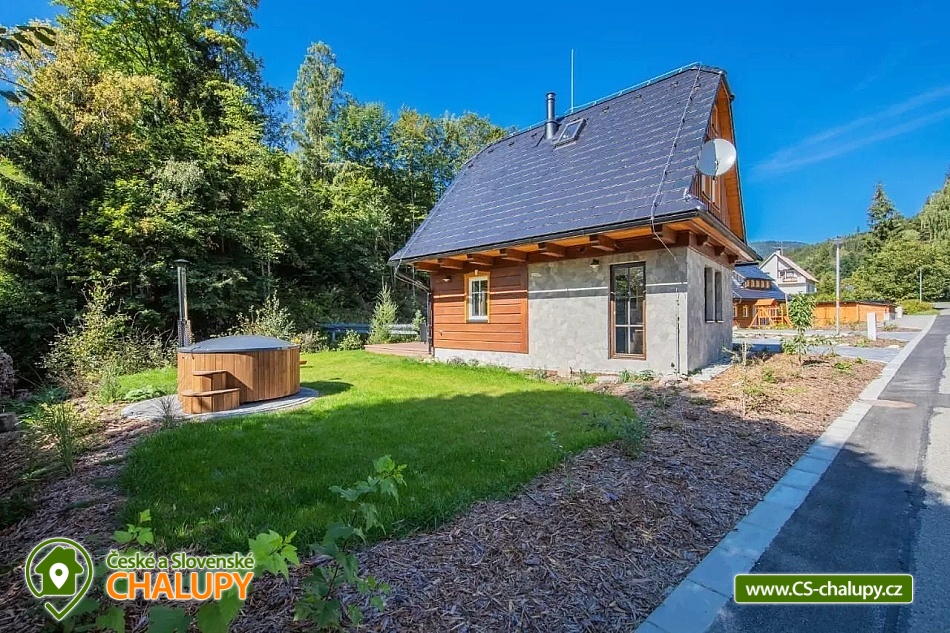 Chata s koupacím sudem - Kouty nad Desnou nabízí ubytování s výhledem na řeku, poloha 10km od lázeňského města Velké Losiny, kde se nachází nově vybudované termální koupaliště. Na zahradě koupací sud se vzduchovou masáží a LED osvětlením - topení dřevem. Chata v srdci Jeseníků na klidném místě 500 m od celoročně provozovaného areálu Kouty nad Desnou. Chata k pronajmutí poskytuje ubytování pro až 8 osob ve 3 ložnicích. V přízemí objektu se nachází obývací pokoj s TV a satelitním příjmem, dále plně vybavená kuchyně, krbová kamna, koupelna se sprchovým koutem a samostatné WC. V kuchyni je veškeré běžné vybavení (pečící a mikrovlnná trouba, velká lednice s mrazákem, myčka nádobí, indukční varná deska, kávovar na kapsle Dolce Gusto, dále běžně používané nádobí a kuchyňské vybavení). V patře chaty jsou dva oddělené pokoje a WC s umyvadlem. První pokoj pro 3 osoby (s manželskou postelí a jedna samostatná postel). Druhý pokoj pro 3 osoby (manželská postel a jedna samostatná postel), dále z tohoto pokoje vedou schody do mezonetu, kde se nachází další manželská postel (upozorňujeme na nízkou výšku stropu v mezonetu). Sociální zařízení: V chatě se nachází 2x samostatné WC a 1x koupelna. Vytápění: V celé chatě je nainstalované podlahové vytápění, popř. lze vytápět krbovými kamny. Venku na terase posezení pro 8 lidí, gril na dřevěné uhlí. Možnost uskladnění kol, lyží a dalších věcí v uzamykatelné šopě. Příjezd přímo k objektu po udržované cestě, u objektu je možnost zaparkovat cca 3 osobní auta. Přímo v obci je letní lyžování a speciální dráha na horských minikárách. Výlety: jeskyně Na Pomezí, ve Velkých Losinách zámek s žerotínskou obrazárnou a muzeum ruční výroby papíru, dřevěný kostelík v Maršíkově, sedačková lanovka v Koutech nad Desnou - je v provozu i v létě, v Přemyslově, v Ramzové, přečerpávací vodní nádrž Dlouhé Stráně, Veterán muzeum a ZOO park v Rapotíně. V zimě k dispozici v obci 3 SKI areály, nejbližší je 500 m od chalupy (noční lyžování, umělé zasněžování, nový SKI areál K3: šesti sedačková lanovka), 7 vleků na Červenohorském sedle, kde je rovněž sedačková lanovka. Z Koutů vede kyvadlová autobusová doprava. Dále 7 km Thermal park: velikost vodních ploch 1 495 m². Ve vnitřní části návštěvníci najdou tři bazény (jeden s průplavem ven), dětské brouzdaliště, tobogán a whirlpool. Těšíme se na Vás u nás.